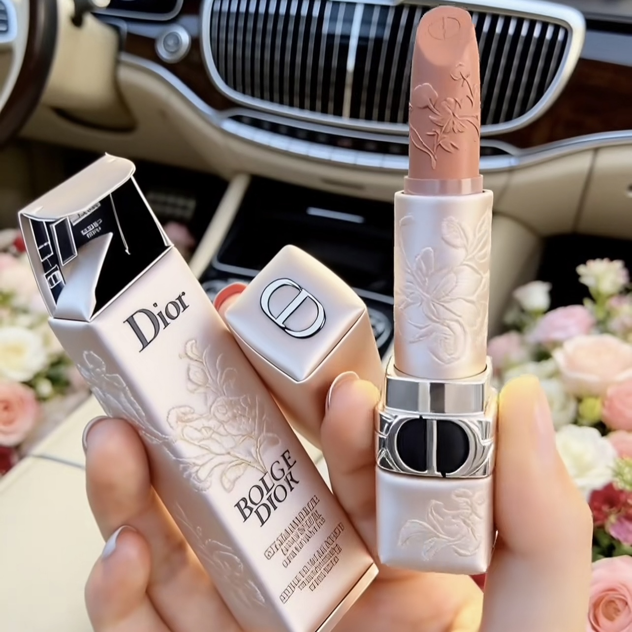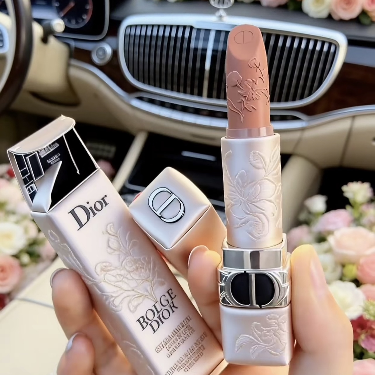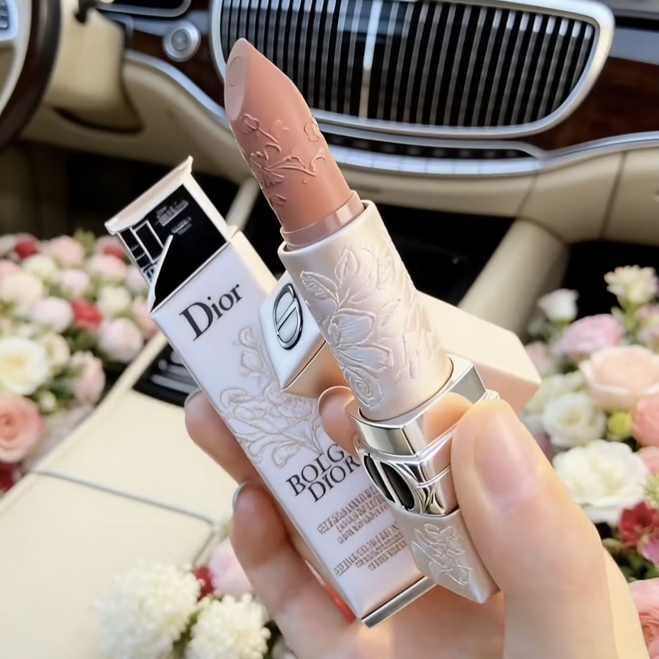 姐妹们!这支Dior烈焰蓝金雕花口红1947号色,真的美到词穷!💐 外壳是珍珠白的浮雕花卉,阳光下blingbling的,拿在手里像艺术品~膏体上的立体玫瑰雕花,每次涂都舍不得下手!🥀 1947是法式木玫瑰色,哑光丝绒质地,上嘴温柔又有气场,通勤约会都能hold住!而且不拔干,持久度也很在线~ 春日氛围感直接拉满,送自己或闺蜜都超有仪式感!现在不买更待何时?冲就完事了!💄✨