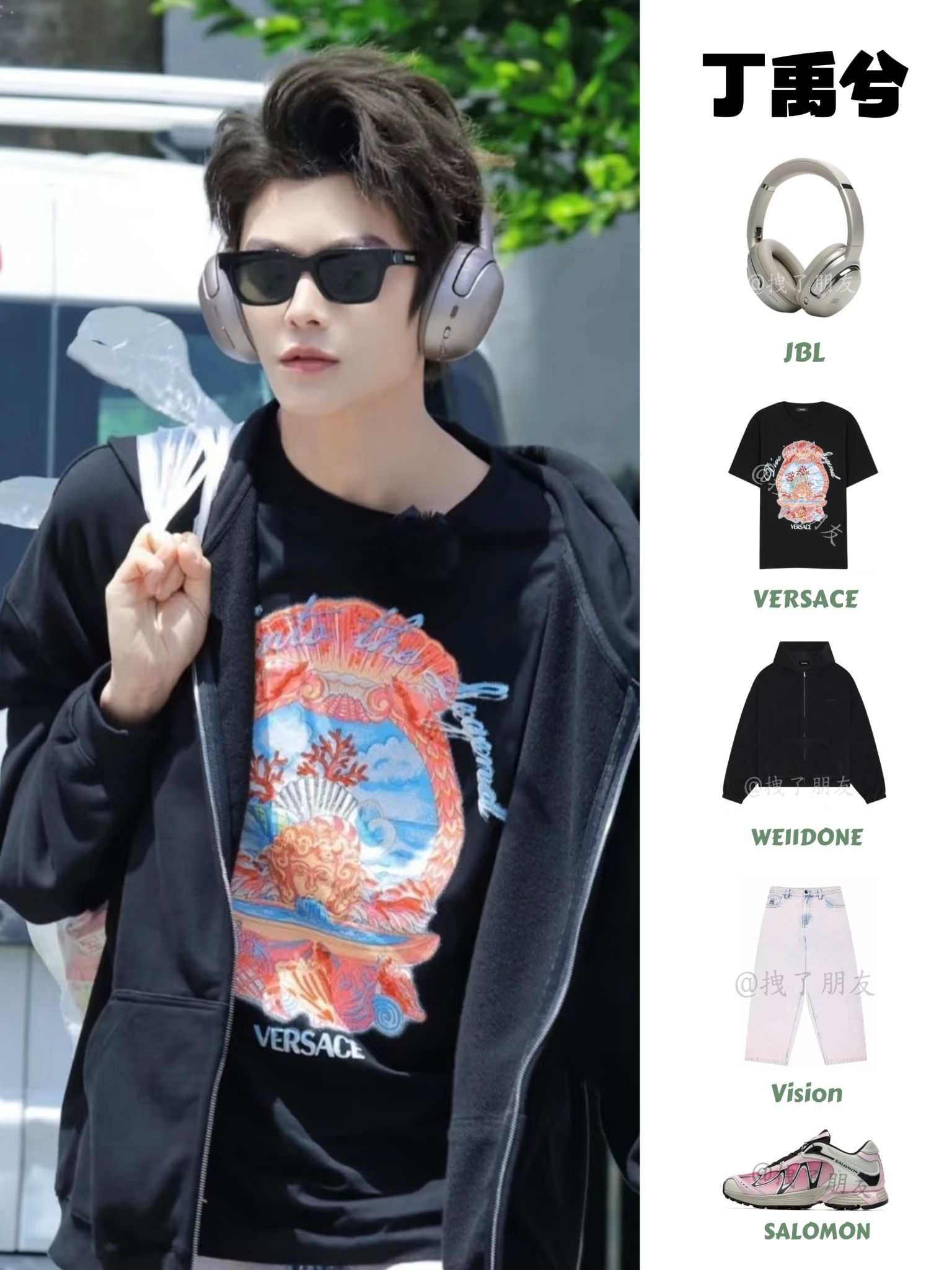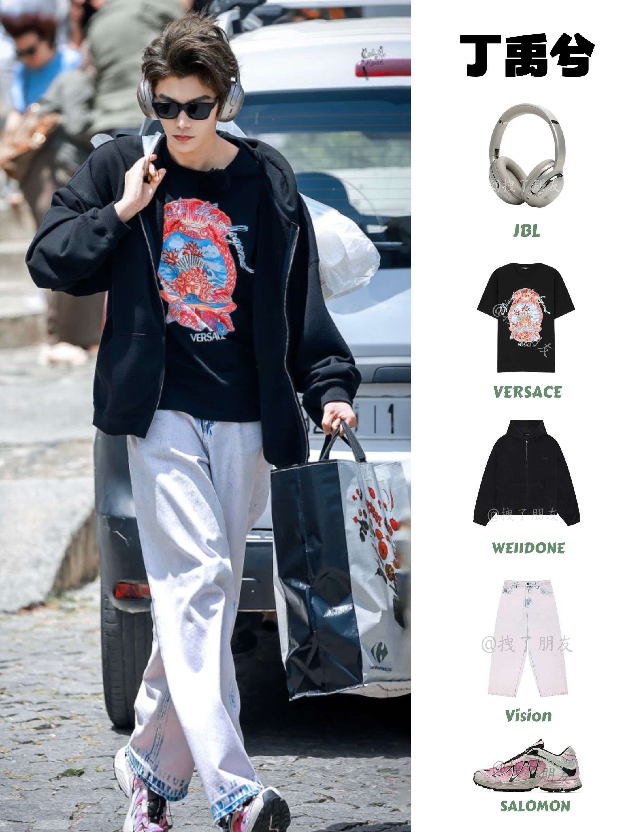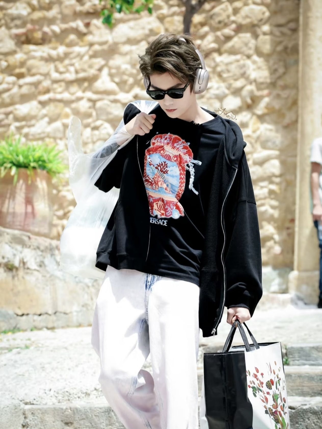 这套私服真的太有参考性了! 黑色连帽开衫+Versace印花T,低调中带着设计感,浅白渐变牛仔裤弱化了厚重感,搭配粉调Salomon运动鞋,清爽又不单调,日常通勤、出街都能直接抄作业,少年感直接拉满~