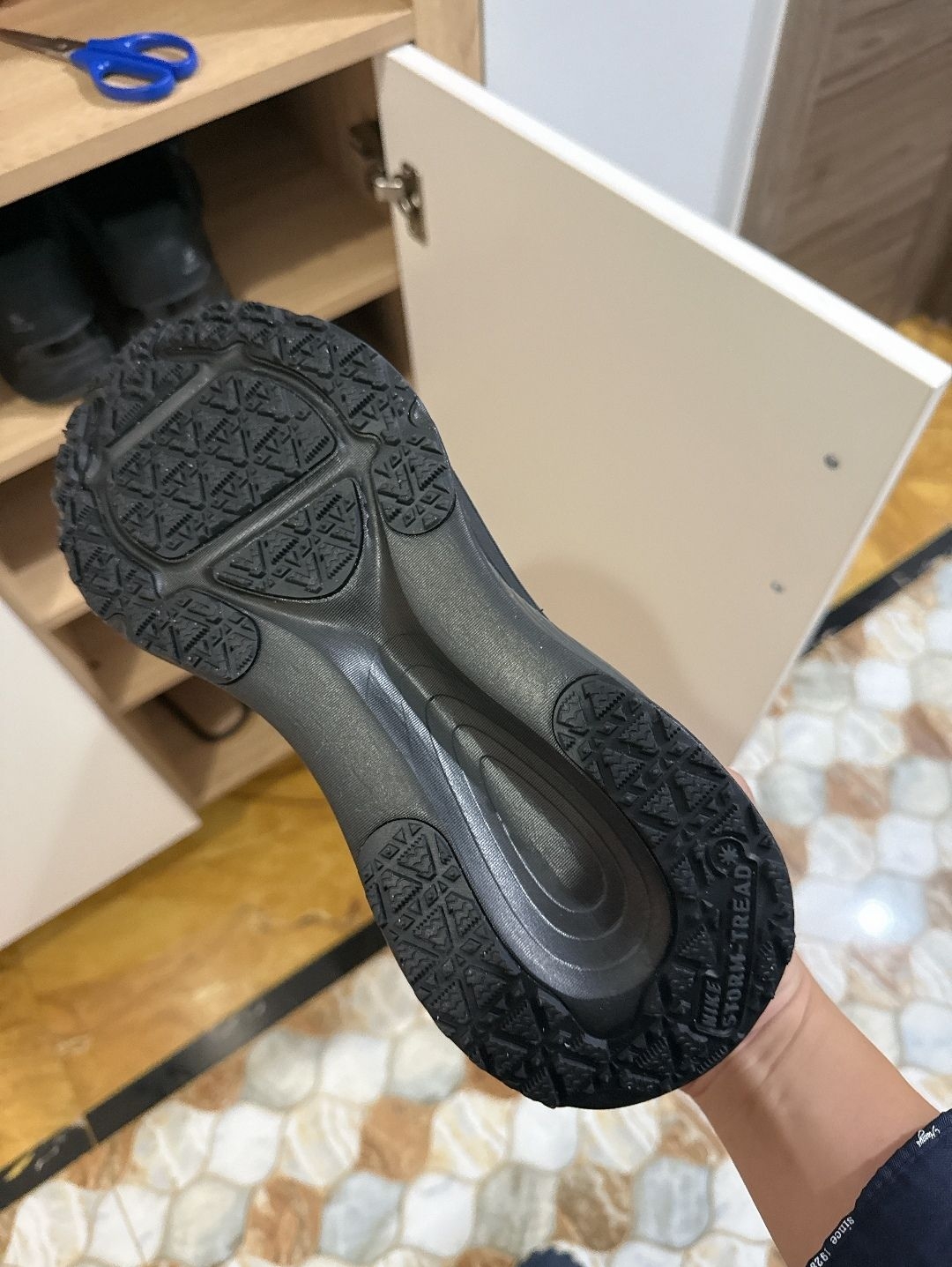 全黑风格上班通勤都没问题,特别是下雨天很需要这么一双gore-tex的鞋子。缓震很舒服。就是鞋子有点偏小偏窄,平时42的这双42.5正好