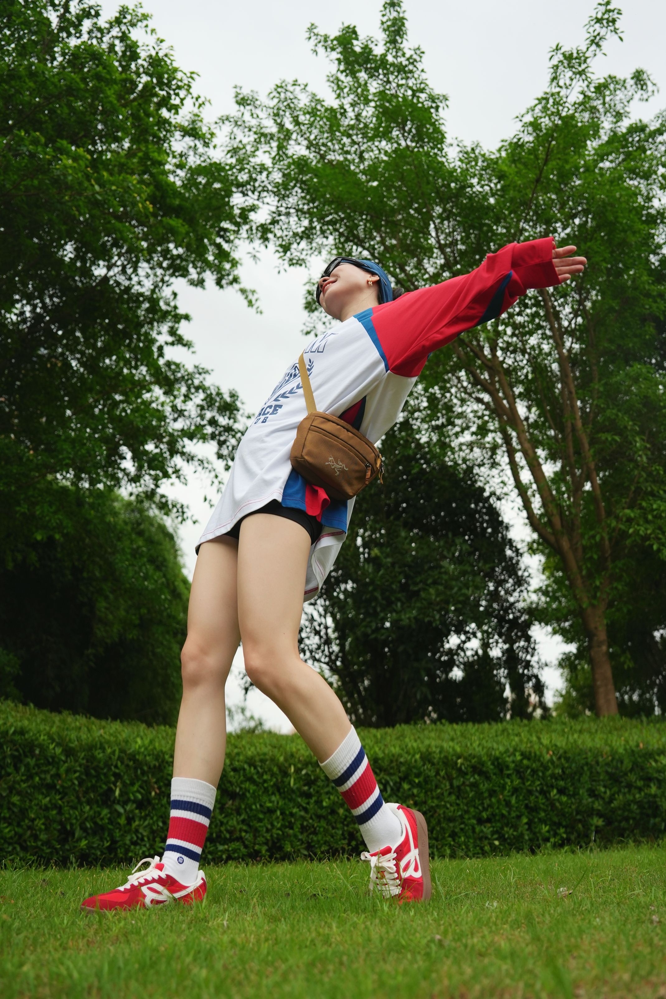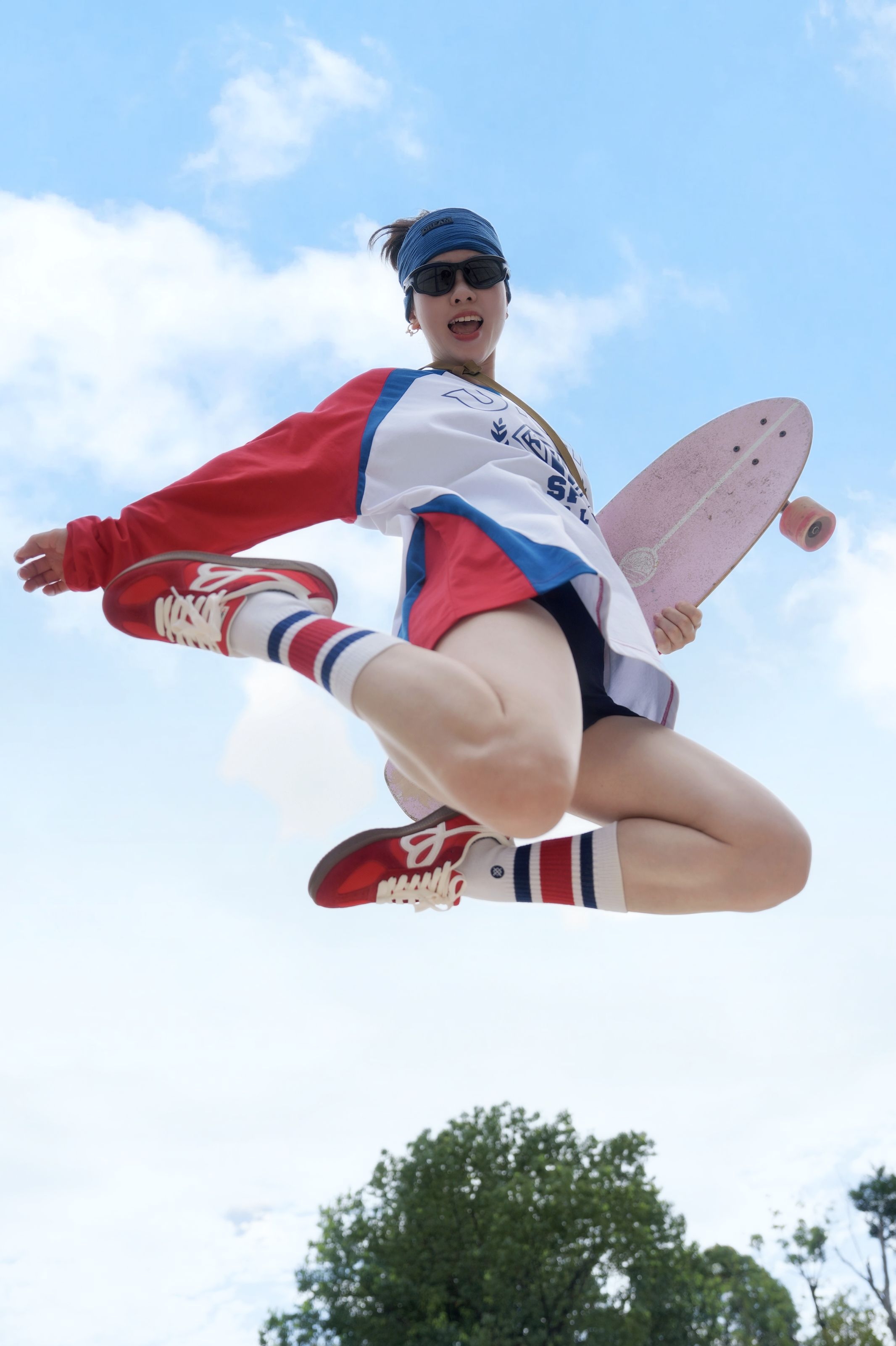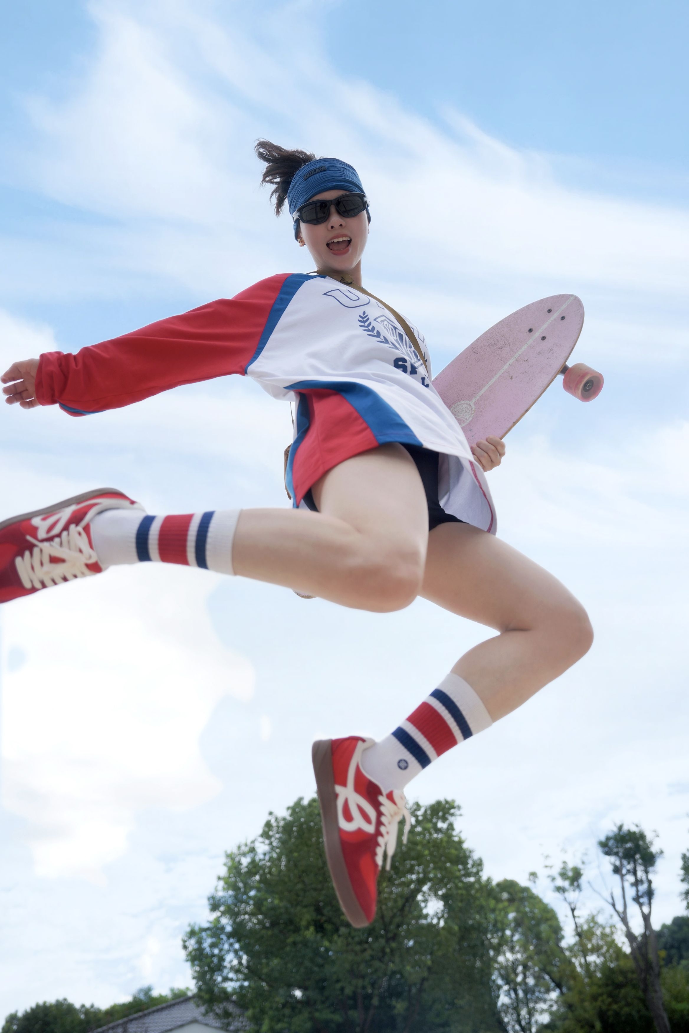 这一身也太适合户外滑板了! - 👚红白蓝拼接上衣,美式复古感拉满,宽松版型超藏肉,搭配一条黑色运动短裤,下半身消失术,辣妹风拿捏🤌 🧦条纹中筒袜+复古红板鞋,配色呼应绝绝子,滑板时也稳稳的 🎧蓝色发带+墨镜,街头酷盖氛围感满满 - 🛹 带着滑板出门遛弯儿啦!