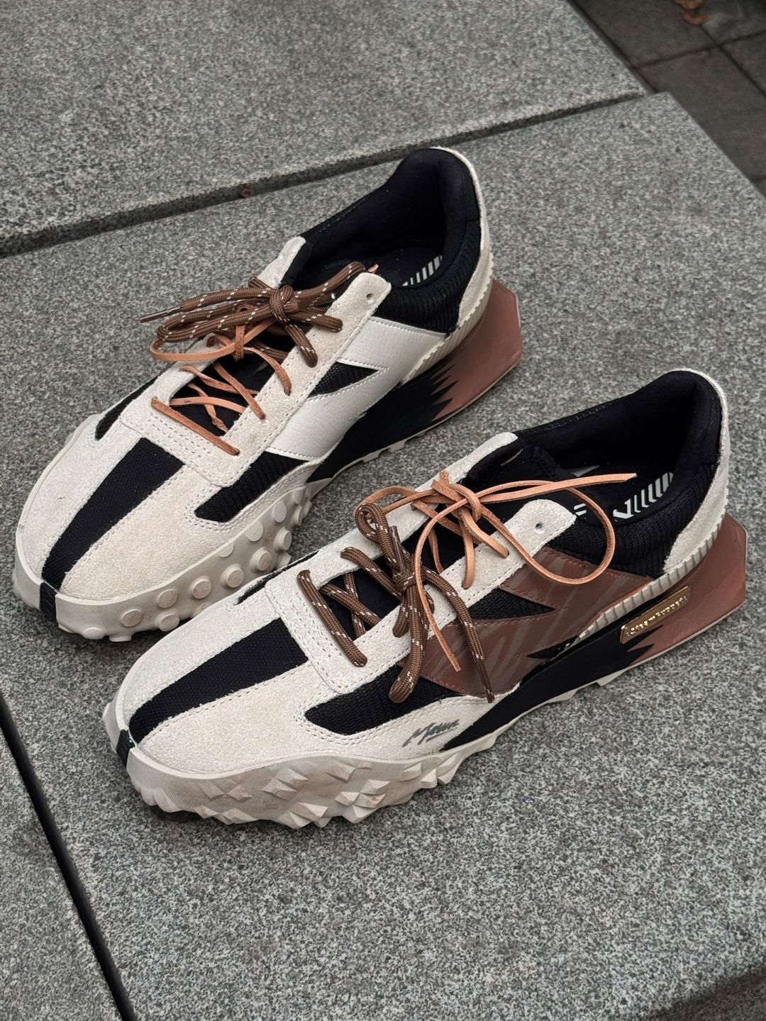 作为细节党,必须夸爆这双鞋!鞋面用了麂皮+荔枝纹皮革,摸起来有层次又耐造;锯齿大底不仅好看,防滑力真的在线,踩在湿滑地面也稳;后跟金属牌刻着专属标识,小众又有纪念意义;米棕配色经典耐看,不管是日常通勤还是周末露营都能hold住,上脚软弹不磨脚,穿久了也不会累,山系男孩女孩闭眼冲!