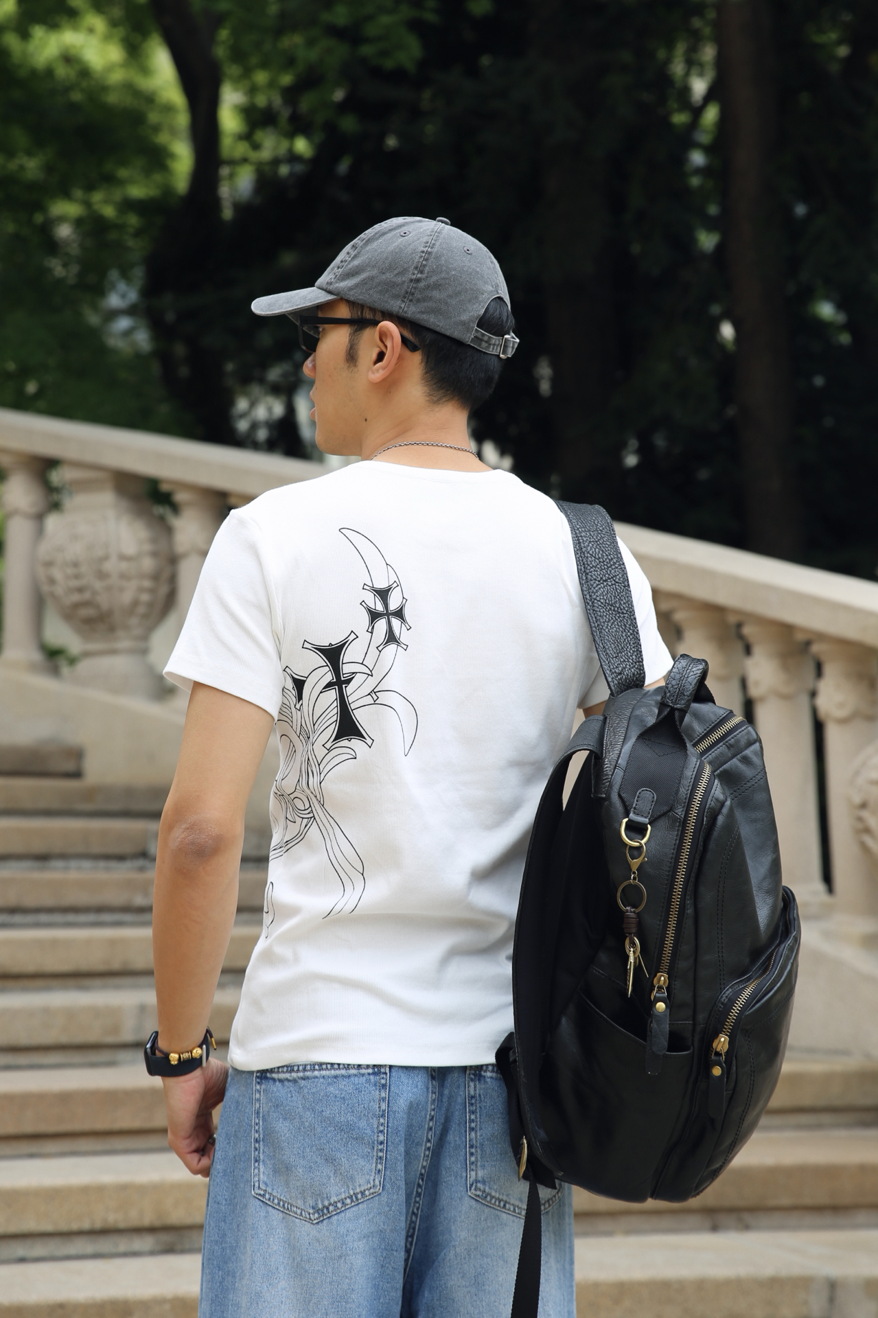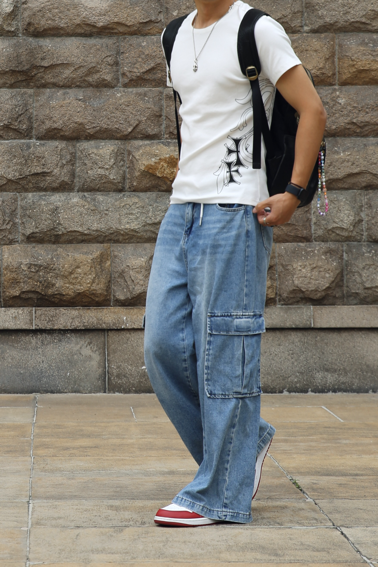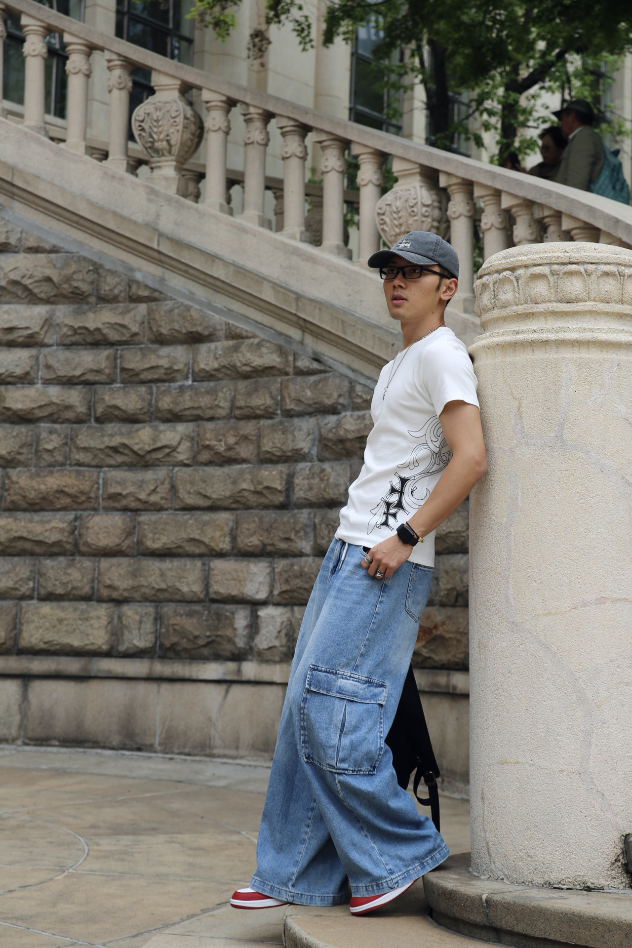 夏天当然得清爽舒服😌 今天给带来一套夏日的简单搭配 上身一件白色短袖修身显壮 加上潮流的印花不单调 下身搭配一条宽松牛仔裤 阳光下清清爽爽 妥妥的街头潮男既视感