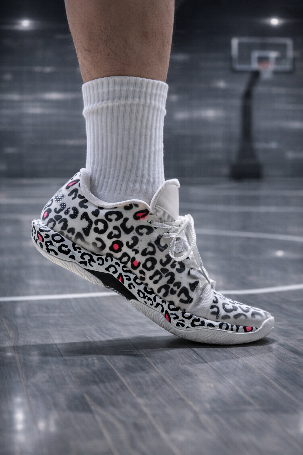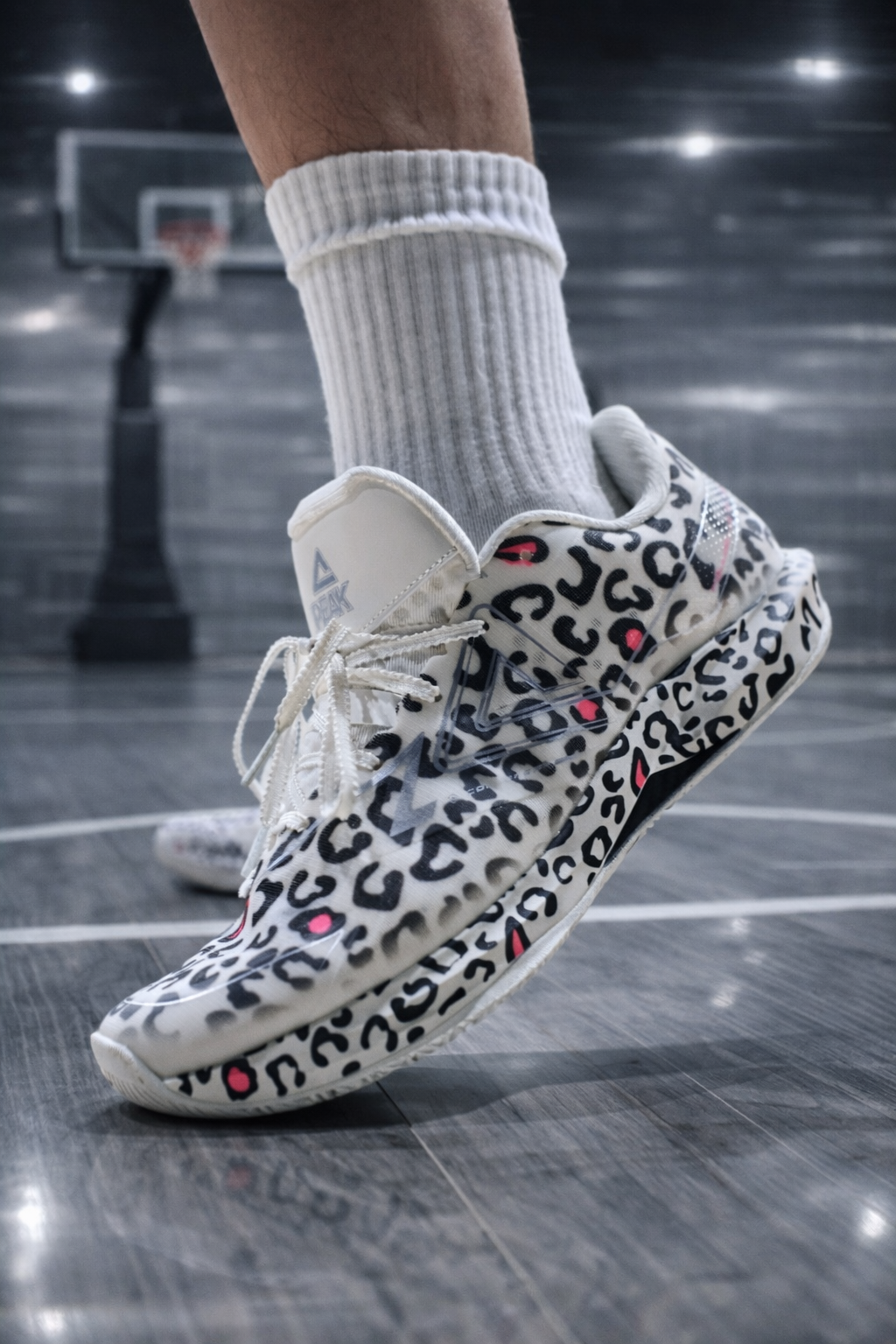 Yo wassup🤞🏻 这里是希望世界和平的Ga🕊️ 先看核心:匹克轻灵4.0雪豹配色,上脚辨识度直接拉满。 性能思路:态极中底+尼龙板,起跳回弹有支撑,实战更稳。 抓地表现:八爪鱼结构大底,外场灰地也能抓得住。 穿搭逻辑:白黑主调,球场或日常都好配。 尺码建议:正常选44;高脚背、宽脚建议大一码。 简单搭:白色球服+中筒袜,干净又有运动氛围。