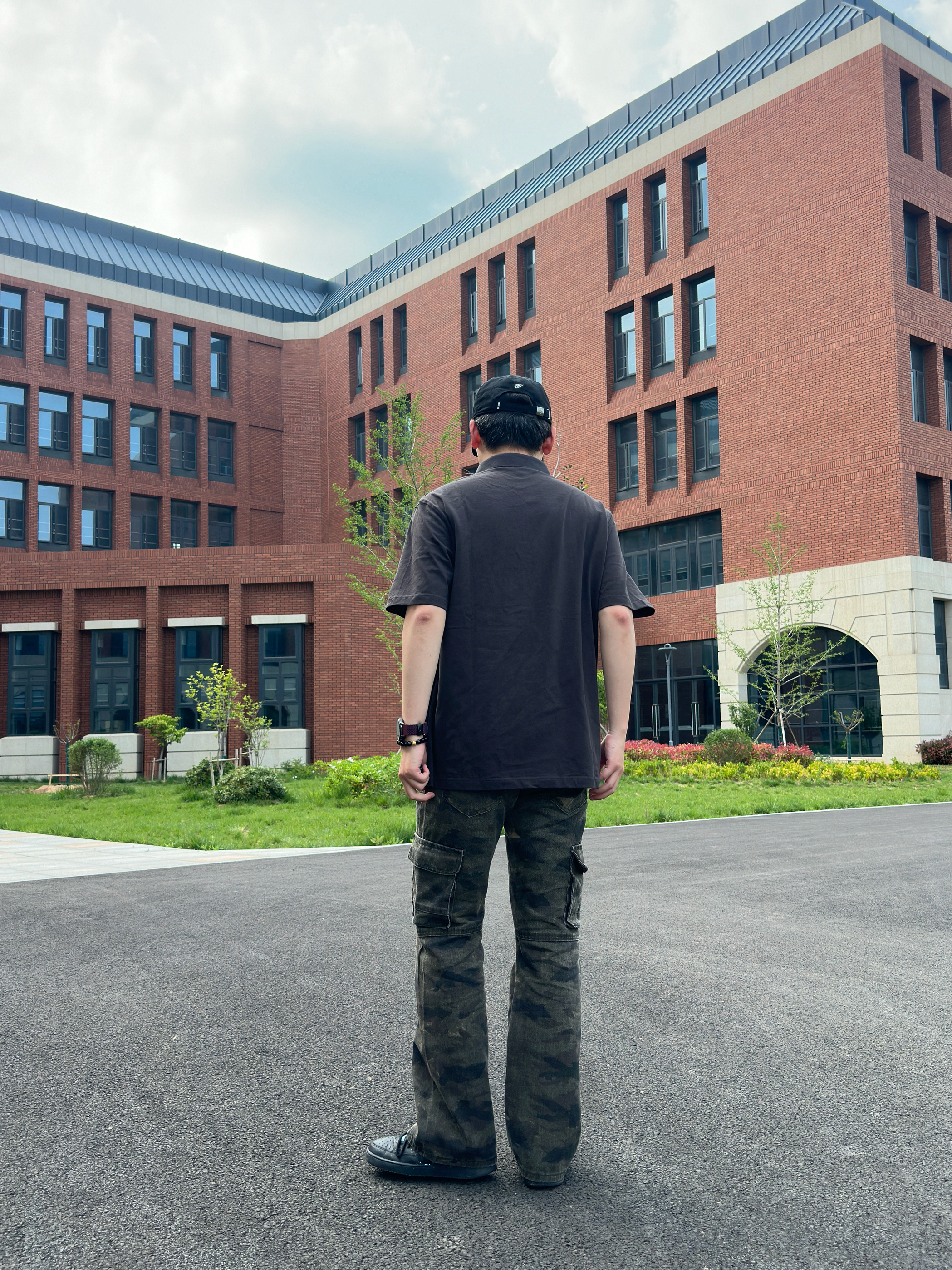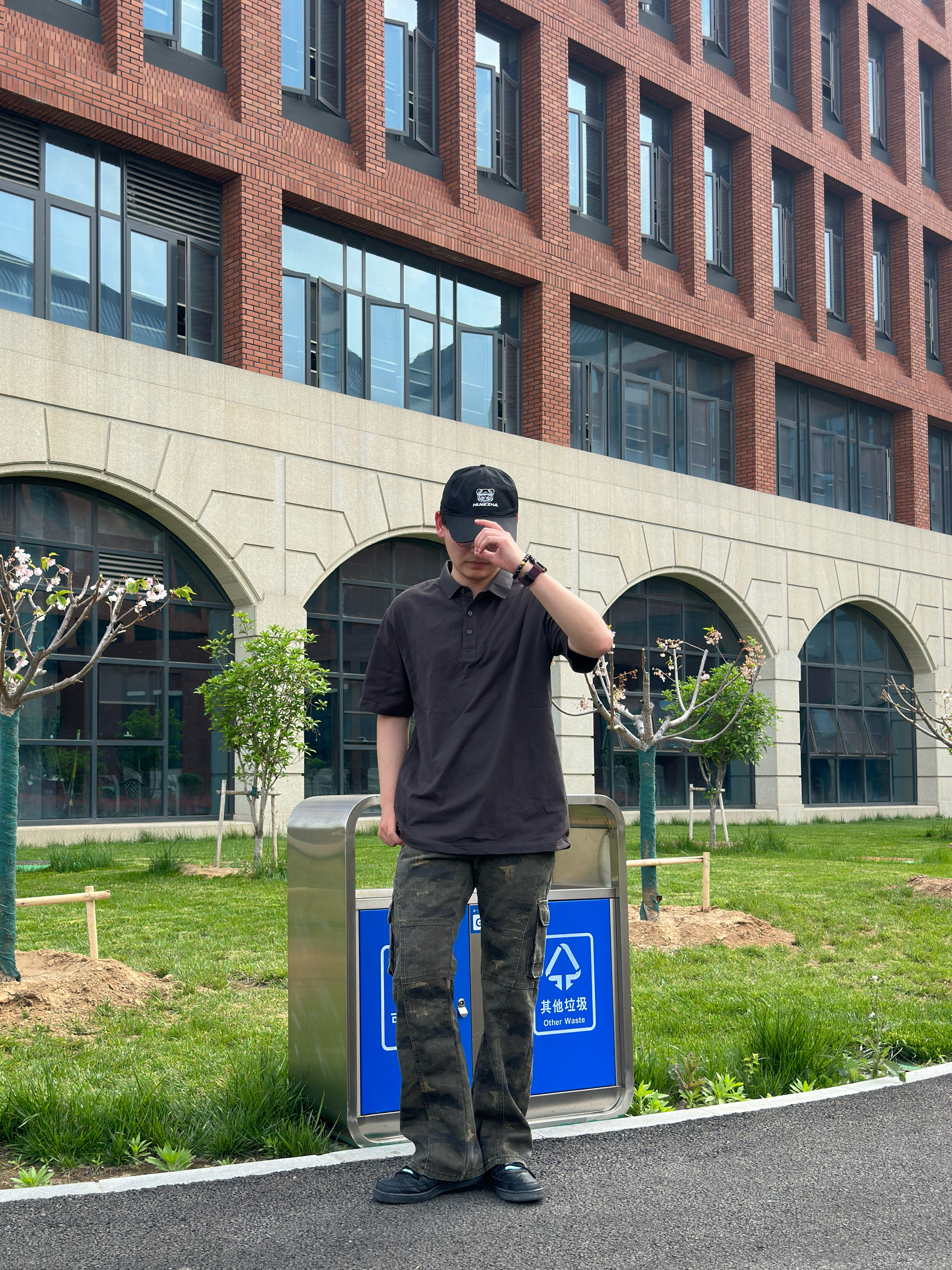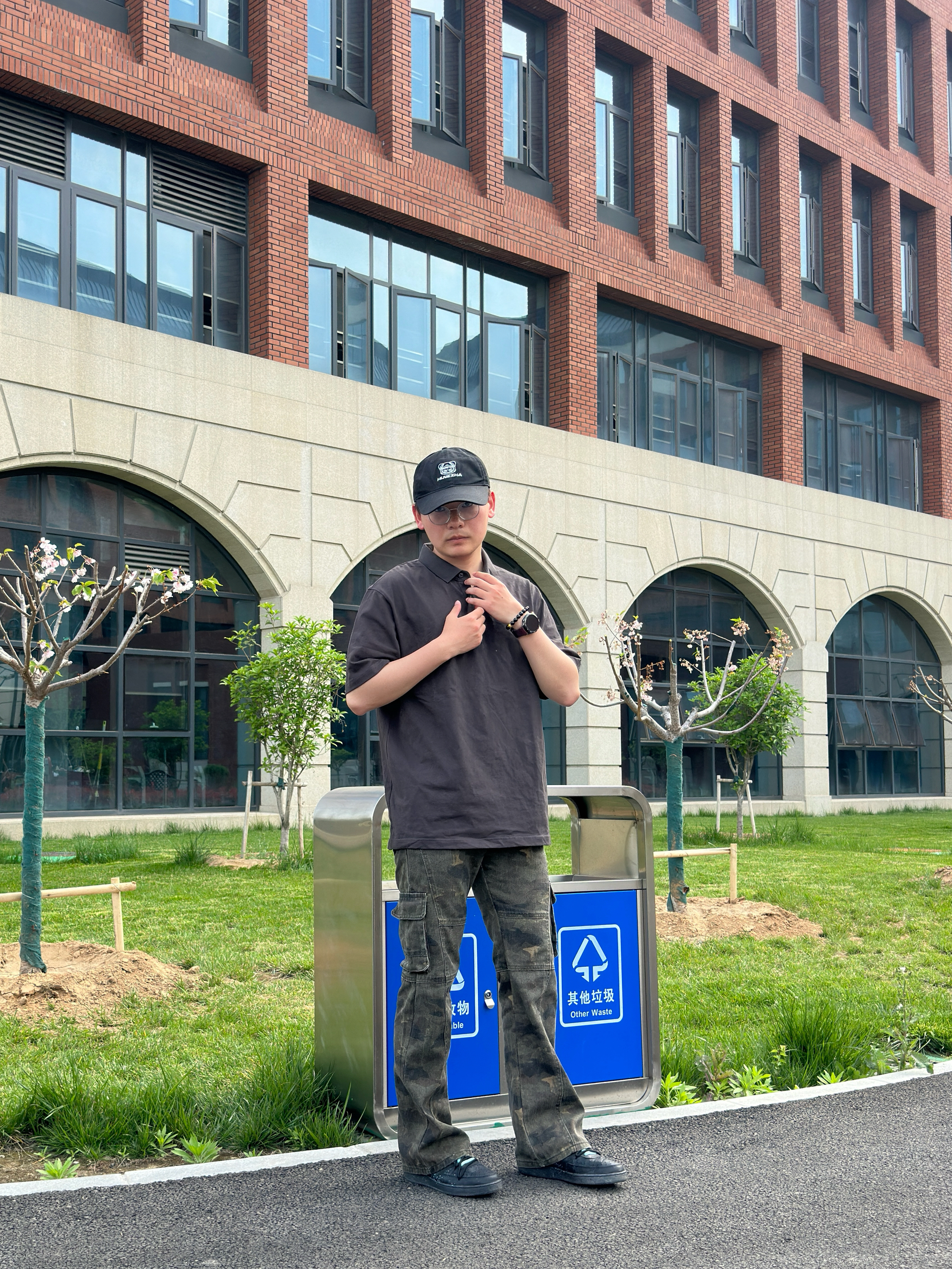 👦🏻:身高178cm/体重70kg 👕:2XL 今天分享一套男生清爽休闲风穿搭! 这件铁灰色polo衫面料舒服不闷汗 夏天穿也清爽 我搭配的是迷彩工装裤和板鞋 校园出街轻松穿!