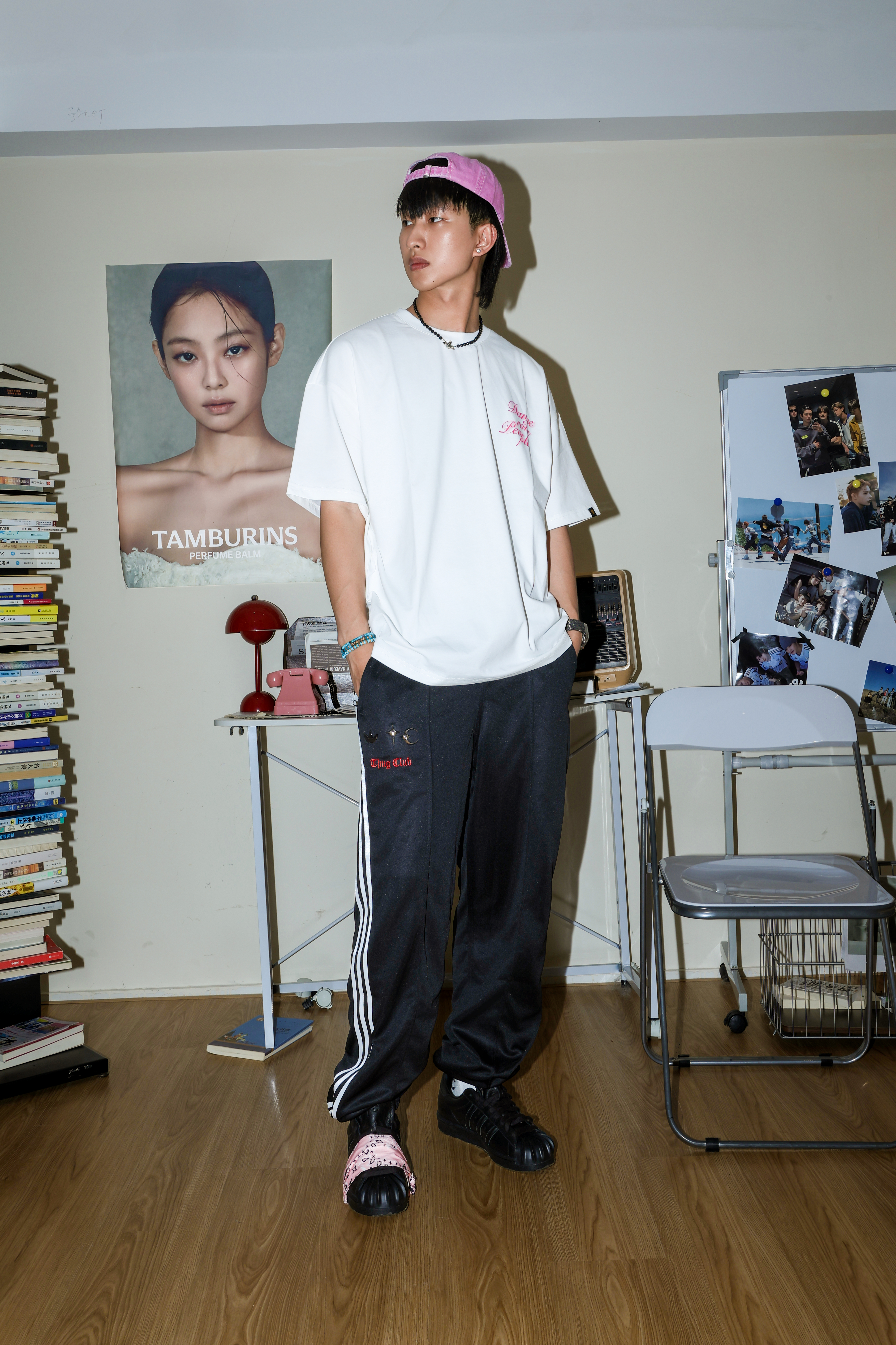 Yo wassup🤞🏻 这里是希望世界和平的Ga🕊️ ①先定主线:整套黑白打底, adidas x THUG CLUB休闲裤+Superstar统一风格。 ②上衣提亮:白粉DANGEROUSPEOPLE短袖做层次, 干净不单调。 ③版型思路:上宽下顺,日常通勤更轻松耐看。 ④细节加分:帽子做点颜色点缀,整体更有记忆点。 ⑤尺码建议:178/72穿上衣L、裤子L合身;鞋子正常44,宽脚/高脚背建议...