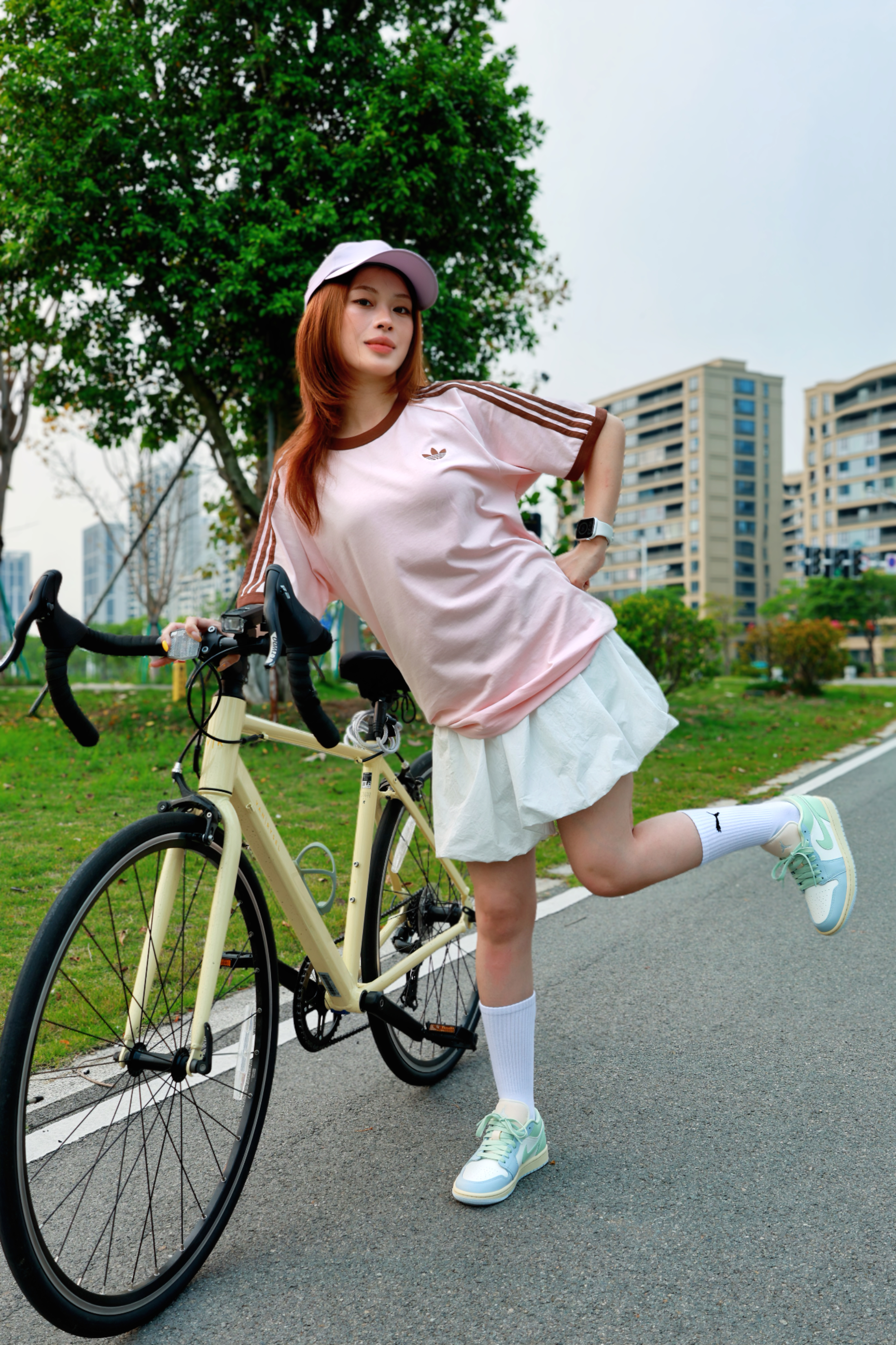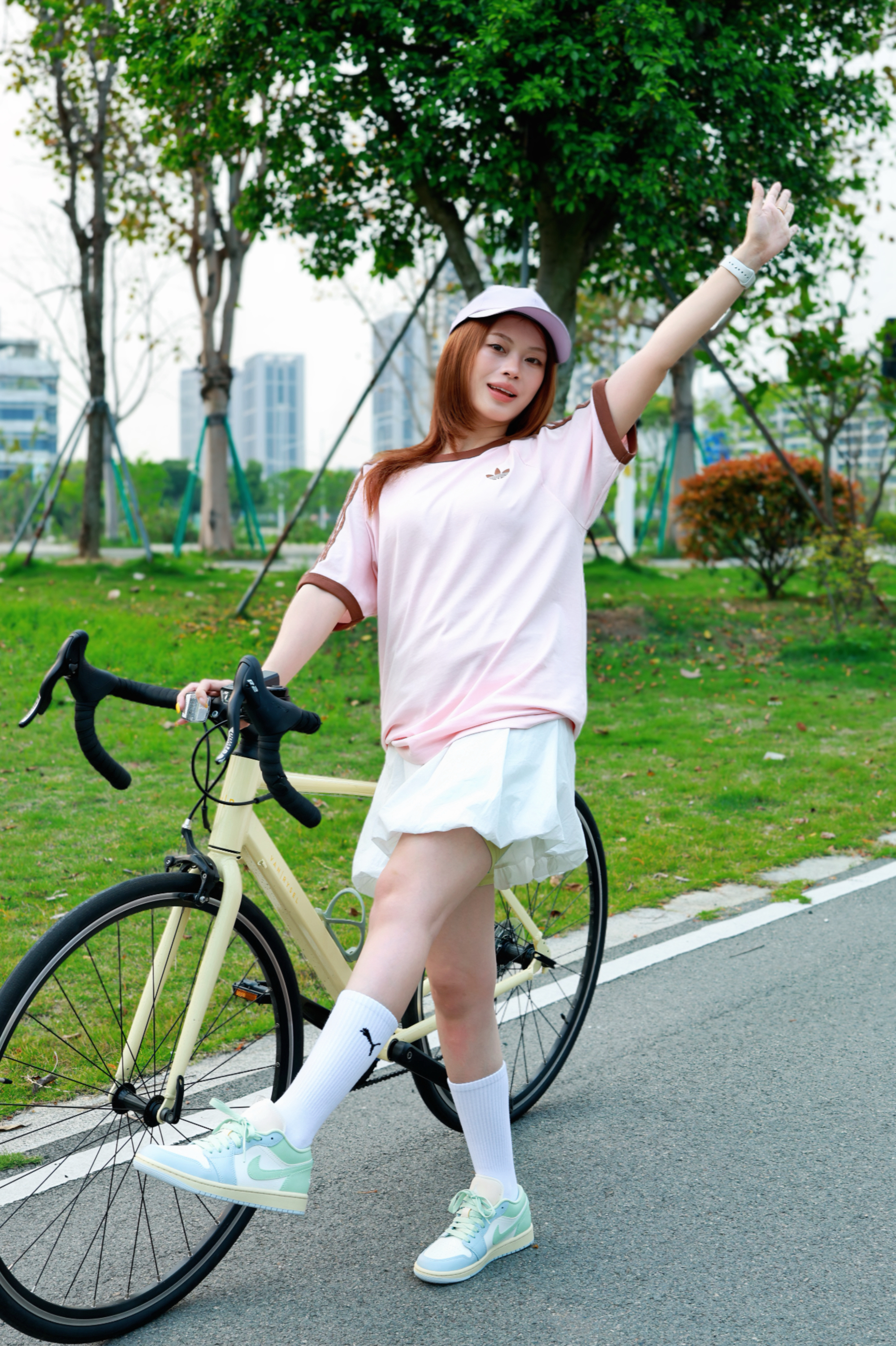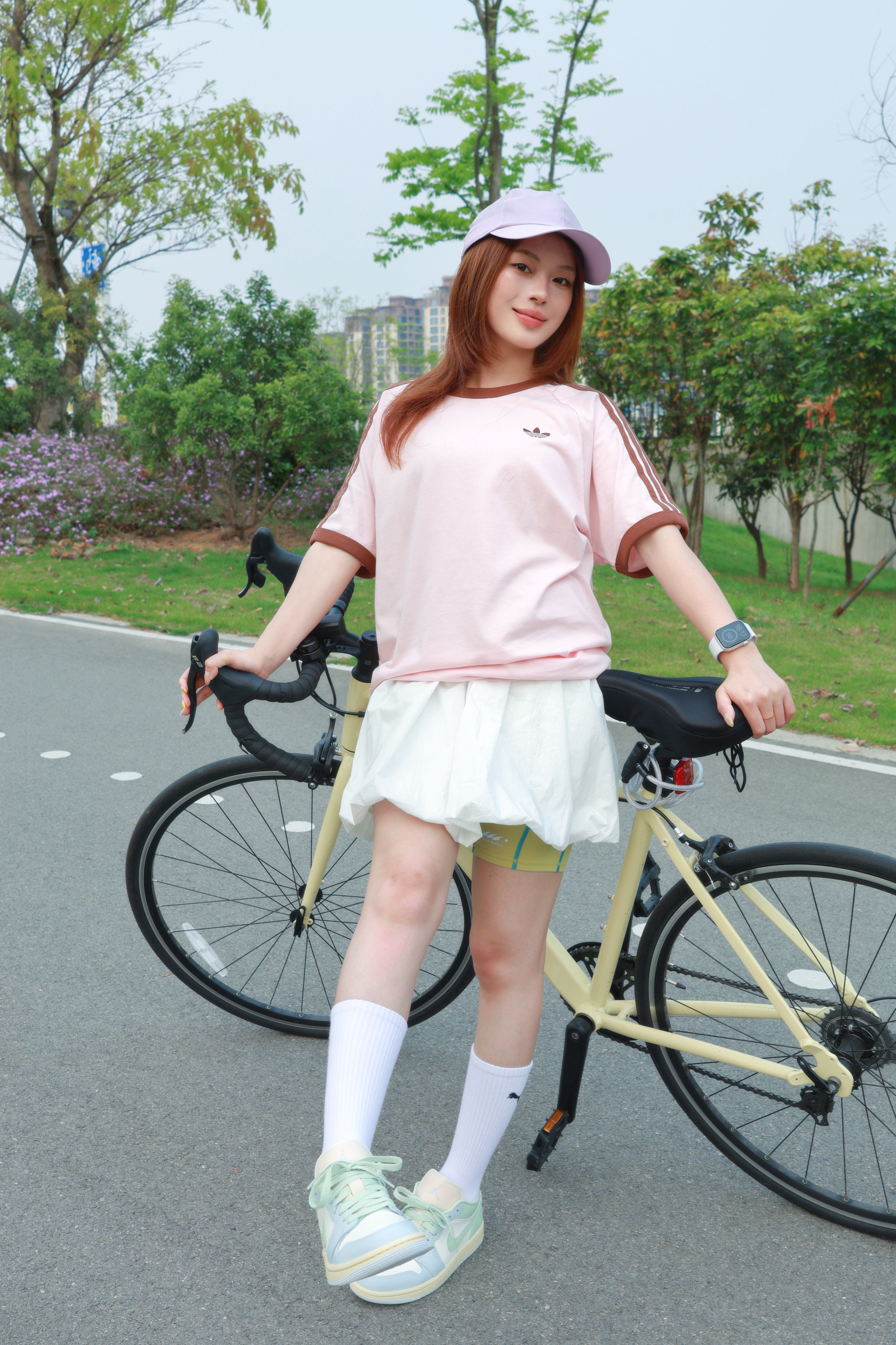 谁说运动不能穿裙子呀 上衣:草莓粉宽松T🍓 牛奶草莓的配色超级显嫩 搭配棕色条纹 奶fufu~ 一穿上就感觉充满了奶香呢 下装:绿色骑行裤➕白色花苞裙 骑行裤的运动感混搭花苞裙🌷 微微露出的骑行裤 运动感十足 外面白色蓬蓬感多了份俏皮 这样的混搭又时髦又便捷 🚴 简直是为爱美又爱运动的女孩量身定制