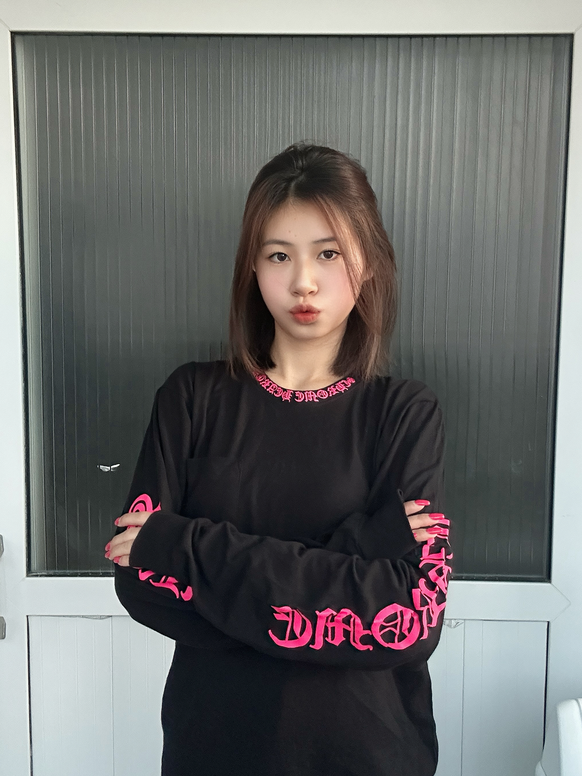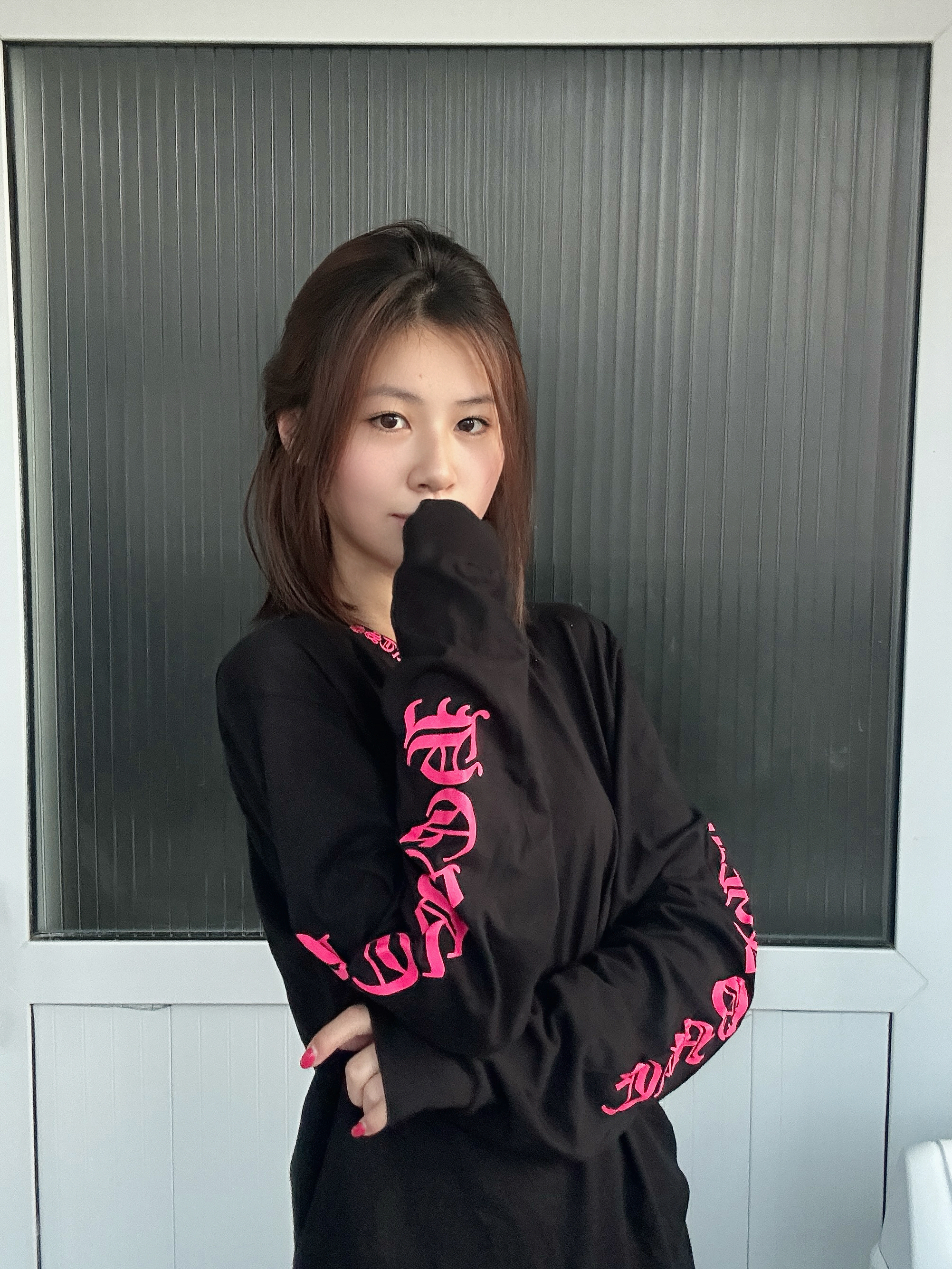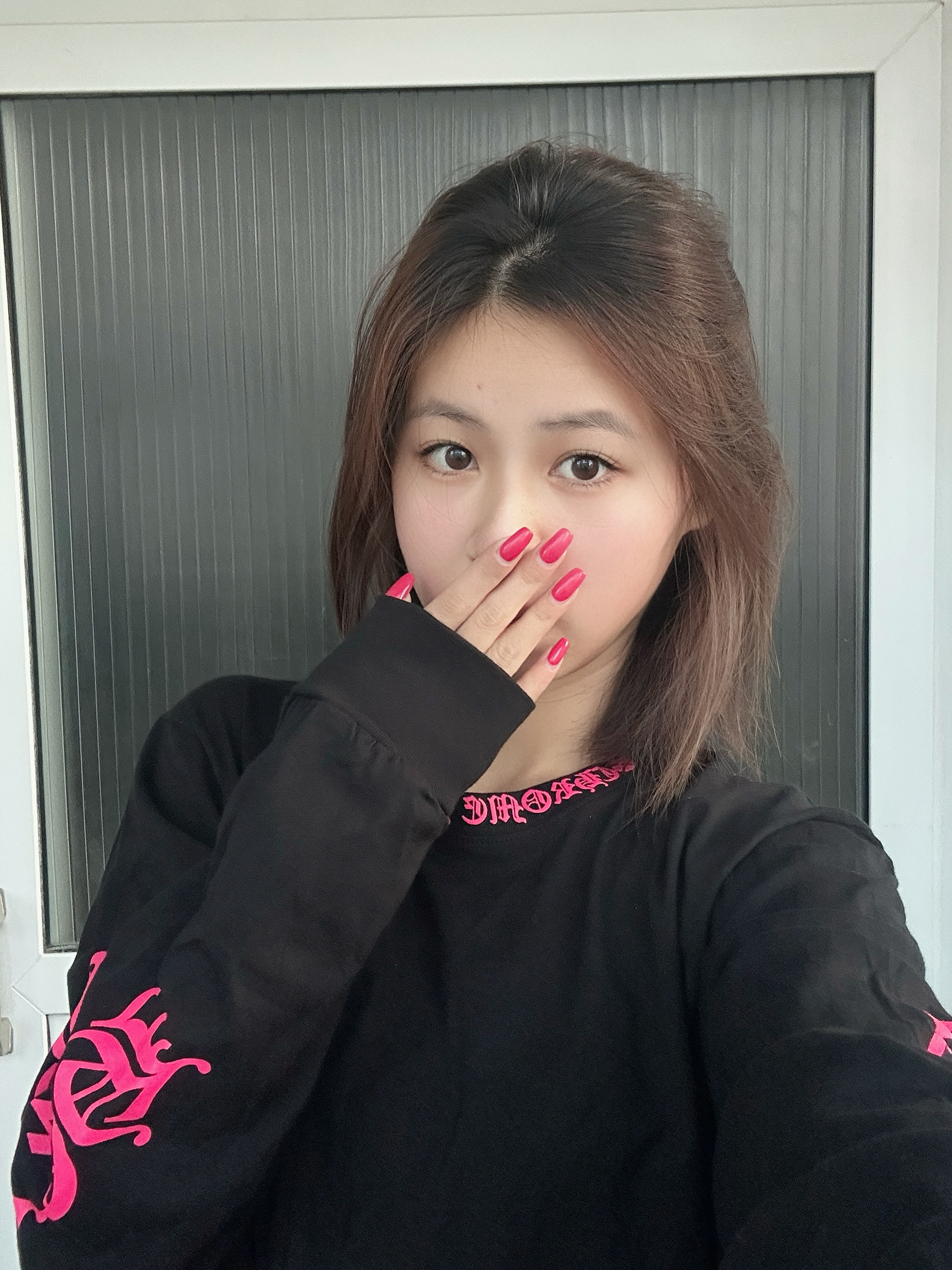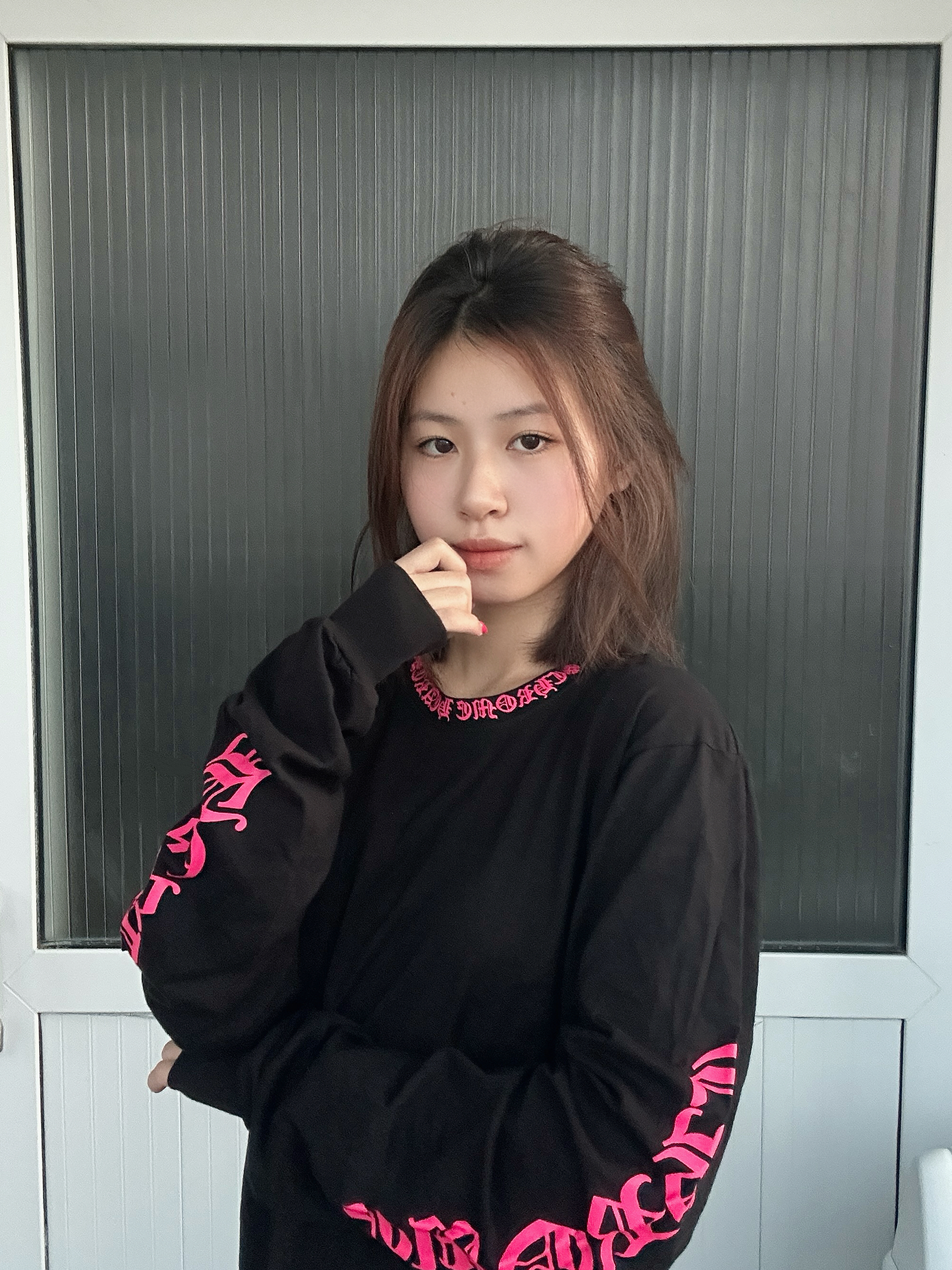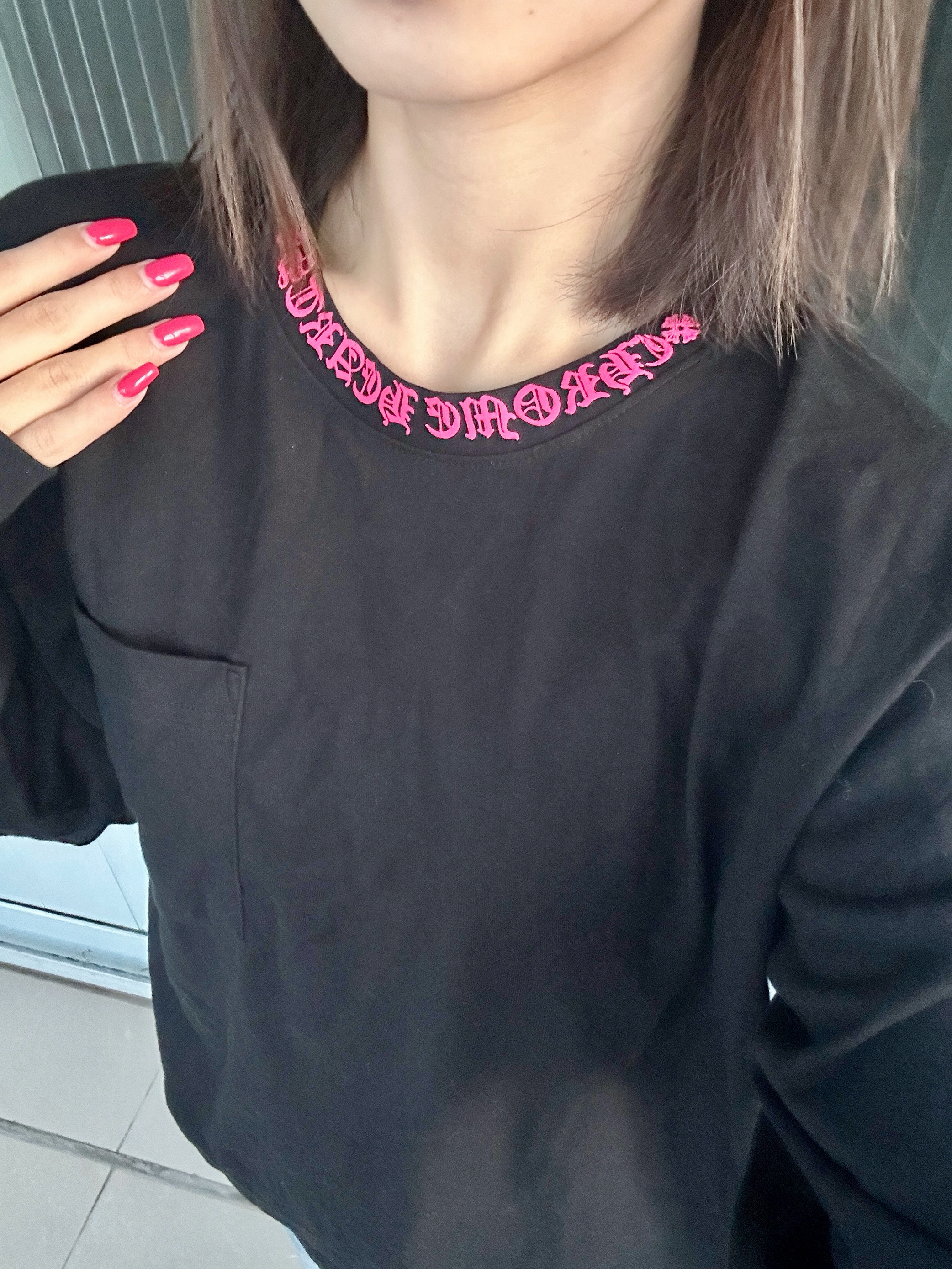 玫红色的点缀特别亮眼吸睛 和我的美甲特别搭耶 这件克罗心还挺百搭的