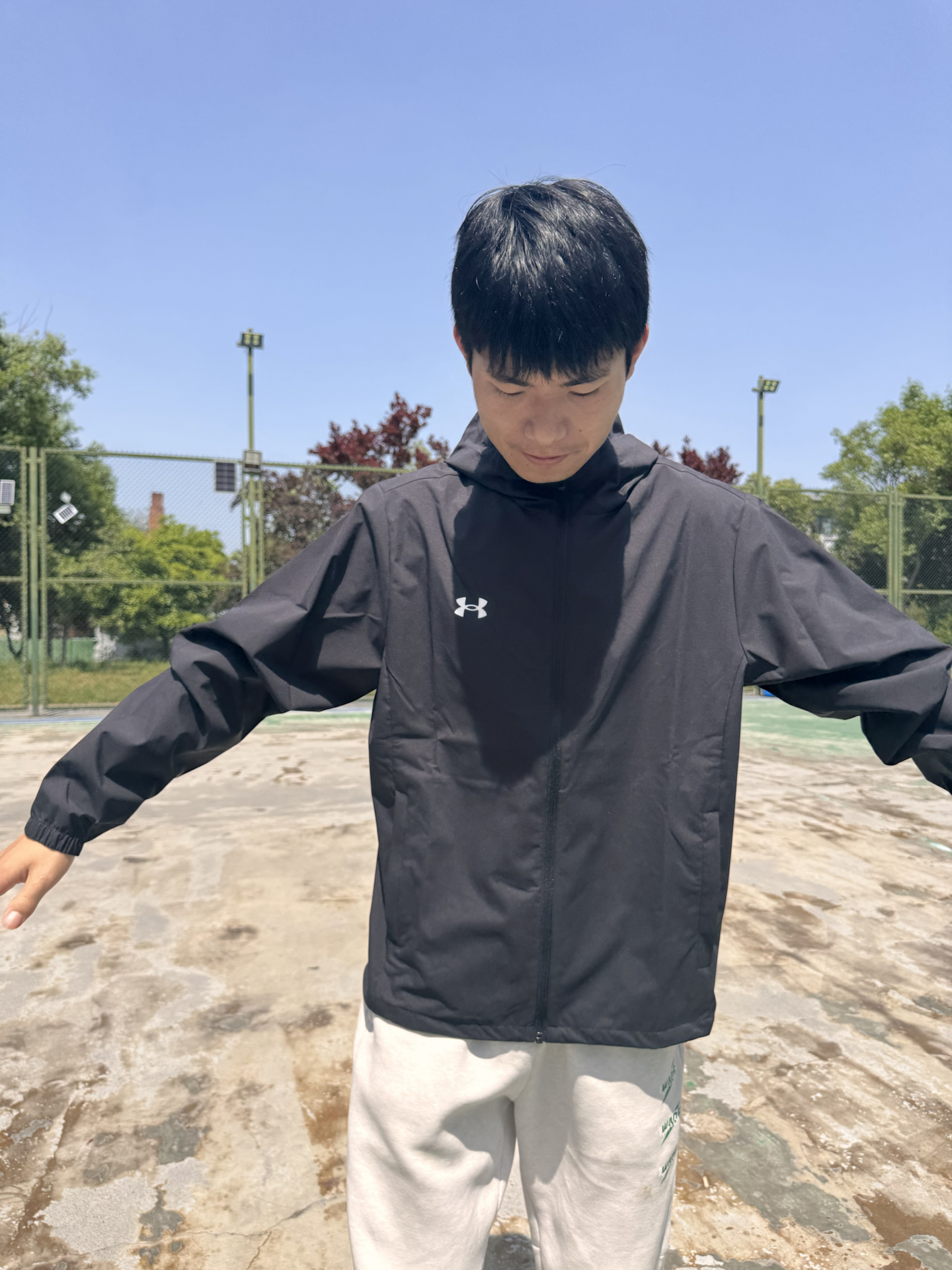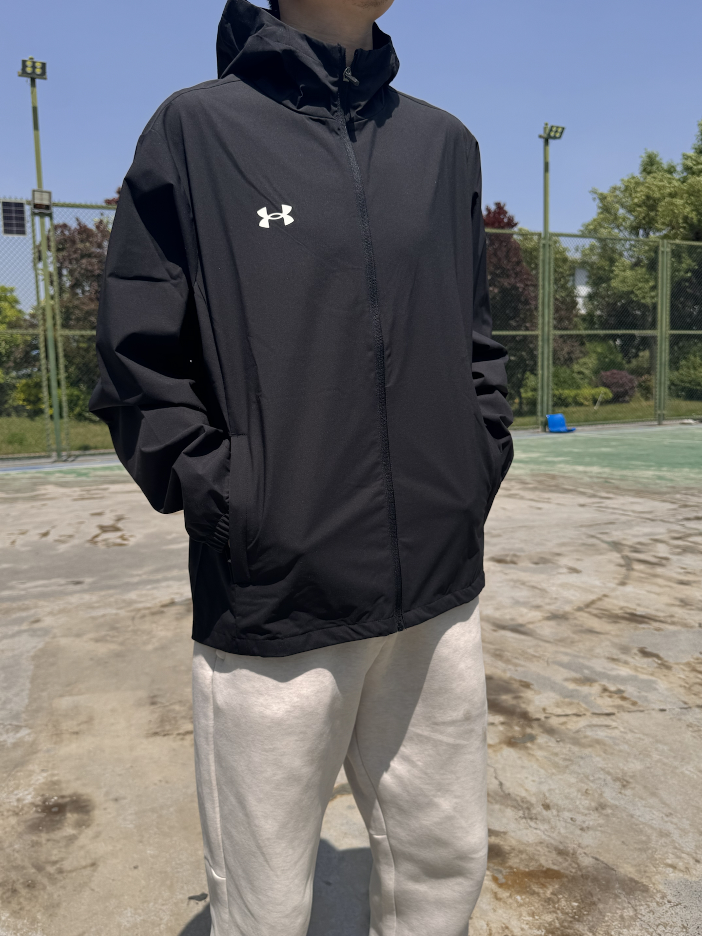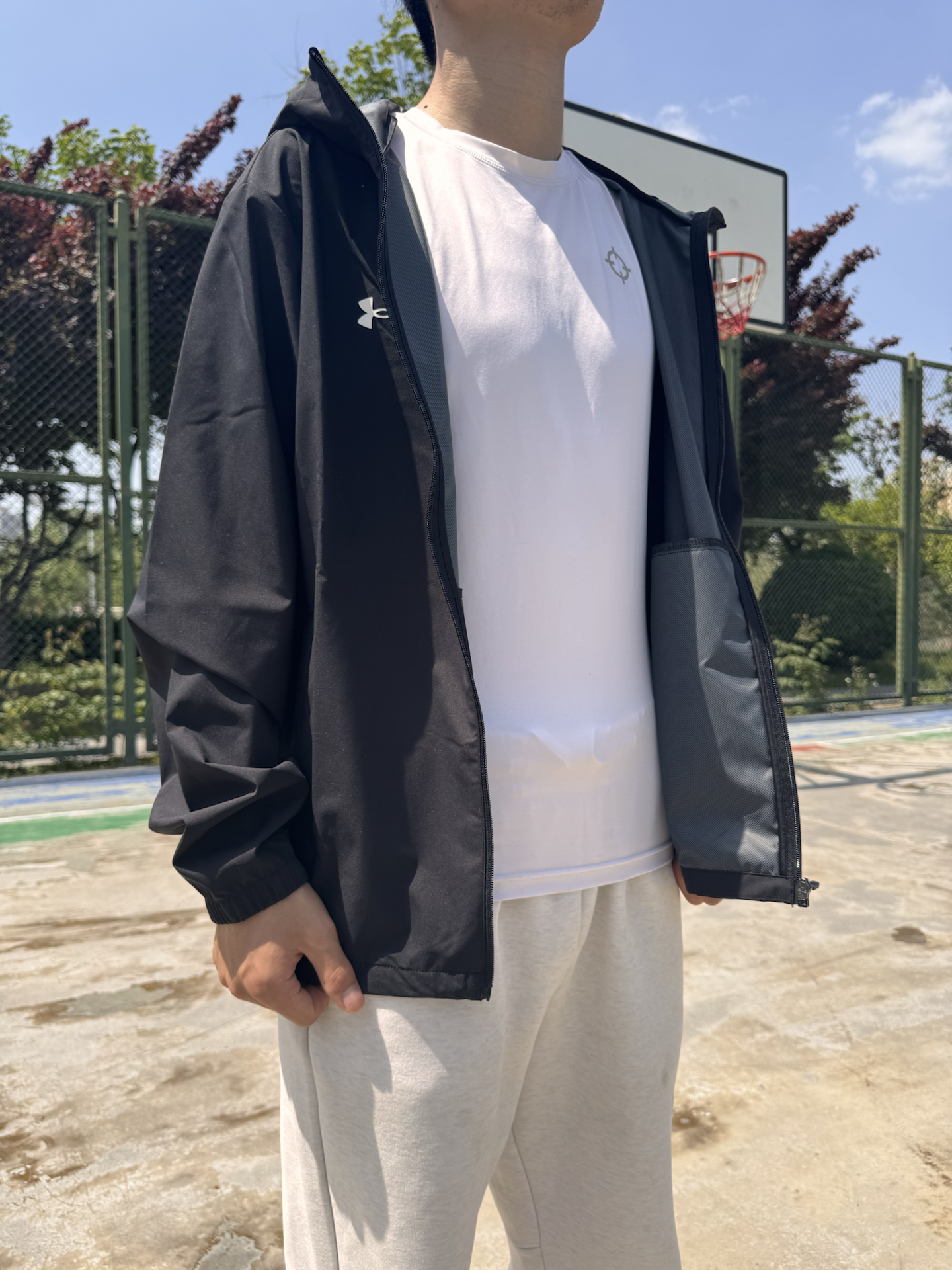 这件外套到手质感超出预期,面料顺滑有韧性,防风防泼水的属性很实用。日常通勤穿利落不拖沓,运动时穿也能轻松应对大幅度动作,宽松版型不挑身材。我身高178cm、体重63kg,选的L码上身宽松舒适,活动起来毫无束缚感。简约小logo设计低调耐看,黑色百搭不挑搭配,是春秋季的实用款单品。