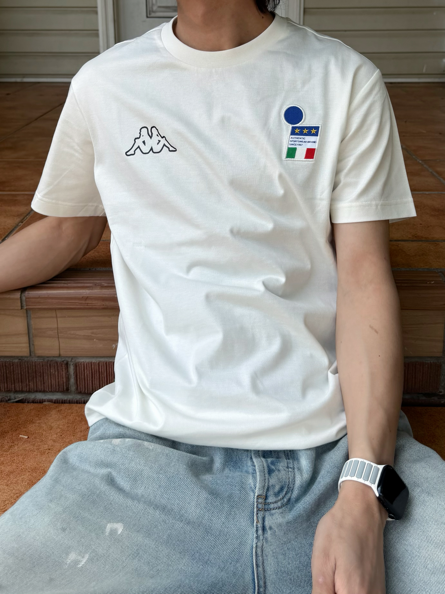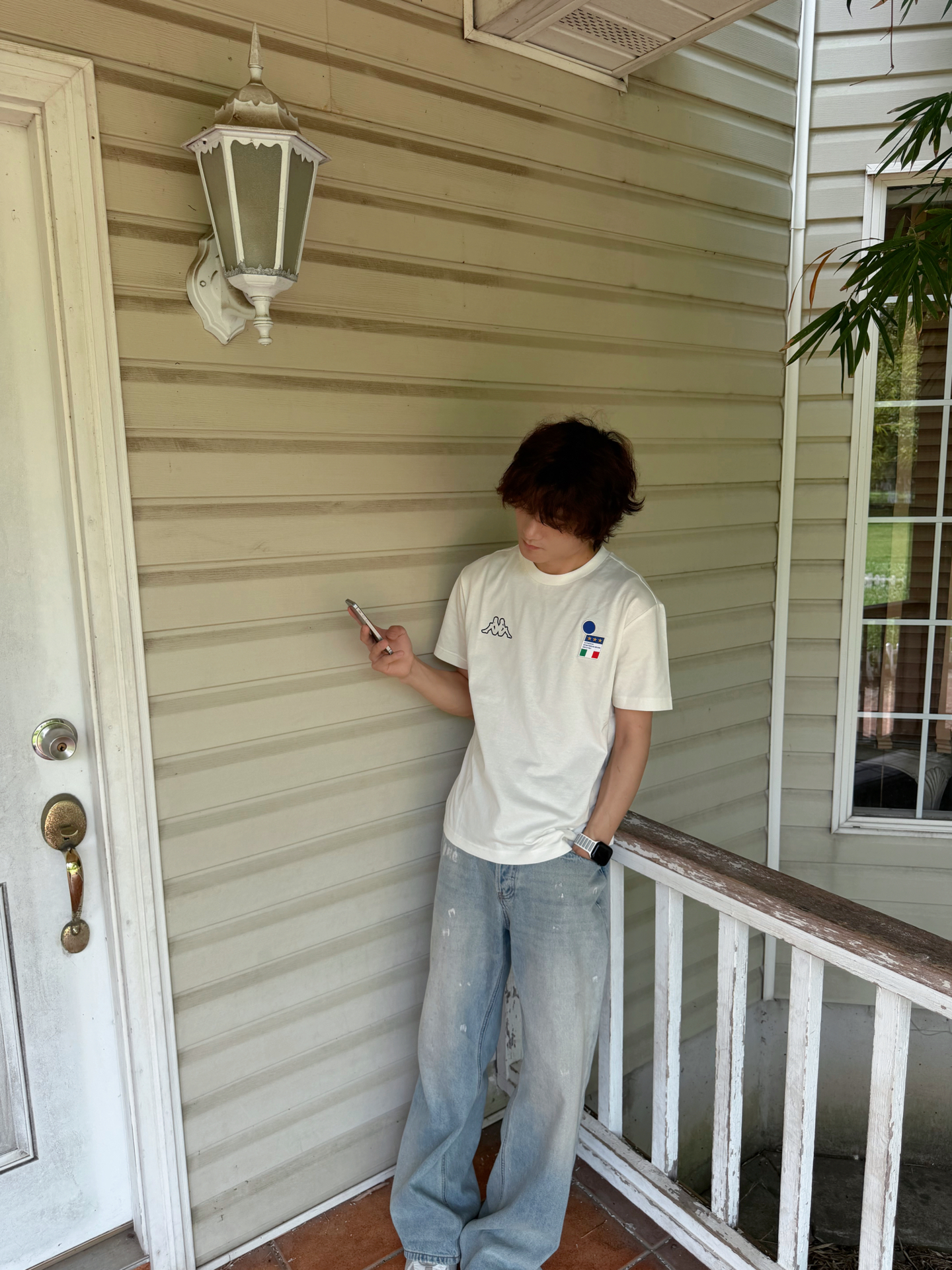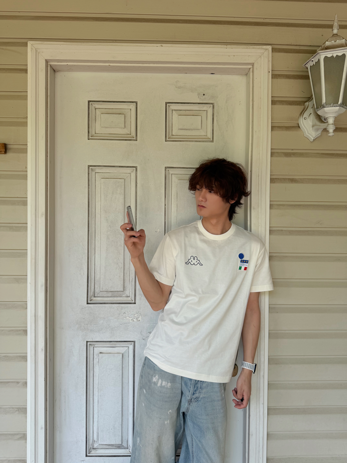 男生夏天的本命穿搭就是白T+牛仔裤😭 这件Kappa白T面料软乎乎的,贴身穿软糯舒服,透气不闷汗 搭配浅蓝阔腿牛仔裤,瞬间拉满少年感 日常出门、散步、通勤都超合适,懒人直接一套穿,舒服又帅气 基础款才是yyds,简单干净的穿搭永远不会过时! 短袖