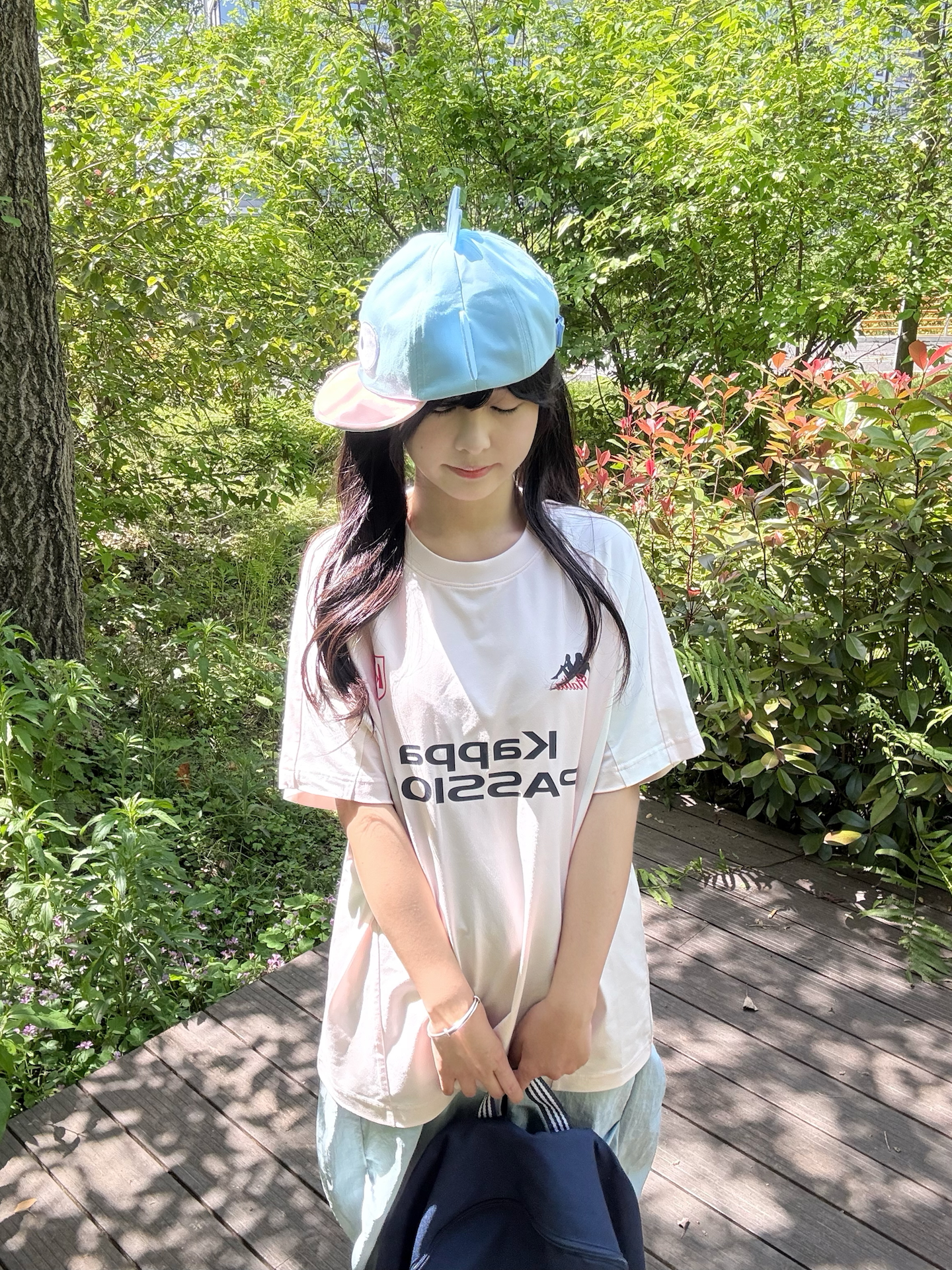 粉白拼色真的好温柔~ 面料软软的 版型宽松不挑身材💪 好显嫩呀 这个粉色T也不会显黑好好看~ 日常穿刚刚好 这身过夏天包甜的! 背靠背