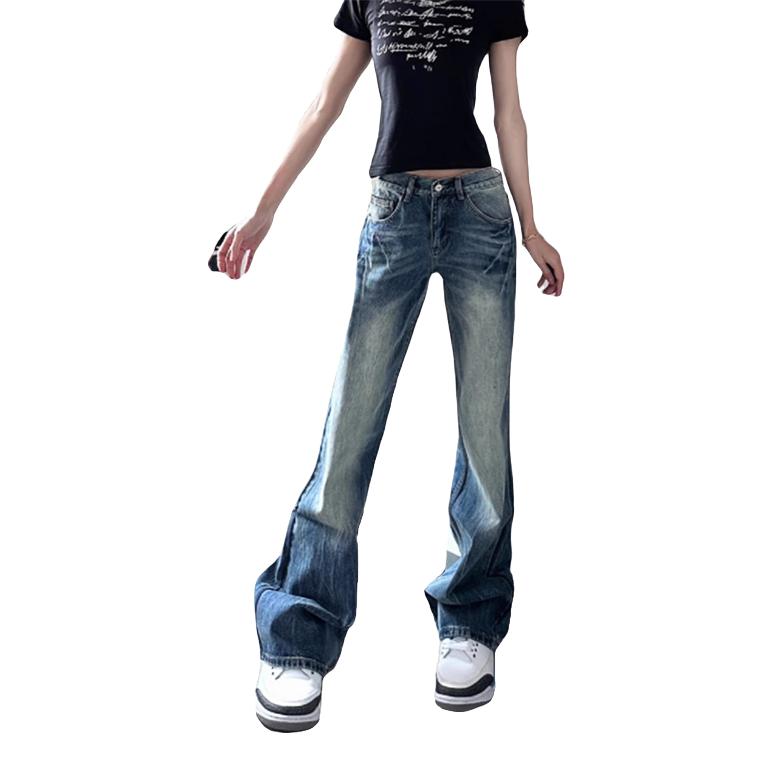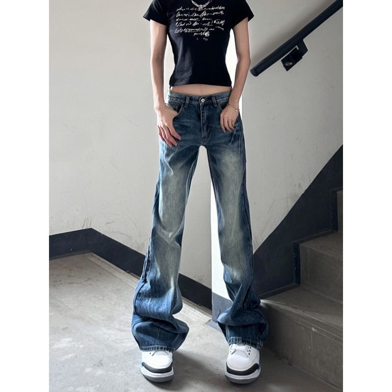 谁懂啊!做旧水洗微喇裤才是美式复古的灵魂! 低腰剪裁+微喇裤型,直接把腰臀比拉到极致,搭配简约黑T和AJ,随性又显瘦,梨形身材闭眼冲! 走在街上回头率爆表,这一套就是off duty穿搭的标准答案~