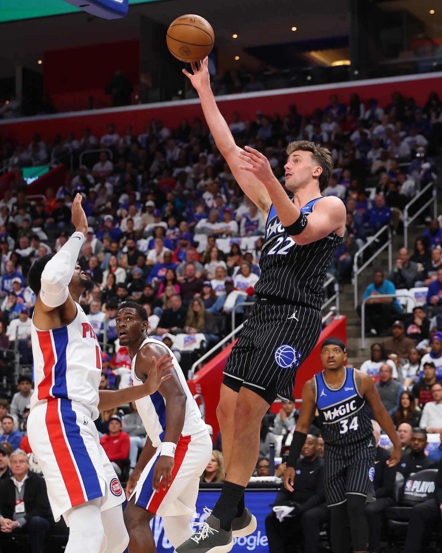 Franz Wagner这一战真的燃炸了!🔥 带领奥兰多魔术在首战就震撼了顶级种子活塞队,全场冲锋的姿态太有领袖气质! 而且他脚上这双Fear of God x adidas Athletics 3 也完全是亮点👇 - 颜值拉满:经典的灰色调设计,低饱和度配色高级又耐看,搭配魔术队的黑蓝球衣氛围感直接拉满。 - 实战性能:作为FOG联名的篮球鞋,中底提供了优秀的缓震回弹,鞋身贴合度极高...