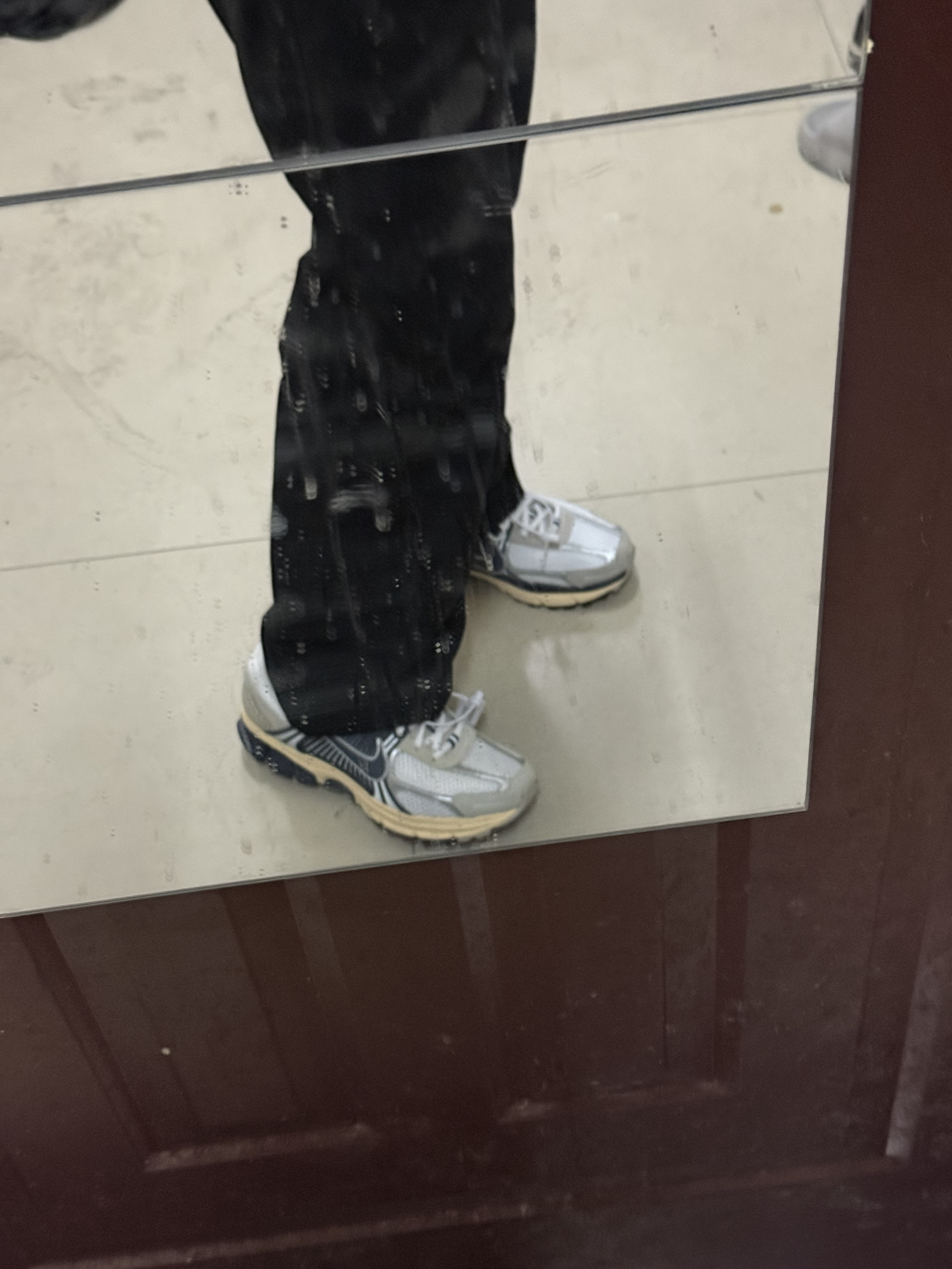这双Vomero 5真的挖到宝了!上脚完全不挑搭配,牛仔裤、运动裤、工装裤随便穿都好看,复古做旧的米白+海军蓝配色超有质感,低调又耐看。脚感更是惊喜,前后掌气垫软乎乎的,暴走一天也完全不累脚,网面透气性也超棒,夏天穿也不会闷汗。细节做工都很在线,上脚效果巨显腿细,已经成为我近期出门的首选鞋款了!
