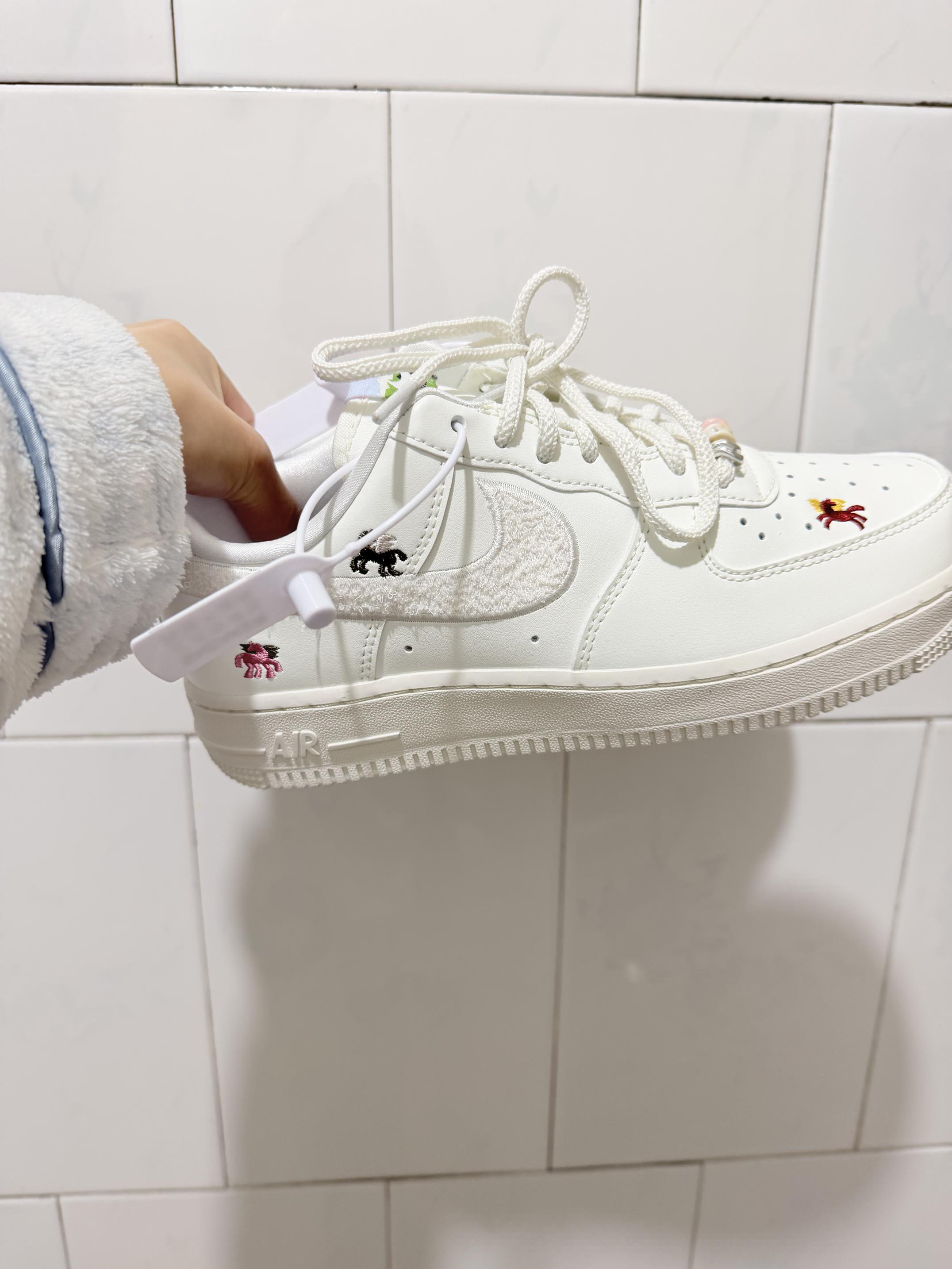 👟这双 Nike AF1马年限定,奶白皮革+多彩小马刺绣 每只马都独一无二,细节超丰富! 鞋舌“100.甲辰”+后跟马蹄印,生肖氛围感拉满✨ 绒面Swoosh、串珠鞋带、磁吸抽绳 穿脱超方便,宽脚友好 中底Air气垫,前掌加宽,舒适又稳,通勤节日都能穿 寓意“马到成功”穿上它走路都带风 心情都变好了~搭配小裙子出门被夸爆啦 百搭牛仔裤、裙装,日常穿搭必备