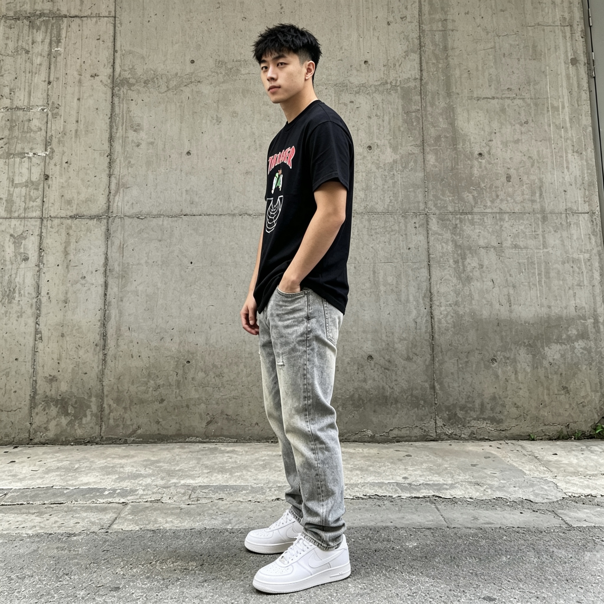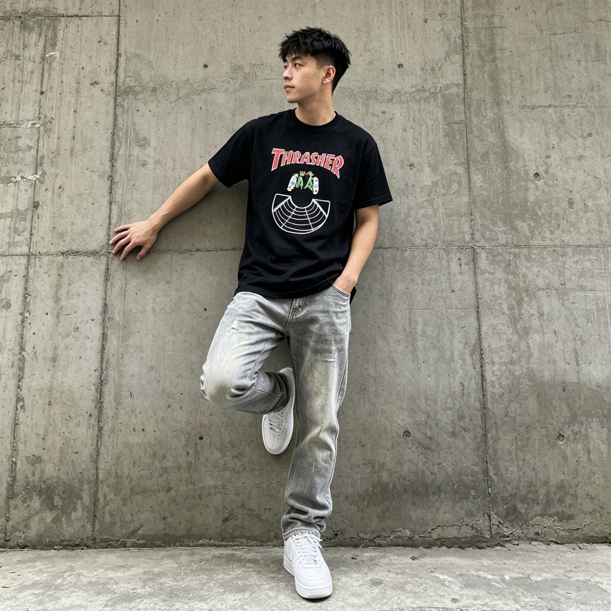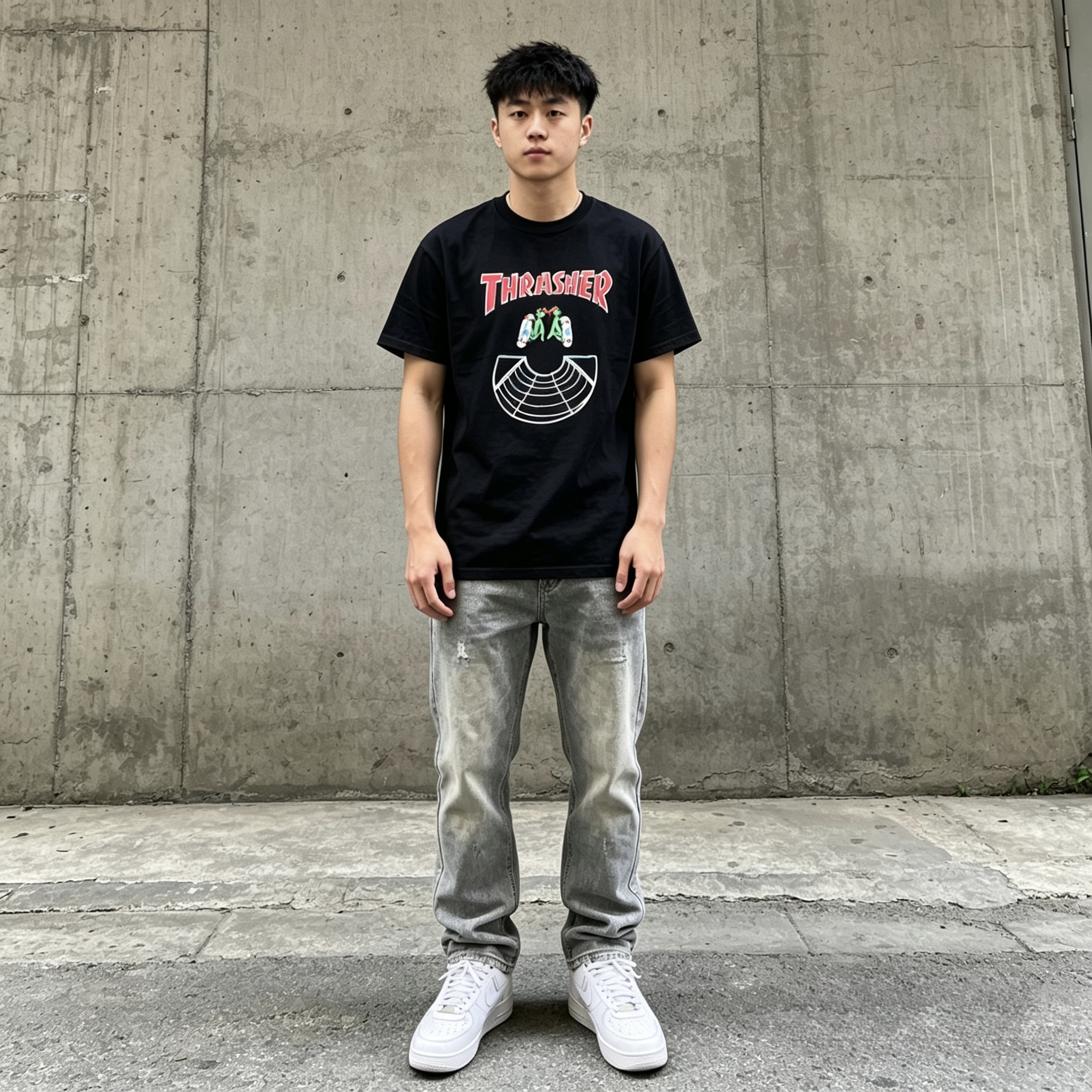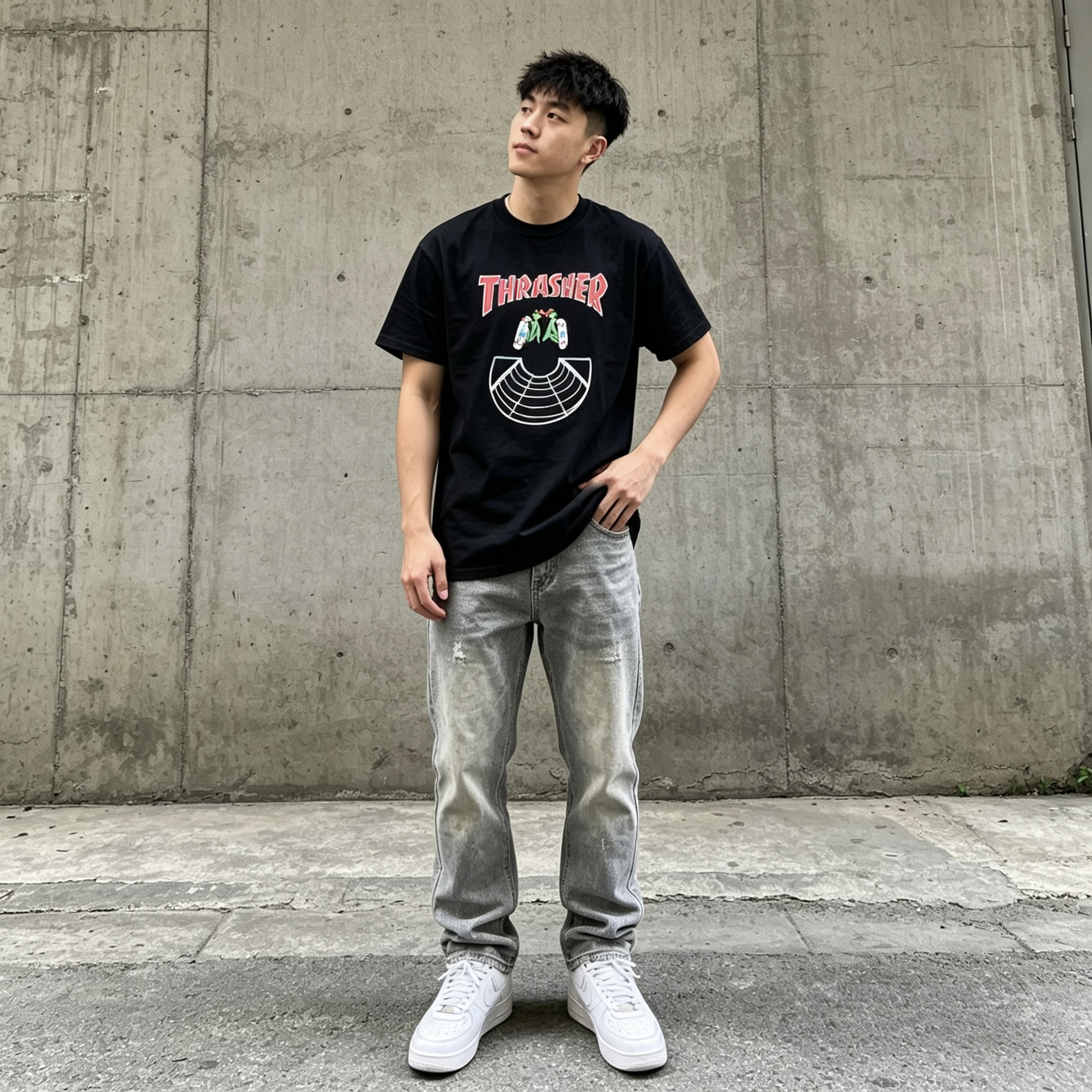 夏天的快乐,是一件舒服又有设计感的黑T给的 Thrasher 这件印花T真的百搭到犯规 随便搭牛仔裤、运动裤都不踩雷,宽松版型对身材也超友好 出门前随手一套,懒人也能轻松拿捏清爽少年感 #男生短袖 #夏日穿搭 #平价潮牌 #OOTD #学生党穿搭