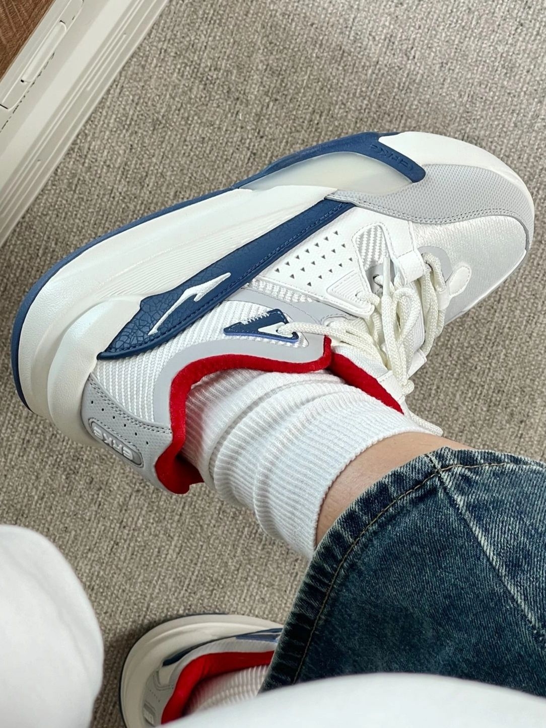 被鸿星尔克这双板鞋狠狠圈粉了!!👟 本来只是随便买的,没想到上脚直接惊艳到我! 奶白+雾霾蓝+正红的配色,清爽又耐看,不管是搭休闲裤还是牛仔裤都超合适,夏天穿也不闷脚。 重点是它的脚感真的绝了,鞋底软乎乎的,像踩在云朵上一样,逛一整天街都不会累。 百元价位能买到这么好看又好穿的国货板鞋,真的太香了,已经推荐给身边所有朋友了!