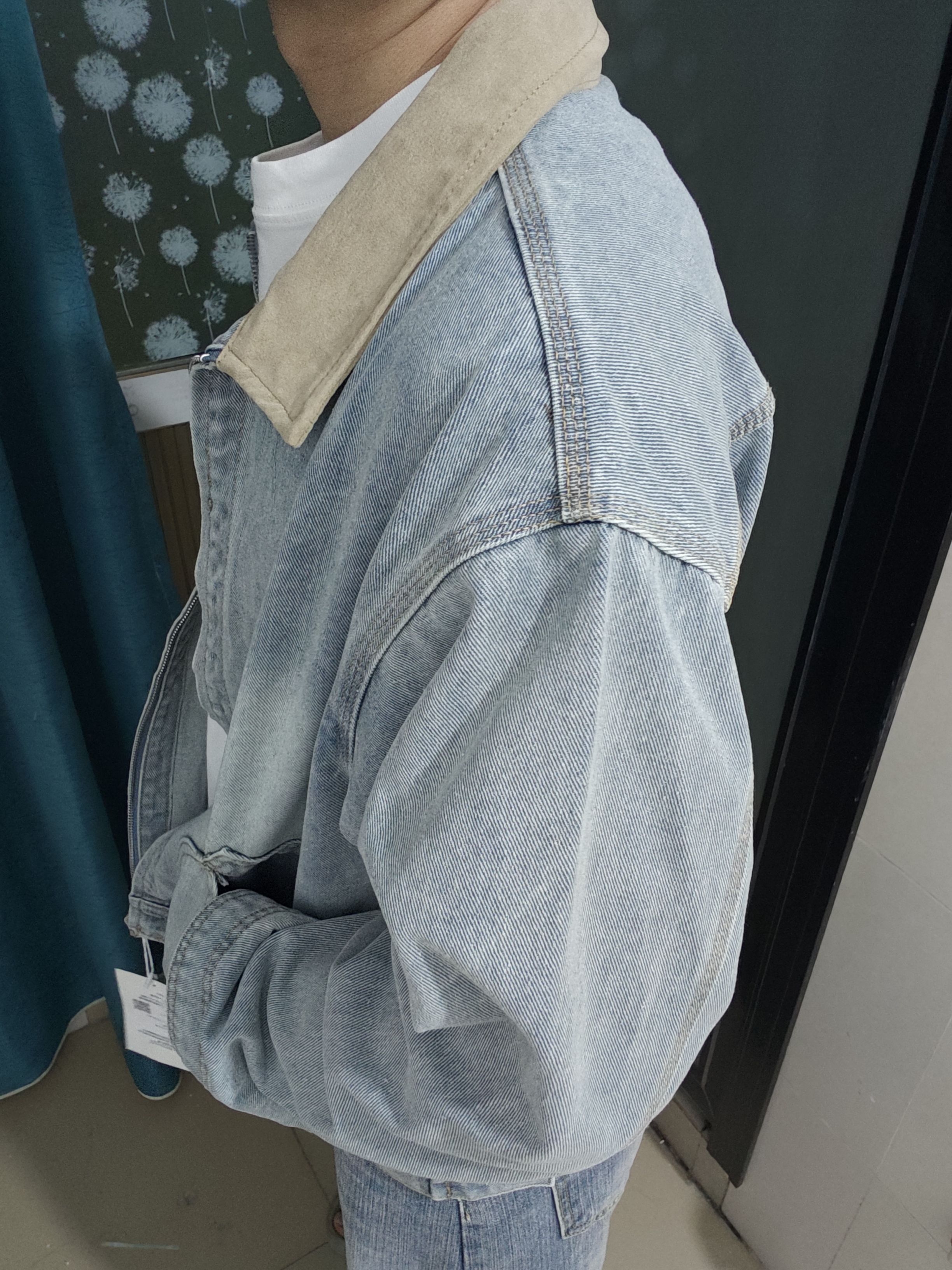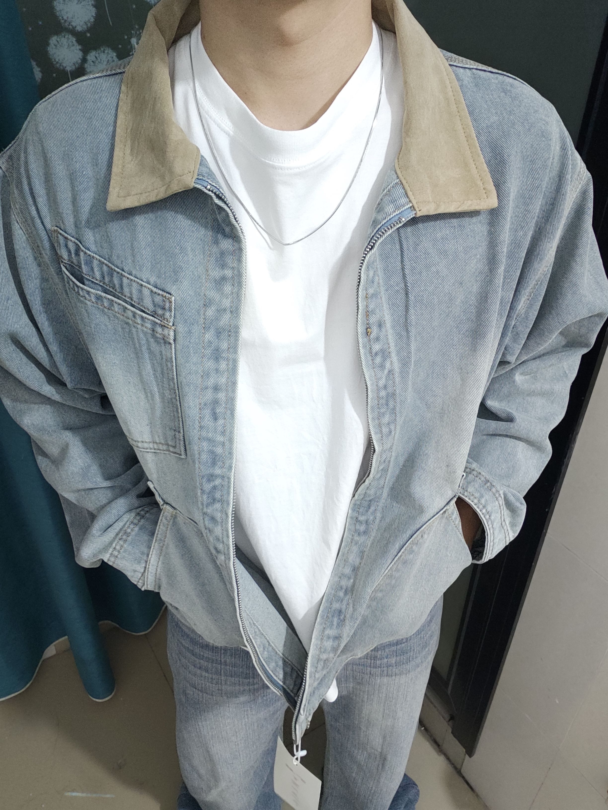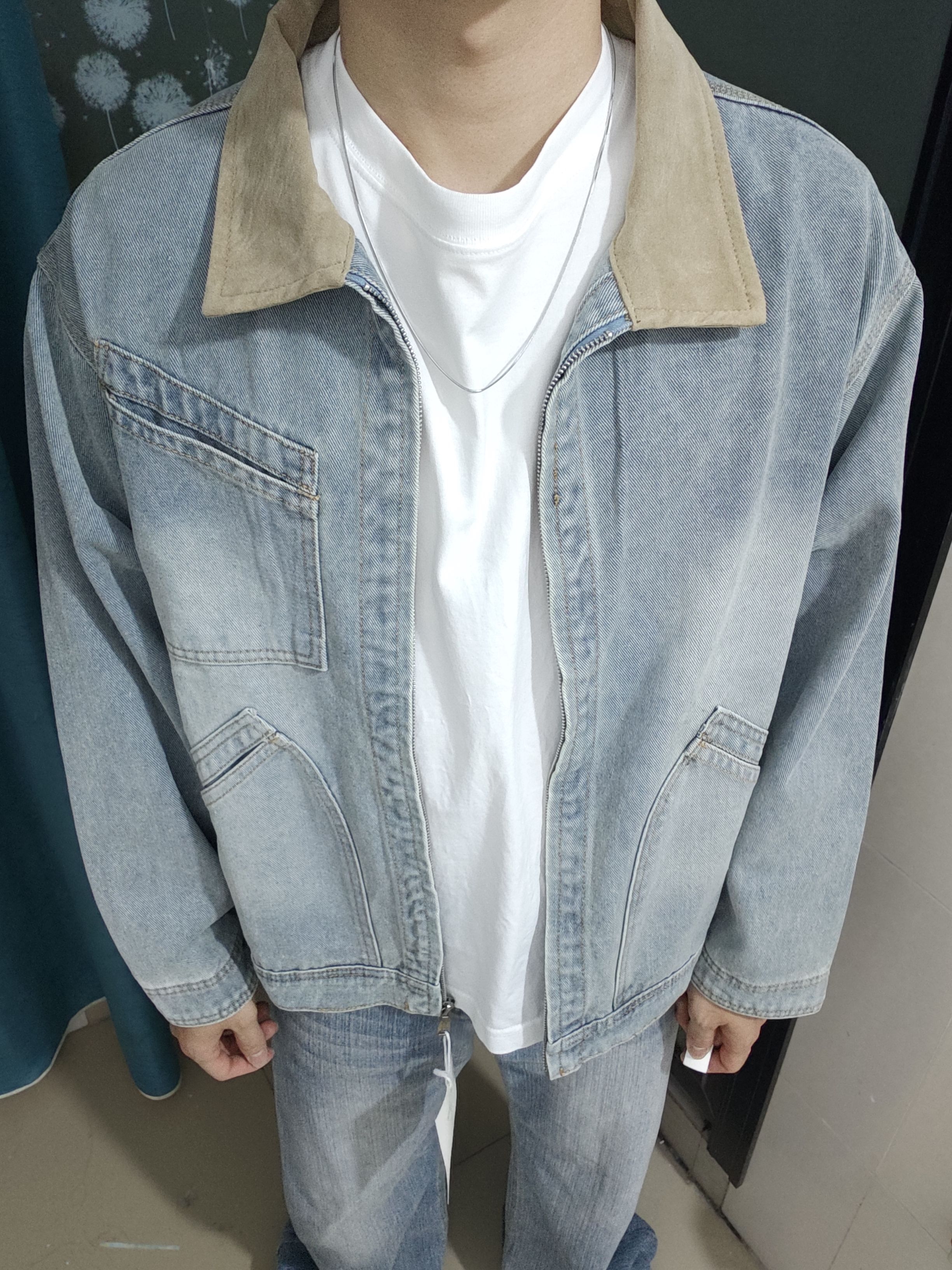 浅蓝水洗+卡其麂皮领的撞色,复古感直接拉满,不是烂大街的款,穿出去不容易撞款,自带一种松弛的美式街头感。版型:微宽松的H型,对身材的包容度超高,不会像紧身款那样挑人,也不会oversize到压个子,日常穿刚刚好,不挑身高体重。 面料,水洗牛仔布软而有型,不容易皱,走线工整,口袋的设计也很实用,拉链顺滑不卡顿,细节里全是质感。 日常通勤、周末出街、约会穿都合适,随便搭个白T就很清爽,叠穿卫衣又很有层...