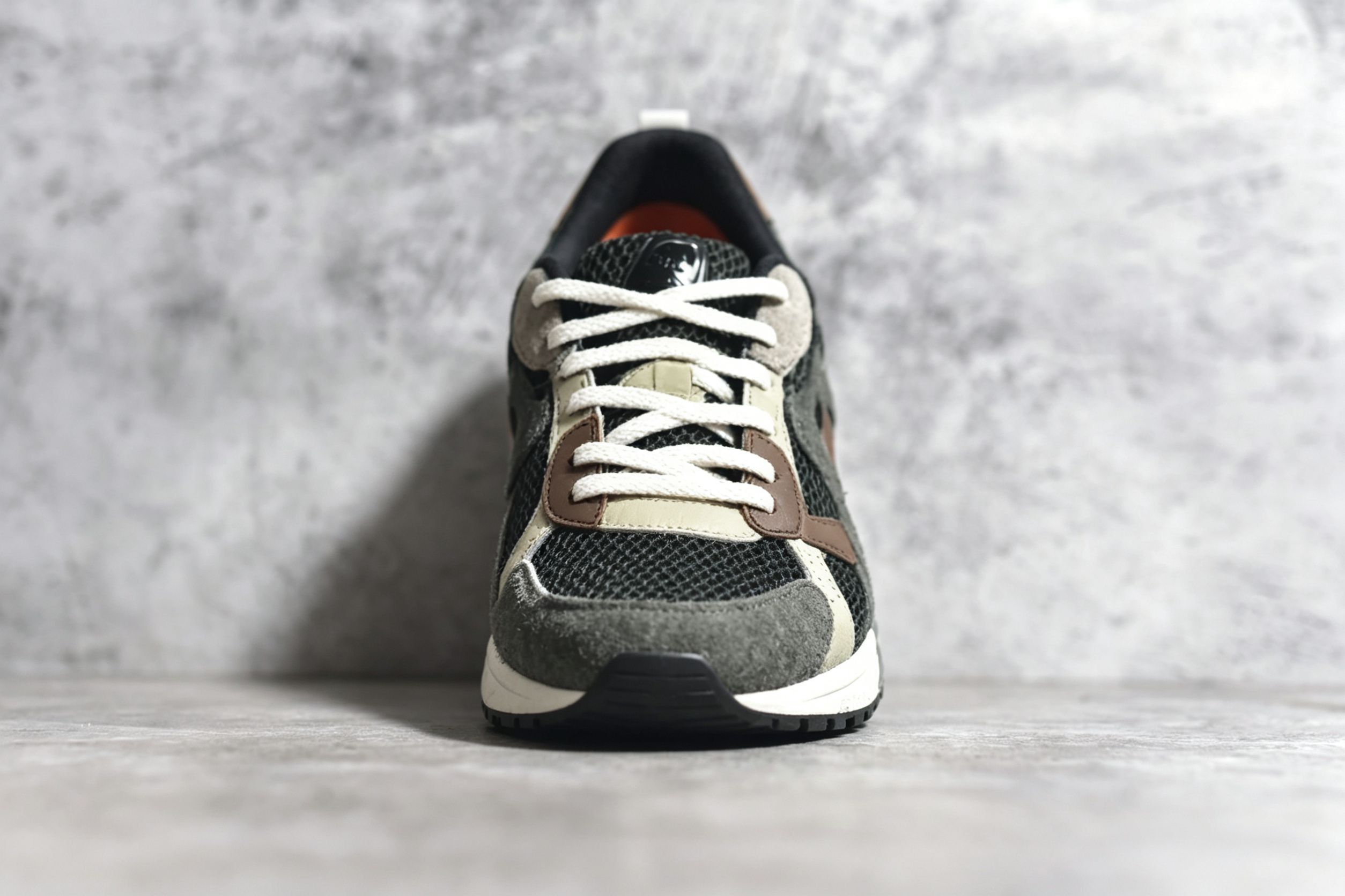 首先配色真的太戳我了,深绿、灰、棕的复古拼接,自带秋冬氛围感,搭牛仔裤、工装裤、运动裤都不违和,随便一套就很有味道。 鞋身的网面+翻毛皮组合,质感很在线,摸起来很舒服,也不容易撞款。脚感方面也很惊喜,鞋底的GEL缓震很软,走路踩上去很稳,久走也不累脚,日常通勤、散步穿都很合适。 码数也很正,不挤脚也不压脚背,穿了快一周,越穿越喜欢,算是近期挖到的宝藏鞋款了。
