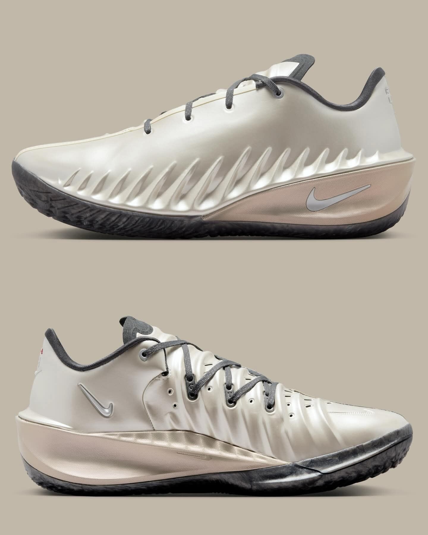谁懂啊!公牛新星Rob Dillingham的专属战靴终于曝光了🔥 Nike GT Cut 4 PE 这双金属银+铁灰的配色,质感直接拉满! 鞋身的波纹设计自带科技感,上脚适配各种实战场景,也太帅了吧! 作为Nike力捧的新星,这双专属PE不仅颜值在线,性能也拉满, 场上突破变向的灵动,全靠这双战靴加持!
