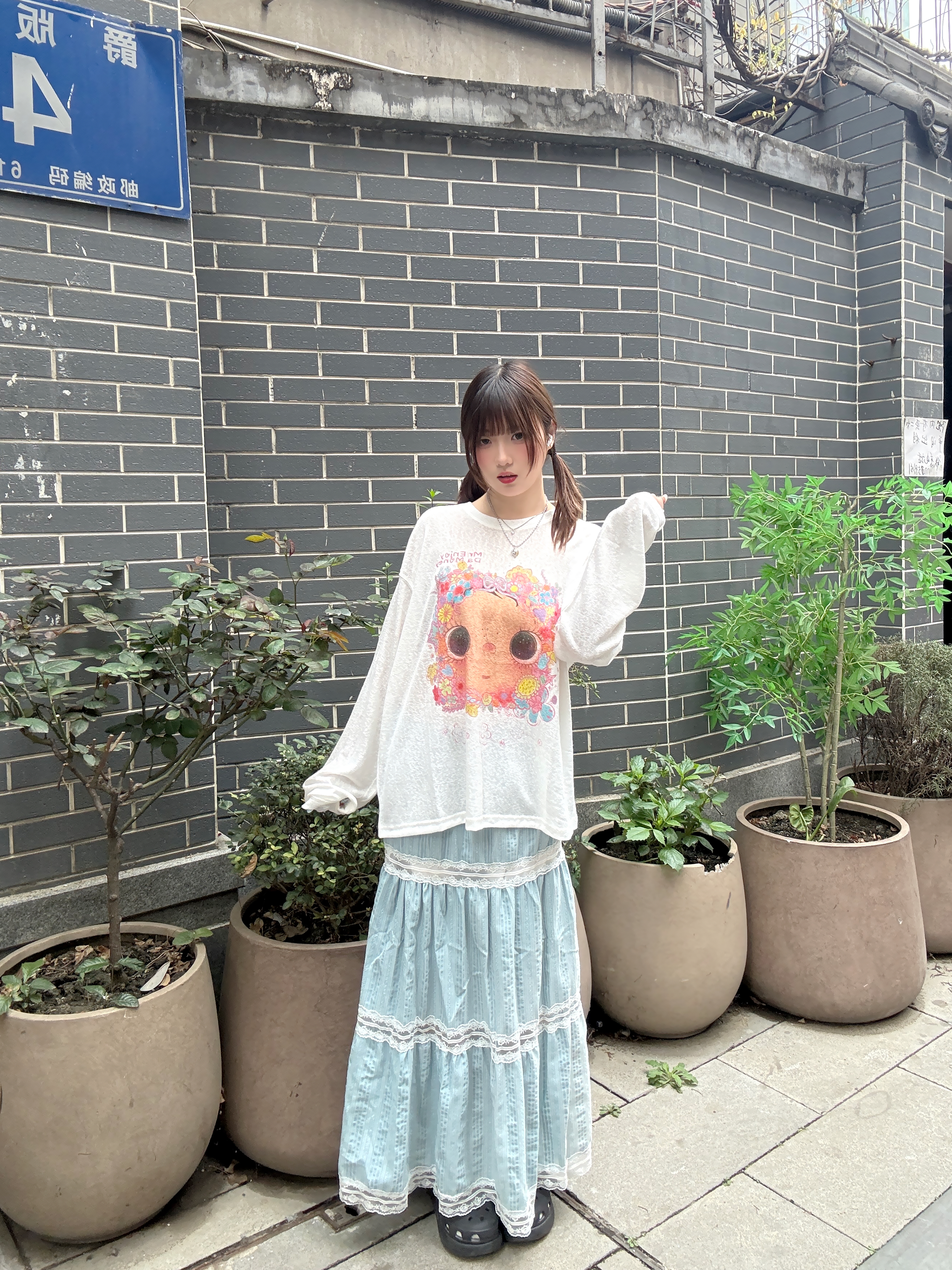 这波联名太爱了~ 今天穿玉儿白色罩衫+蓝色蕾丝镂空蛋糕裙+万能洞洞鞋¯﹃¯春天这样穿美而萌之