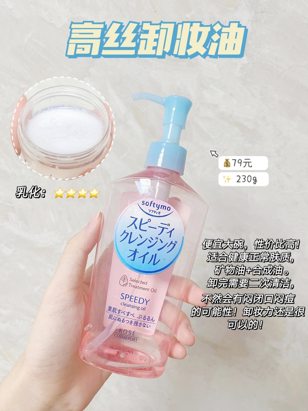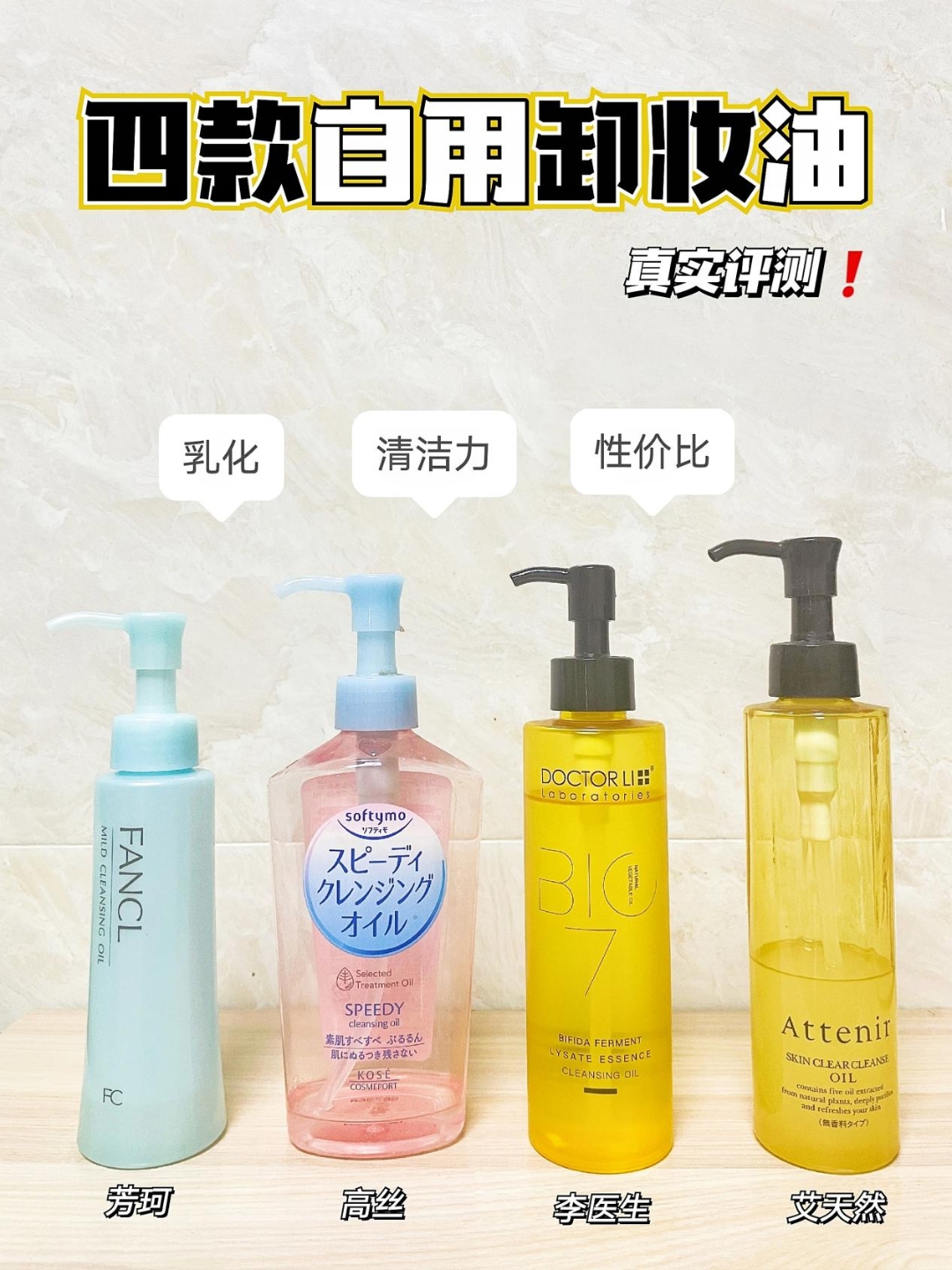 对于每天都化妆的我来说 卸妆油的选择非常重要 毕竟卸妆做好了才是好皮肤的基础呀~ 今天就来评测分享一下超级火四款自用卸妆油~ 1.芳珂卸妆油 口碑款了,主打养肤、温和卸妆,纯天然无添加,用起来会非常安心!敏感肌可以冲。虽然防水眼线笔卸得不是很干净,但是作为面部卸妆清洁度已经很不错了。因为没有添加防腐剂,打开之后2—3个月内要用完喔~ 2.高丝卸妆油 便宜大碗性价比一号选手,矿物油+合成油脂,是...