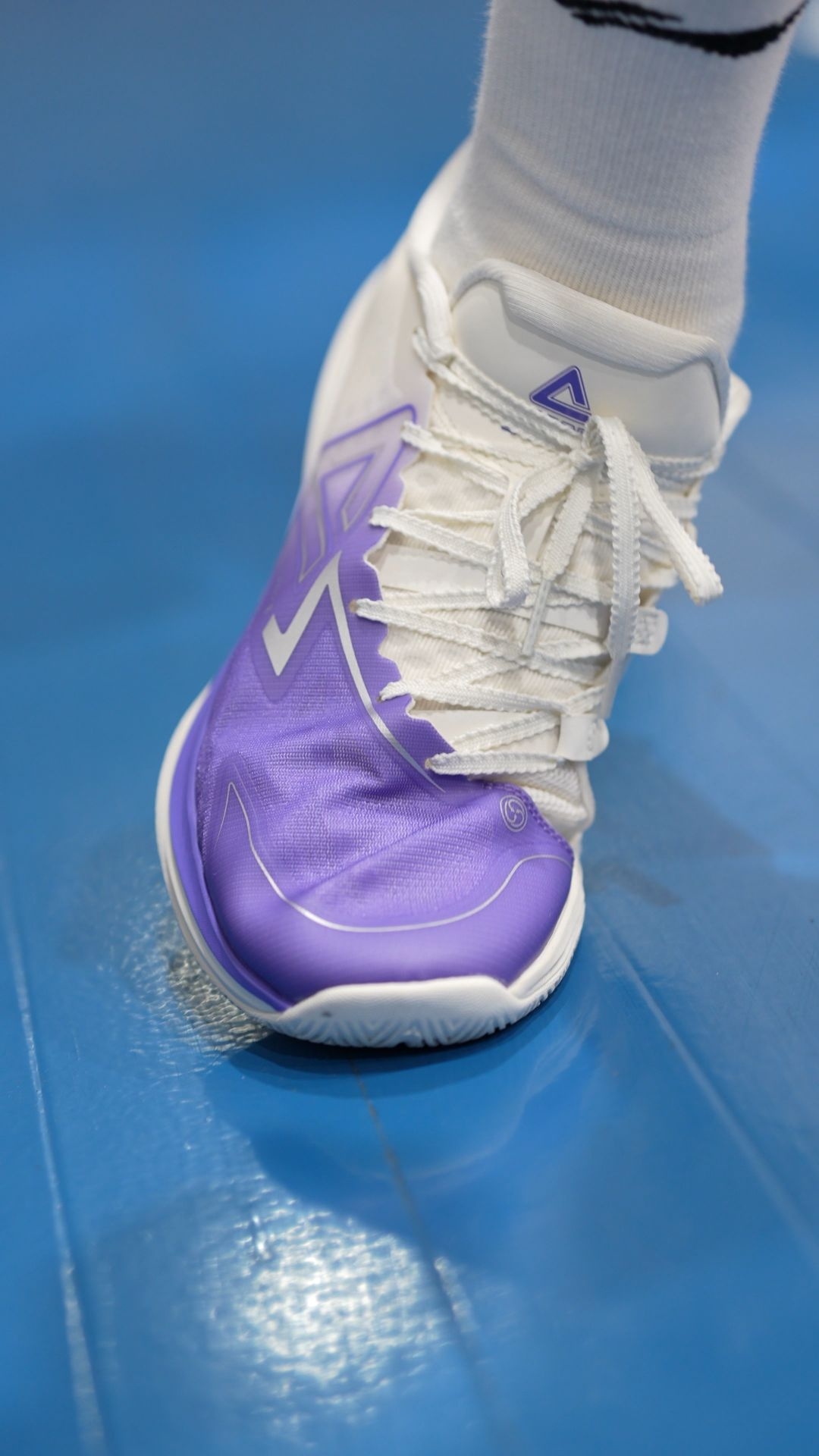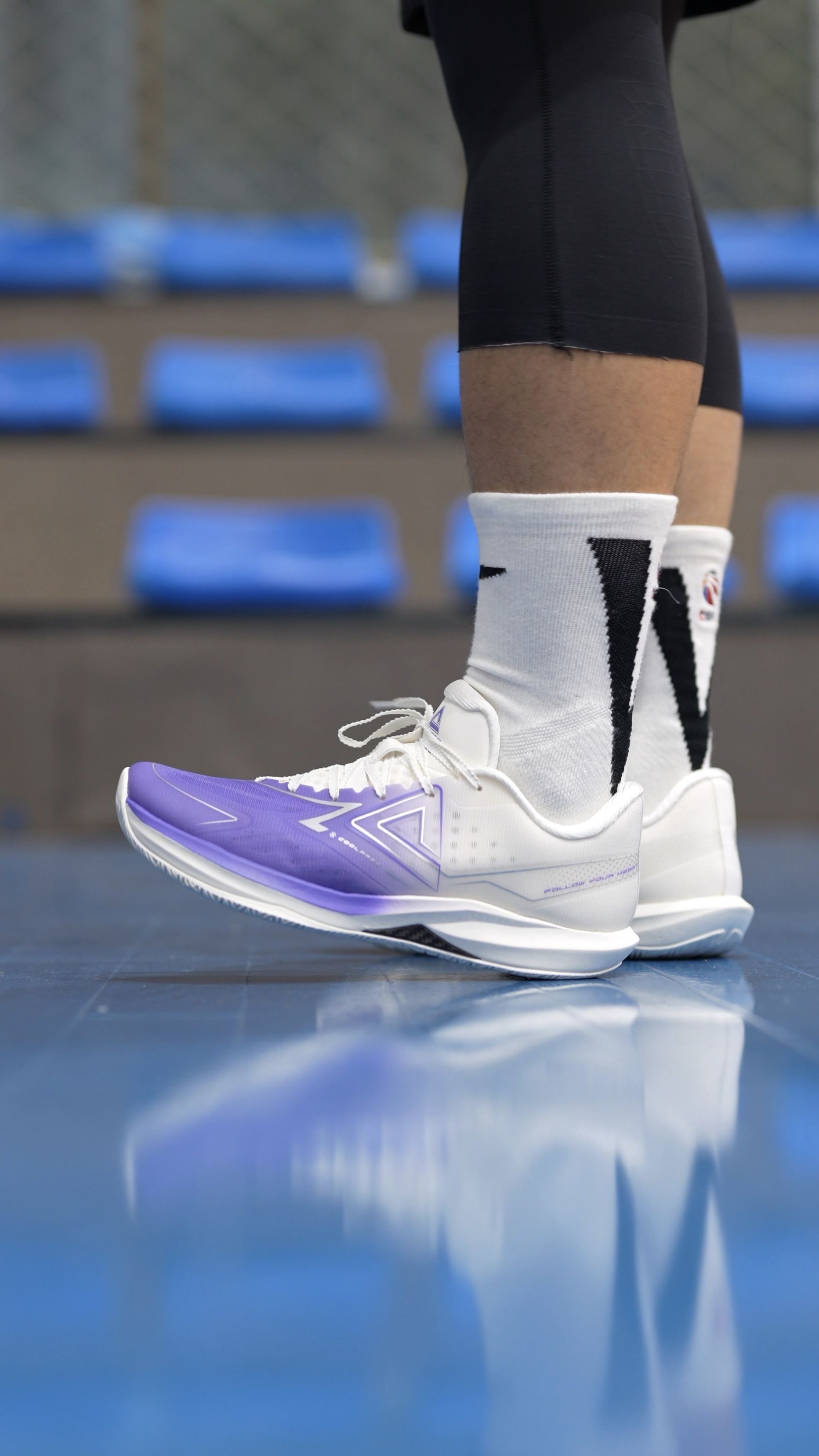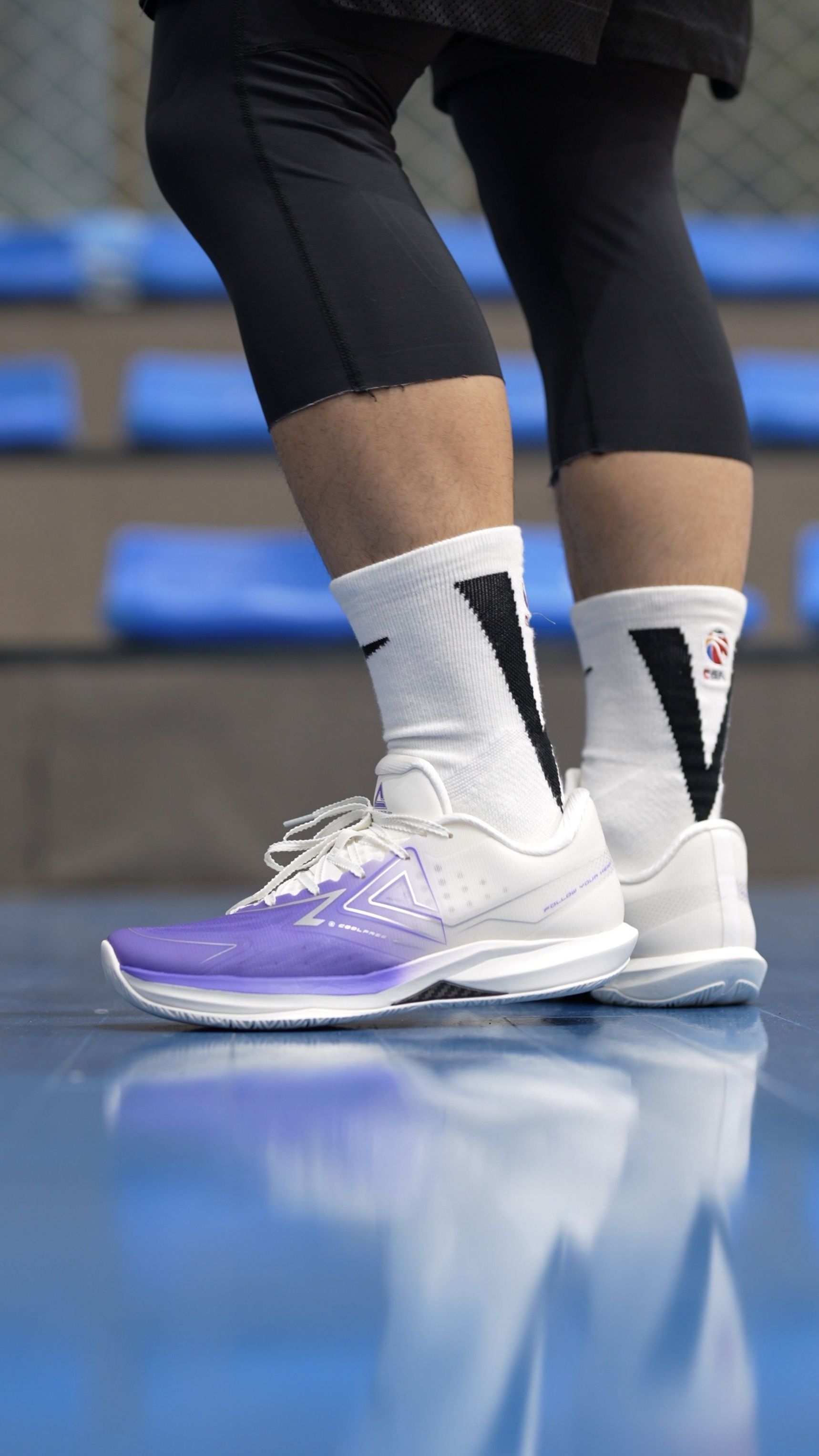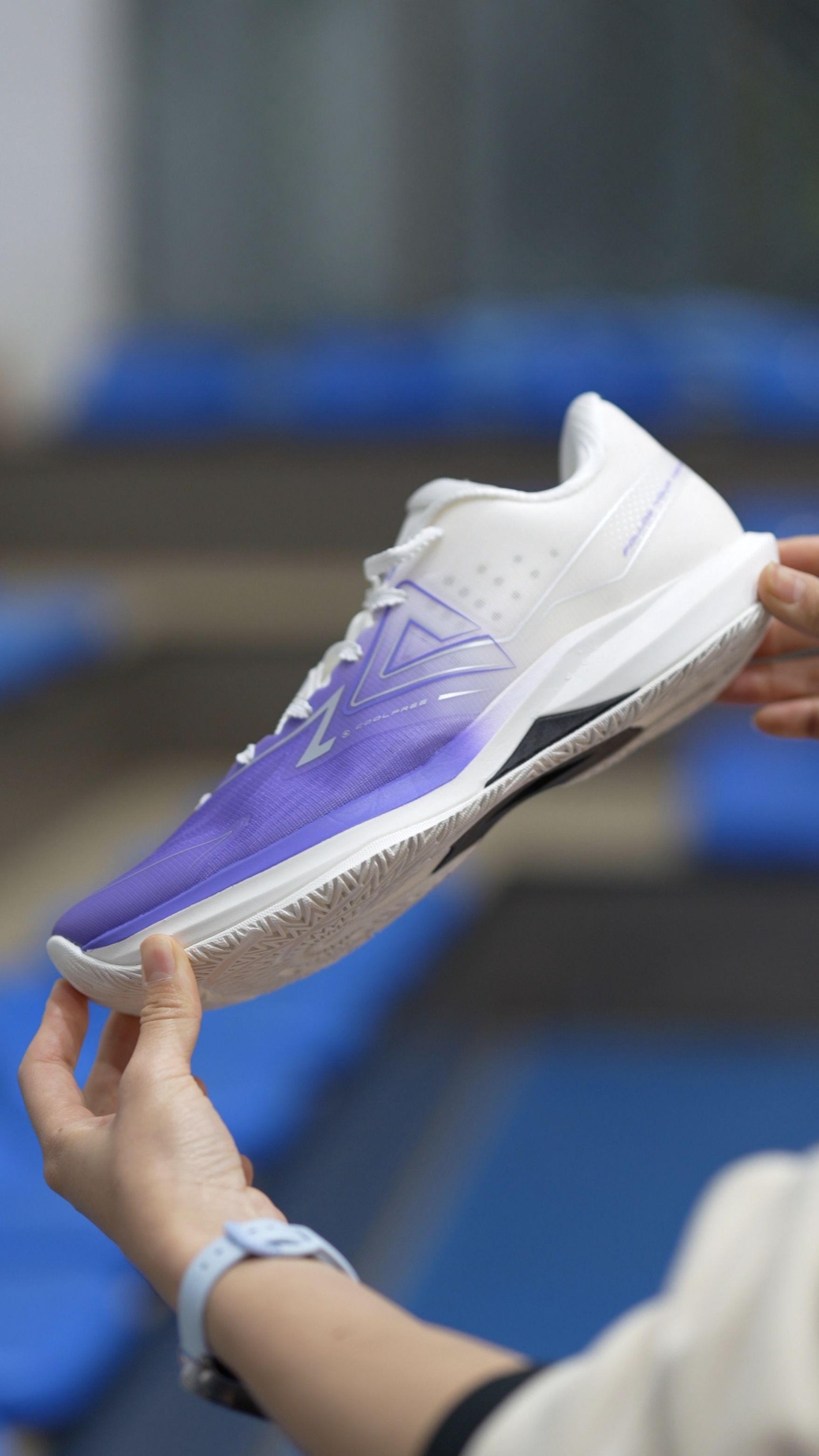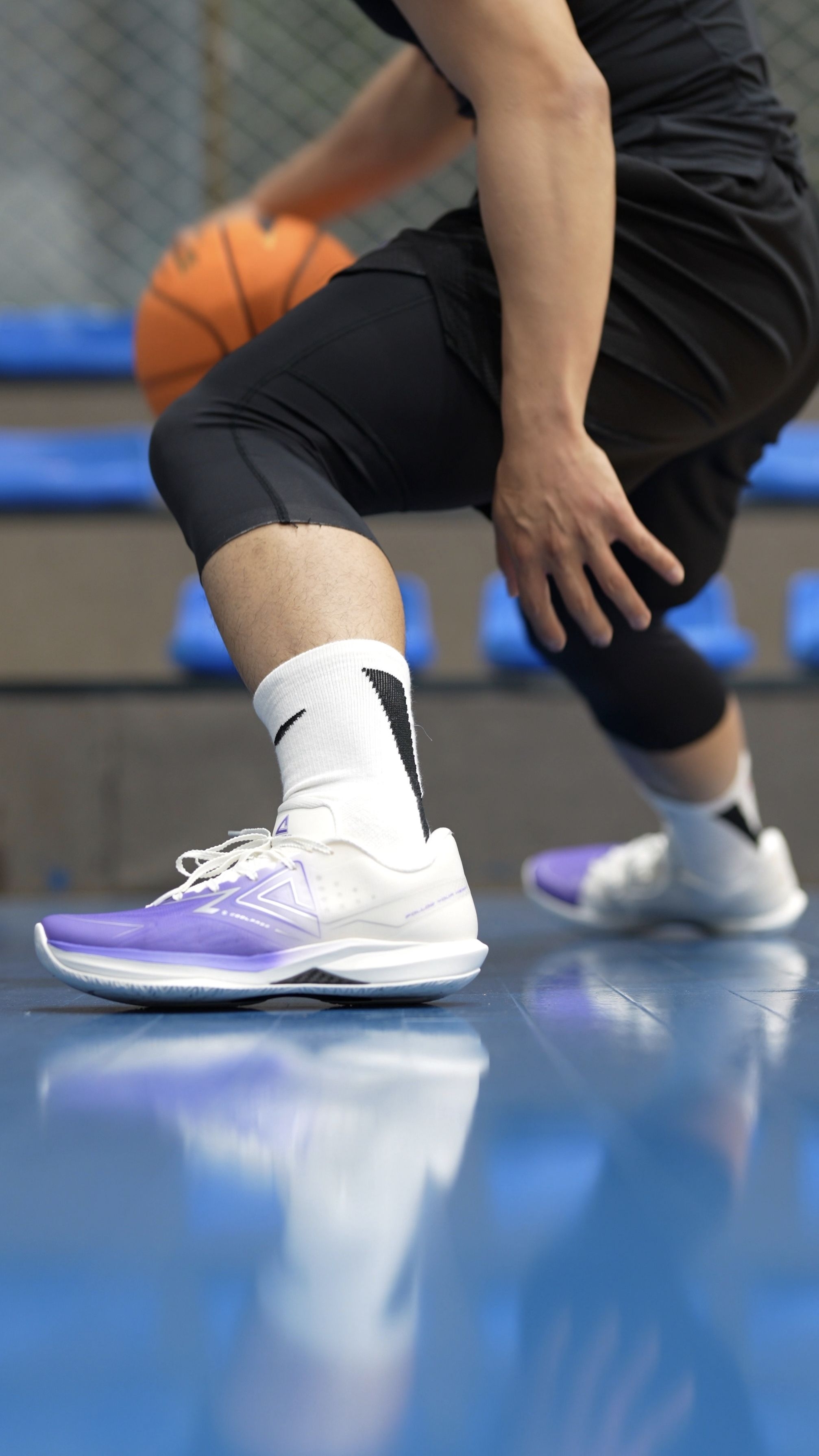 你们常穿的后卫球鞋是哪种类型呀?是不是既轻快又灵活,而且还要非常的贴地? 我脚下这双轻灵 4 代就挺不错的 而且它还是新配色觉醒紫,对比上一代 还有不少升级 。 不仅优化了鞋带绑缚系统,让穿脱更加方便,而且中底还内嵌了两块态极科技缓震上限会更高一些。