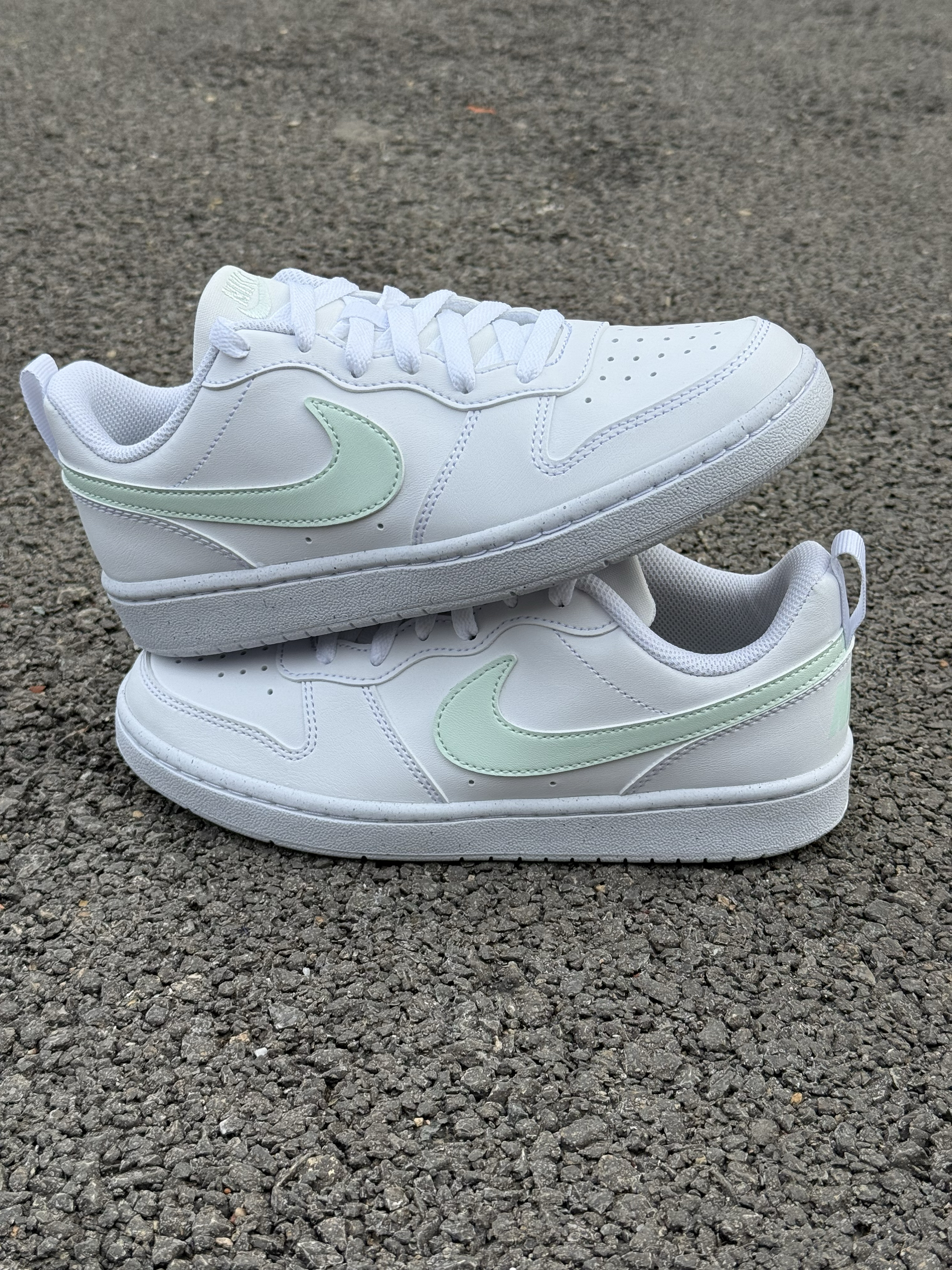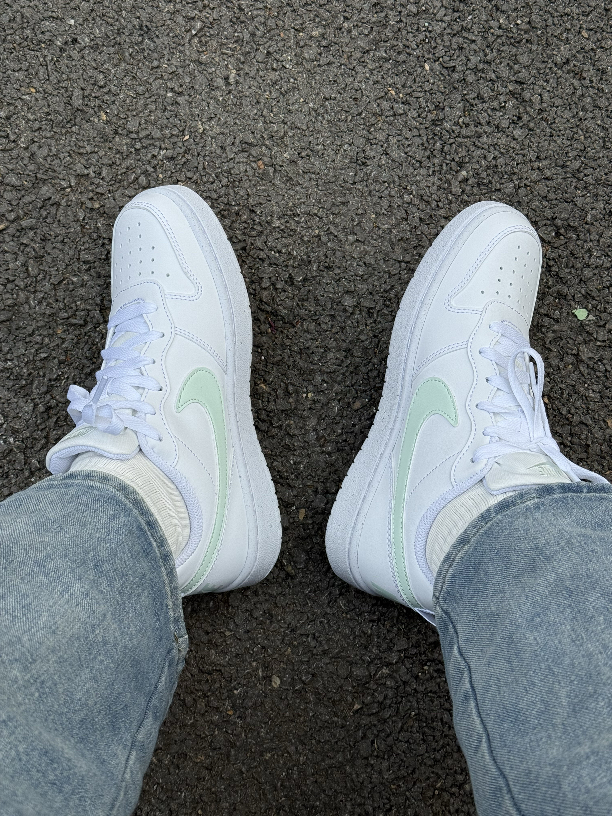 别再穿烂大街的纯白了! 来点不一样的清新感~ Nike白绿板鞋, 清爽配色打破沉闷, 小白鞋的基础,又多了一丝少女的灵动, 上脚就是那种很松弛的好看, 舒服到不想脱下来, 这双神仙鞋子,真的可以冲!