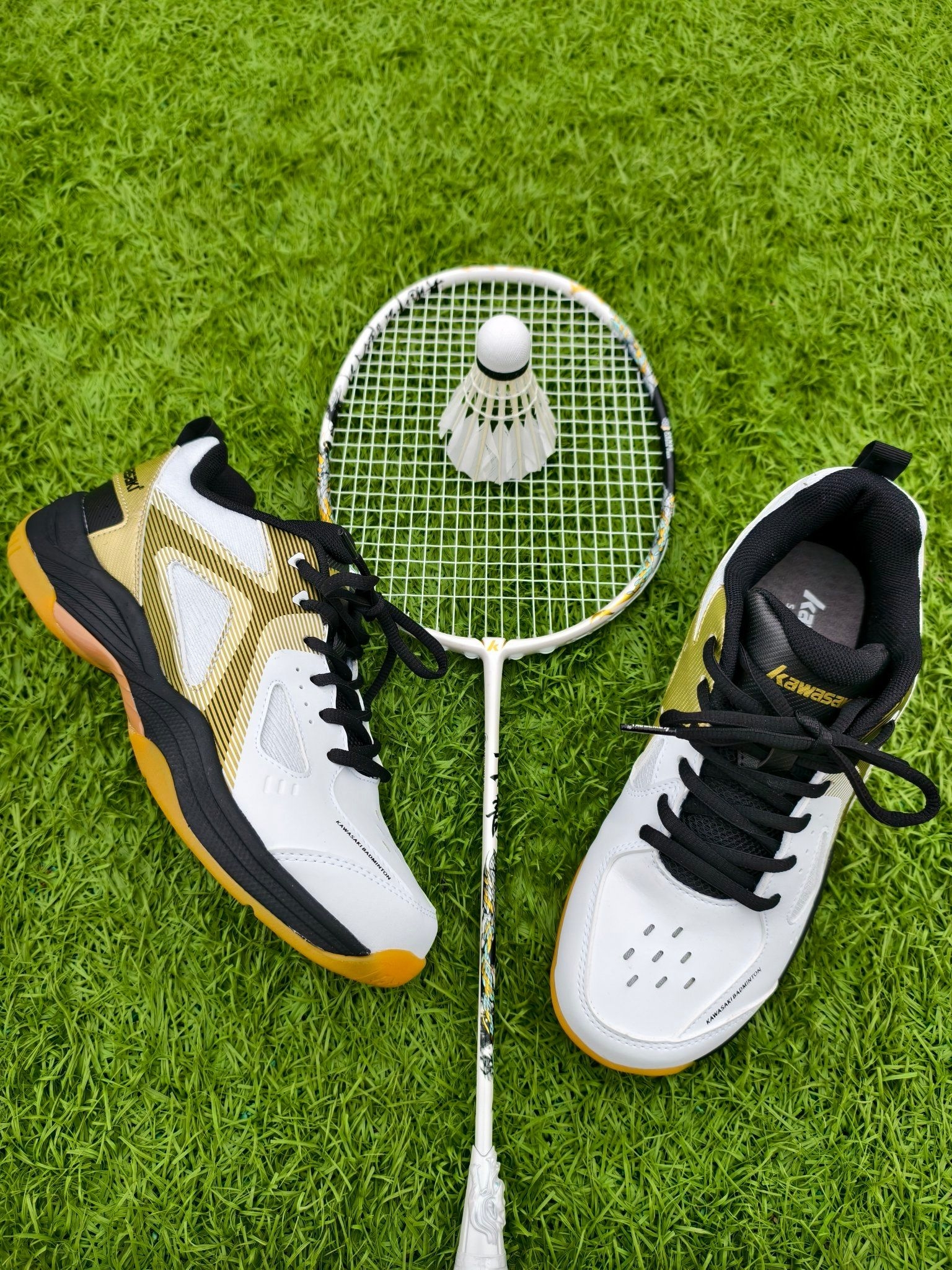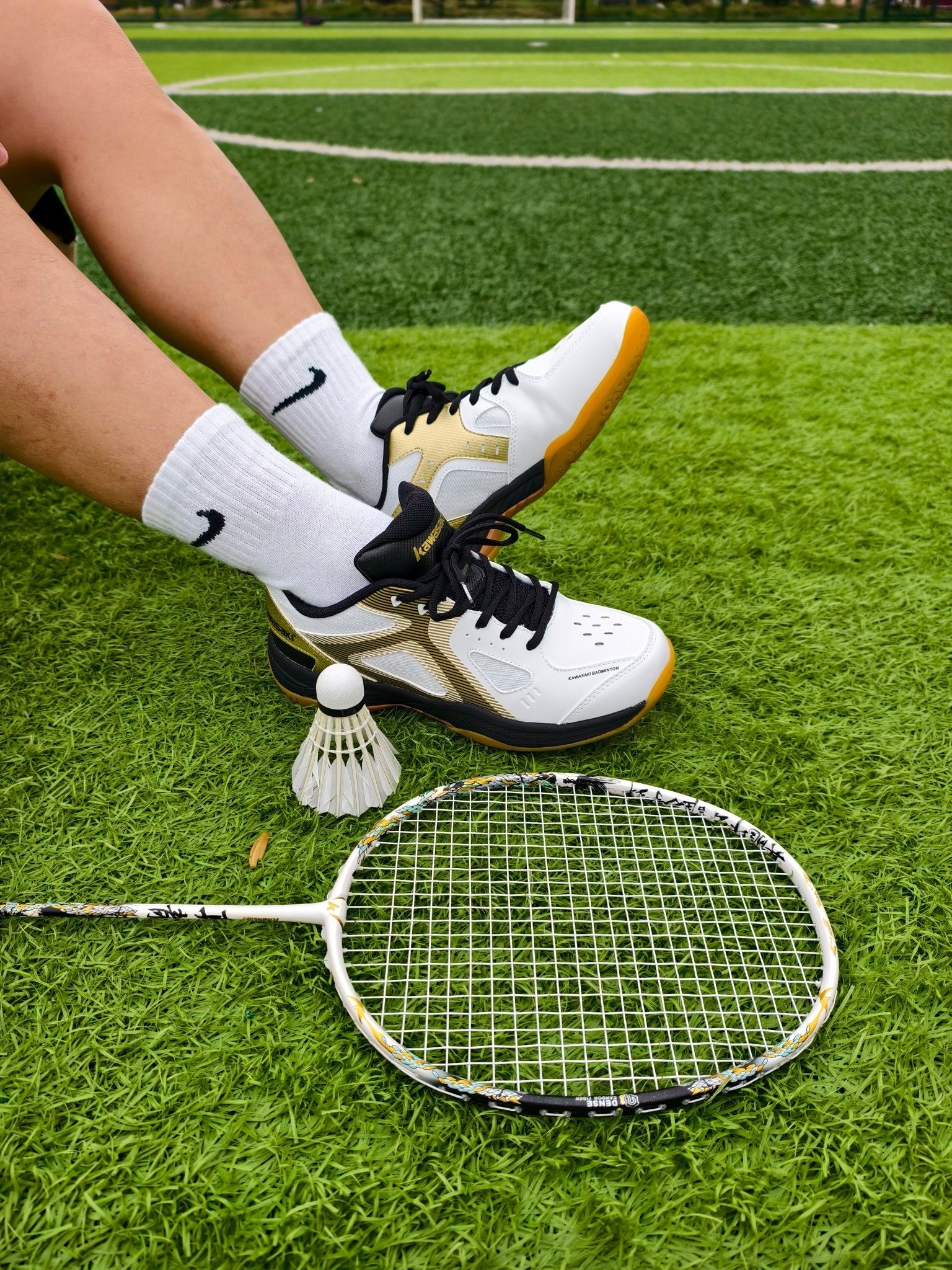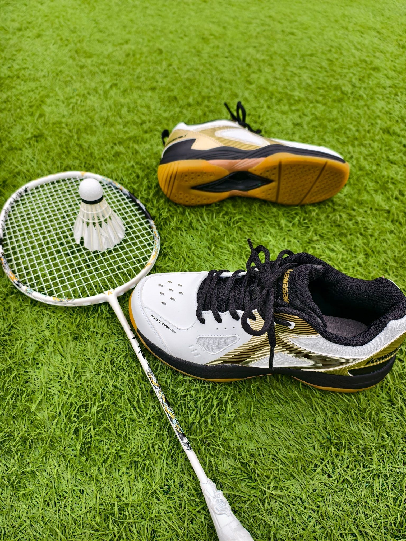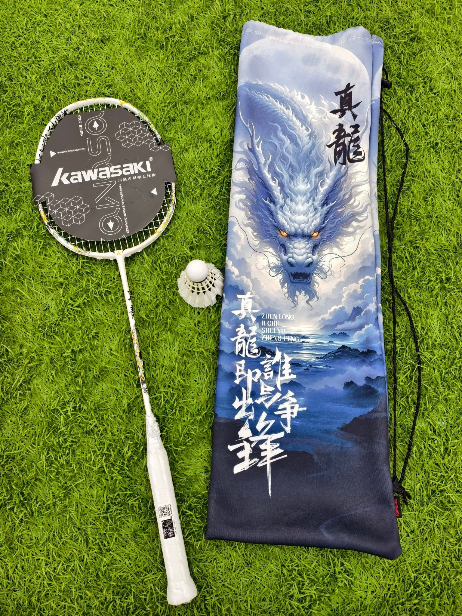 🏸春日打羽毛球的快乐,被这套装备承包了❗❗🌿春天,真的太适合去球场撒欢啦~ 当然也特别适合打羽毛球了 所以入手了这套川崎的装备 川崎疾风的球鞋+川崎真龙的球拍 完美的组合,满满的快乐! 🐉这个球拍完全长在审美上, 白蓝鎏金配色超有质感, 拍框上的龙纹细节拉满, 底盖还是立体龙首造型, 拿在手里感觉自己气场都变强了! 送的拍袋也超帅,蓝白龙纹设计, 背上球场回头率直接拉满。 👟球鞋白黑金配色太百...