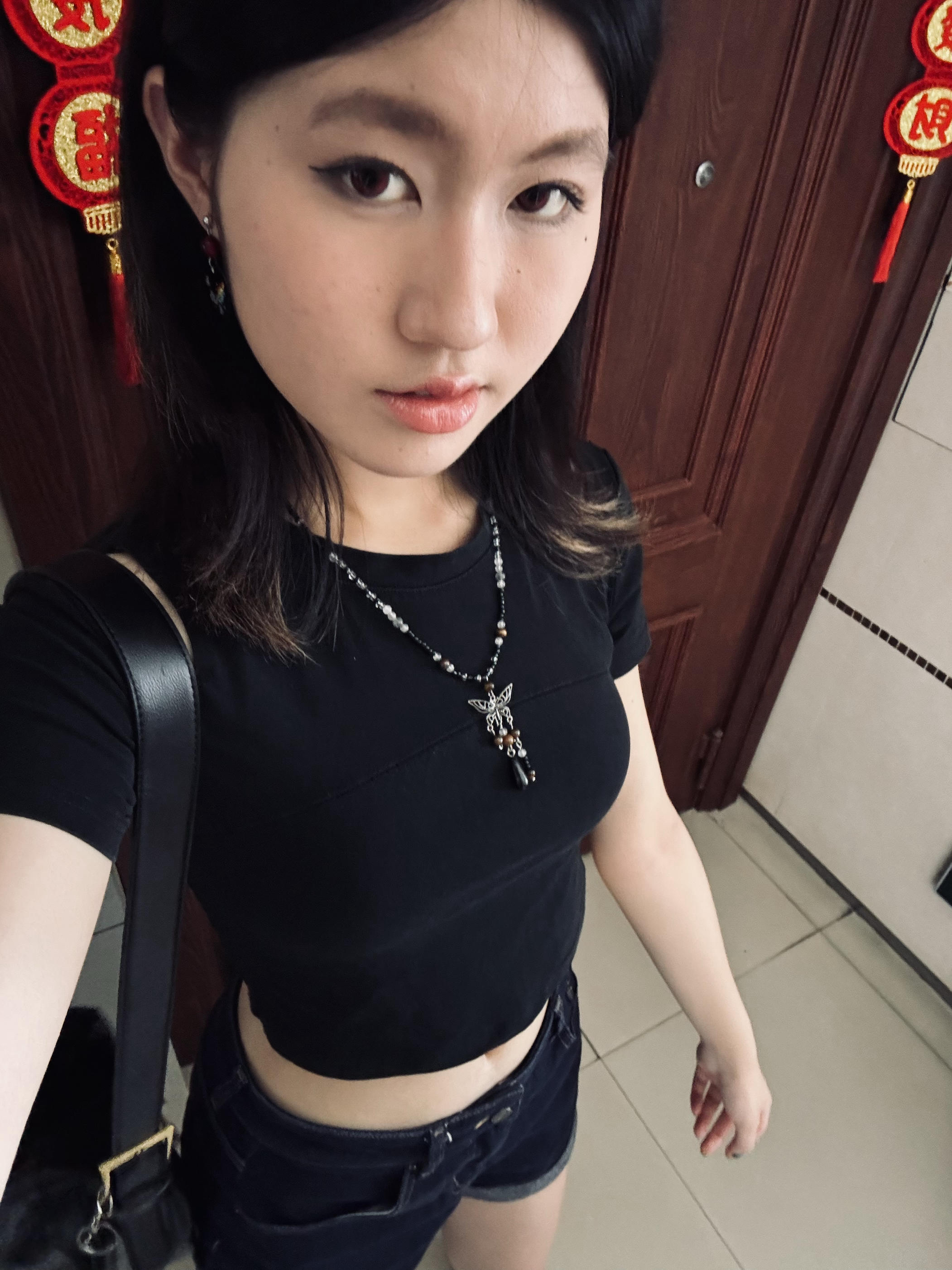 这件黑色短袖是我的心头爱 173/55 纯棉布料弹性很足不卡身材 百搭,搭配各种裤子都可以 唯一的不足可能就是露肚子容易着凉