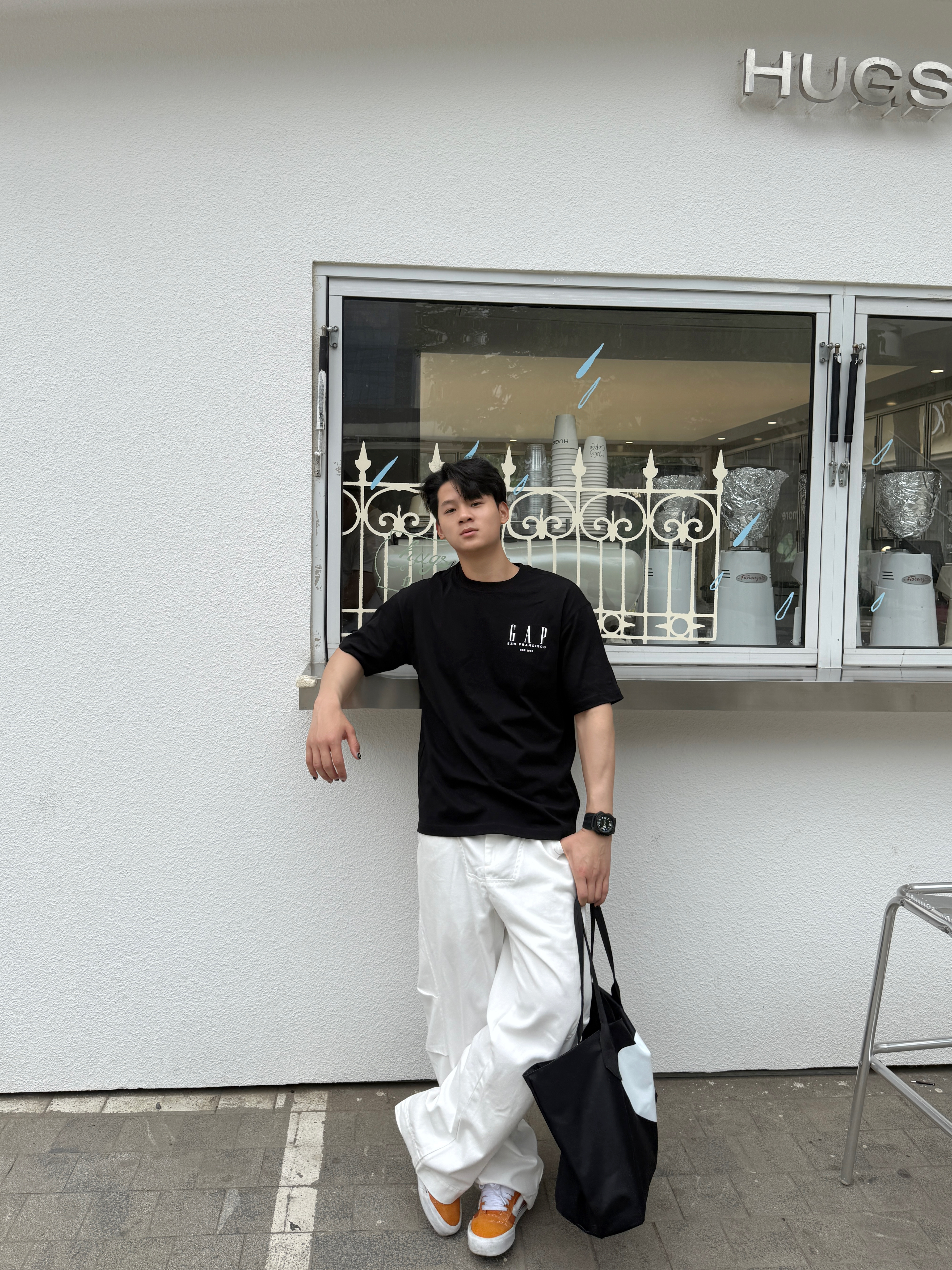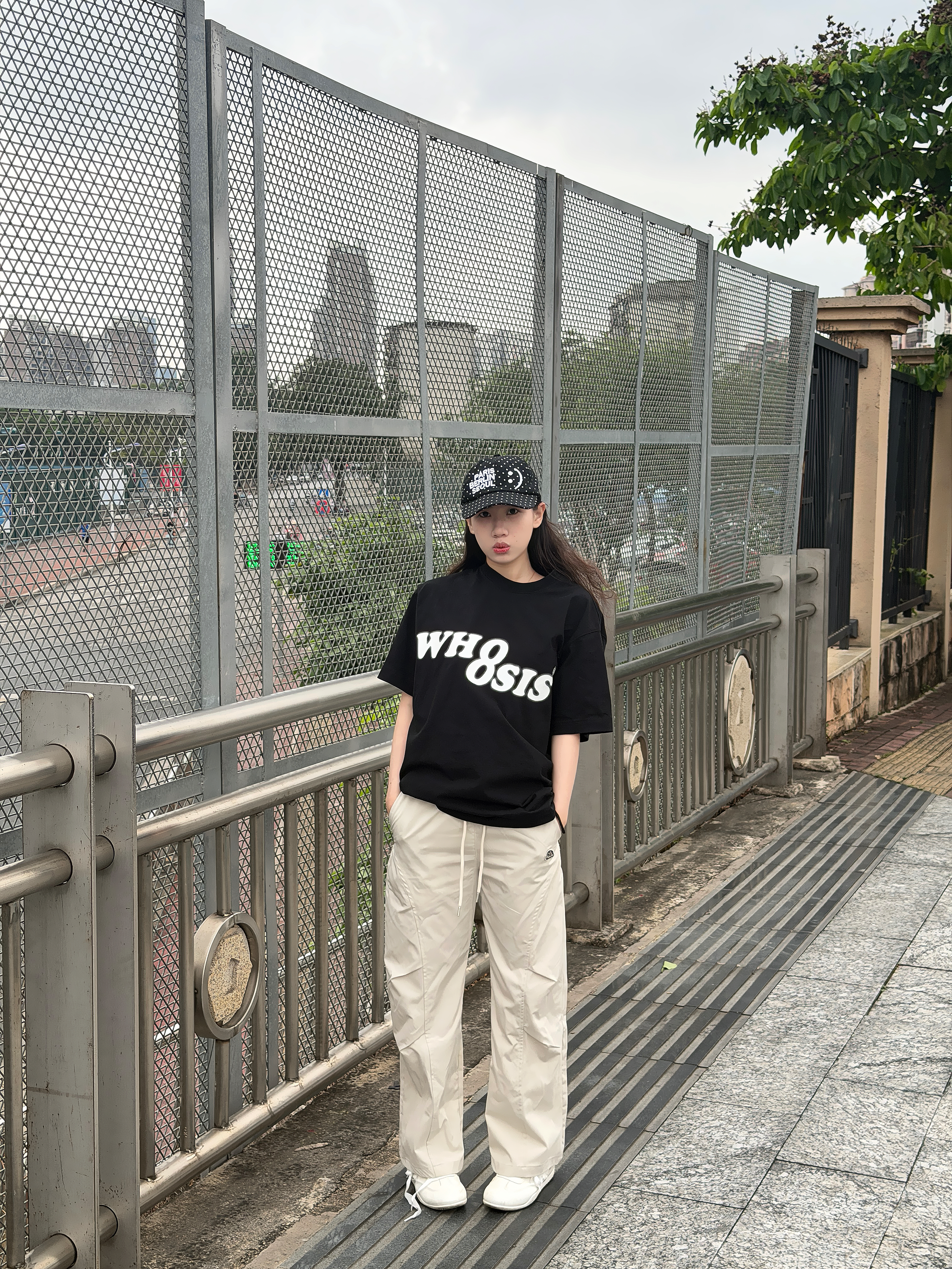 灰蓝拼接短袖软fufu巨透气,完全不闷汗!宝蓝色阔腿裤直接把腿拉到两米,宽松版型跑跳零束缚。再配上红白运动鞋和帽子,整套美式街头感拉满,练完直接炸街,谁看了不说一句潮!
