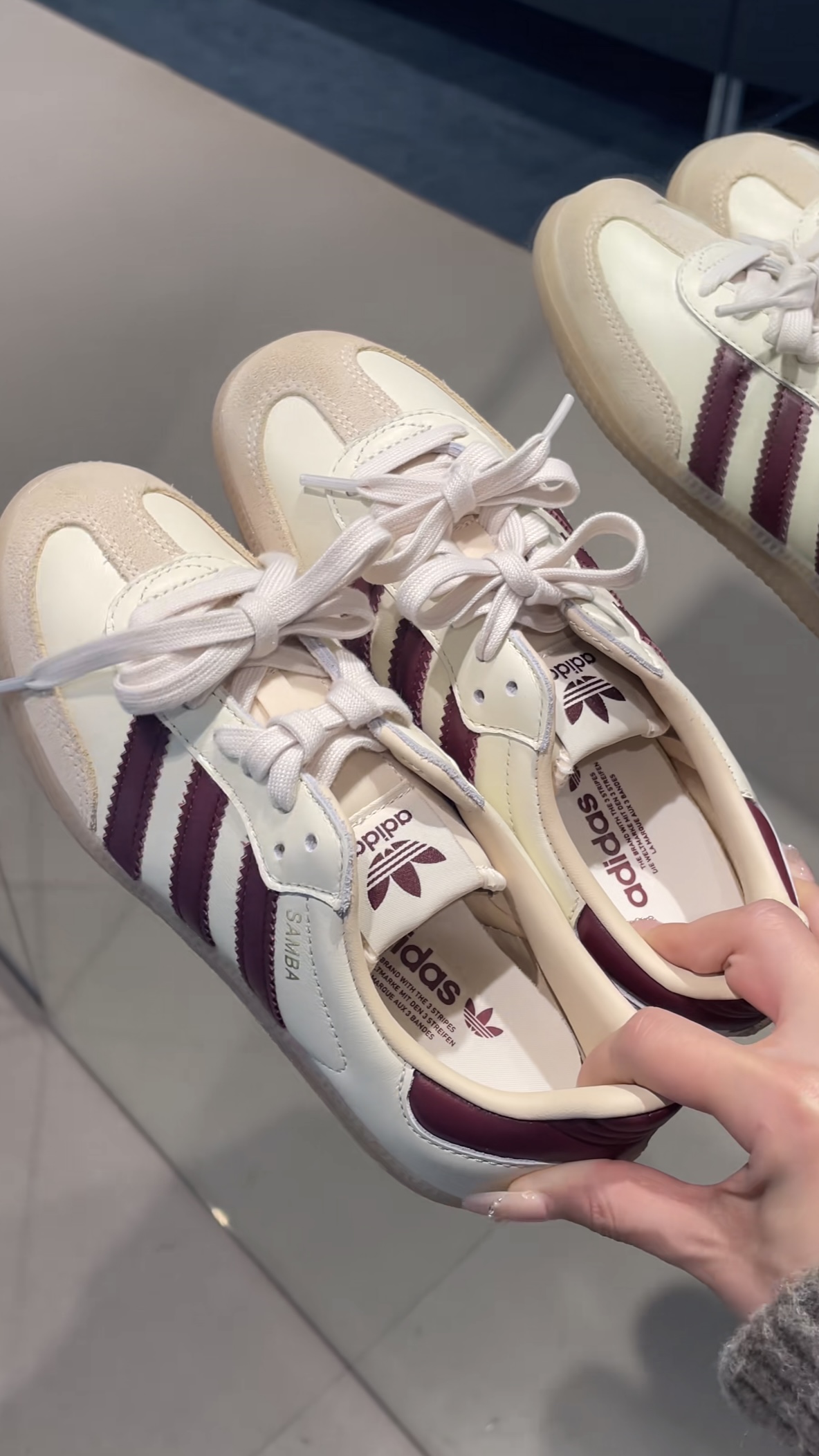 刚入手这双阿迪达斯三叶草 Samba OG,真的被它的配色惊艳到!米白色鞋身搭配酒红色三道杠和后跟,复古又温柔,完全不会沉闷。上脚后发现,它的鞋型真的太修脚了,微微收窄的楦型显脚小,搭配牛仔裤、工装裤、短裙都毫无压力,妥妥的“穿搭放大器”。 而且它不只是好看,还特别好穿!鞋底软弹适中,走路不累脚,日常通勤、逛街、甚至去健身房都能穿。重点是这双鞋越旧越有味道,做旧感反而更高级,属于那种“穿十年都不会...
