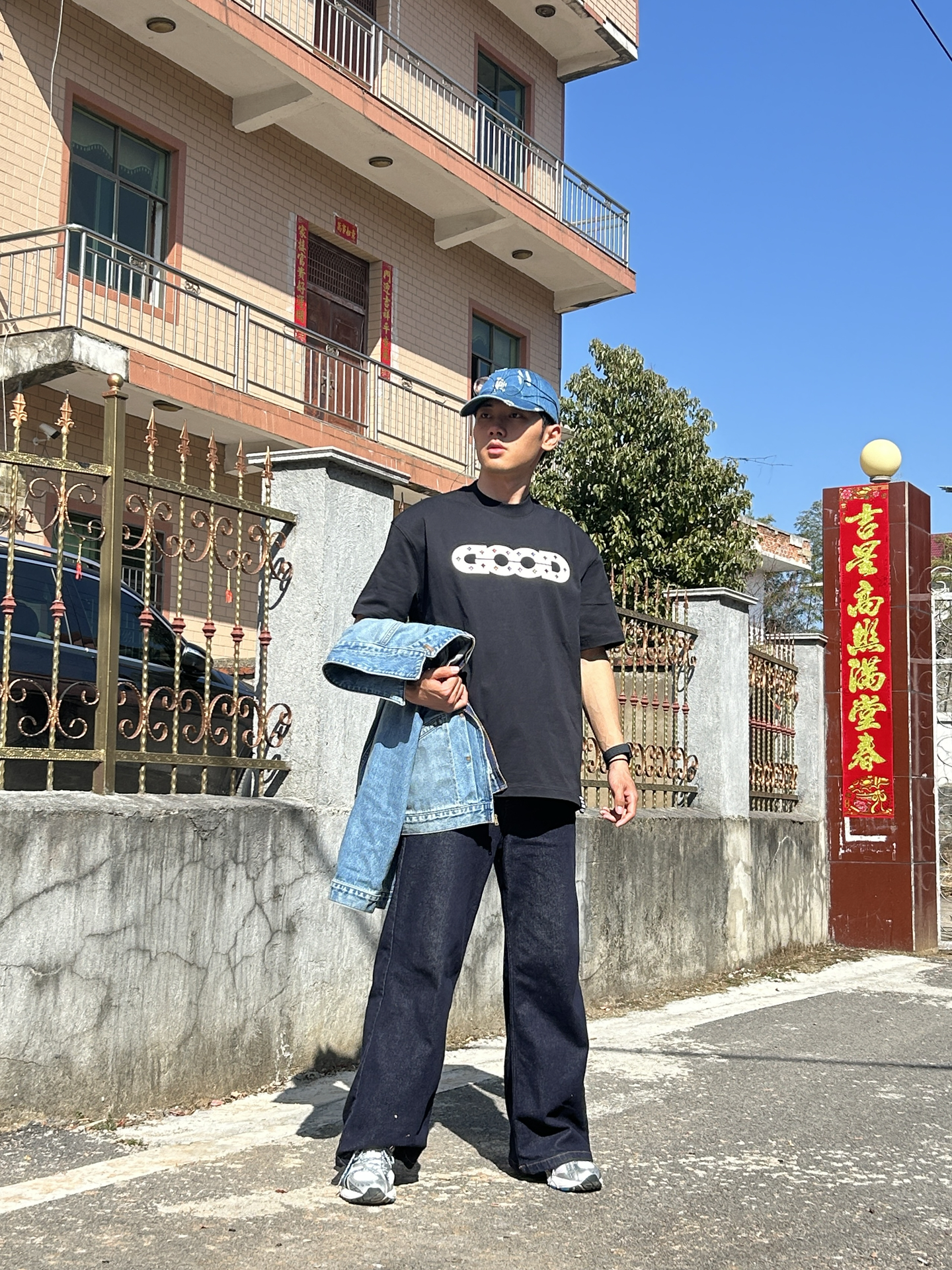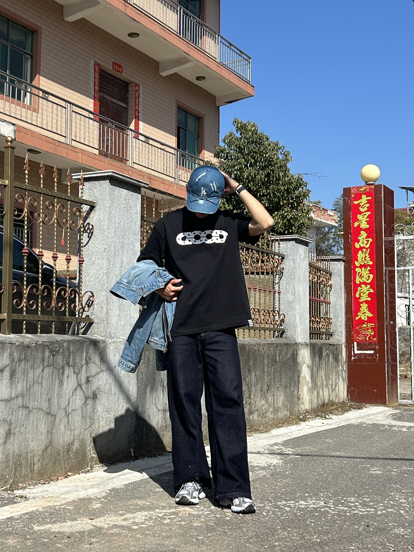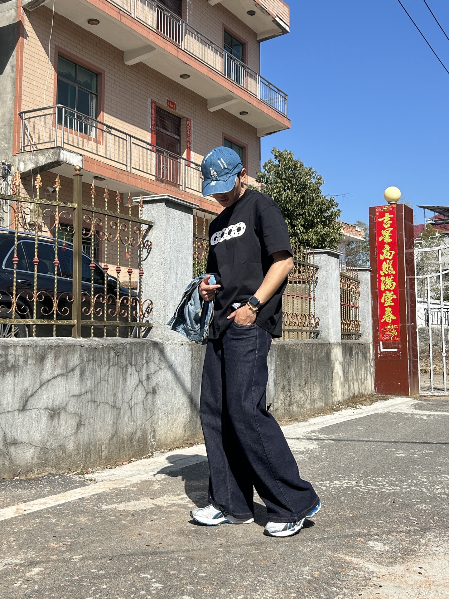 🧢 mlb 👕 goodbrand 👖 levis 👟 asics 今天出门的ootd 黑色亮钻的T恤简约不简单 搭配一条直筒藏青的牛仔裤 很好修饰腿型 脚上是复古的y2k复古慢跑鞋 再来一顶蓝色牛仔帽点亮一下 拿上一件外套就出门去!