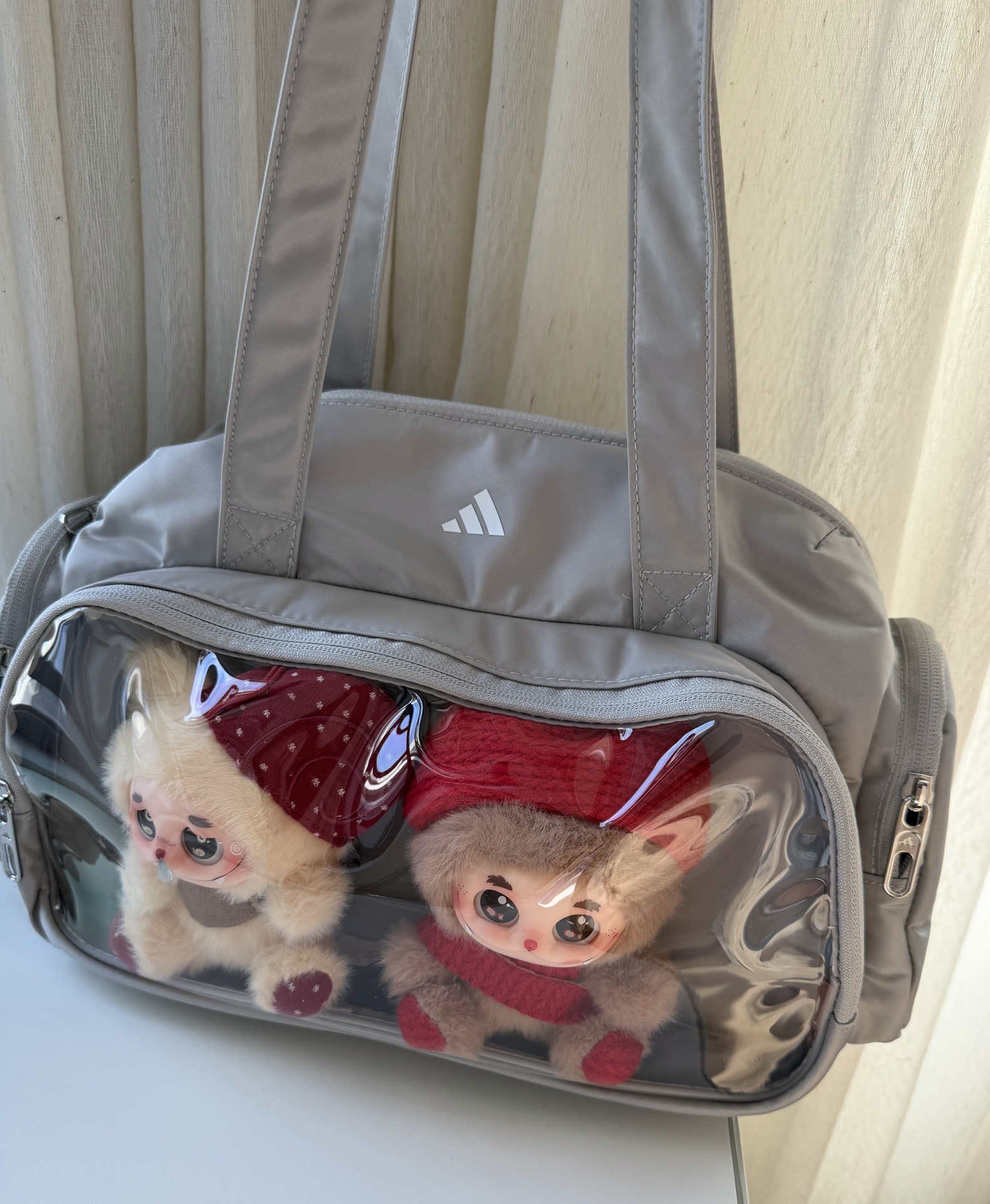 最近挖到的灰包包太懂我了🥹!透明层塞两只小玩偶刚好,回头率超高~内里容量够大,放平板加一堆零碎都没问题,还有小口袋能放钥匙口红,出门超省心!就是背带有点滑,自己加个防滑垫就完美啦🤓,学生党和娃妈都能冲!