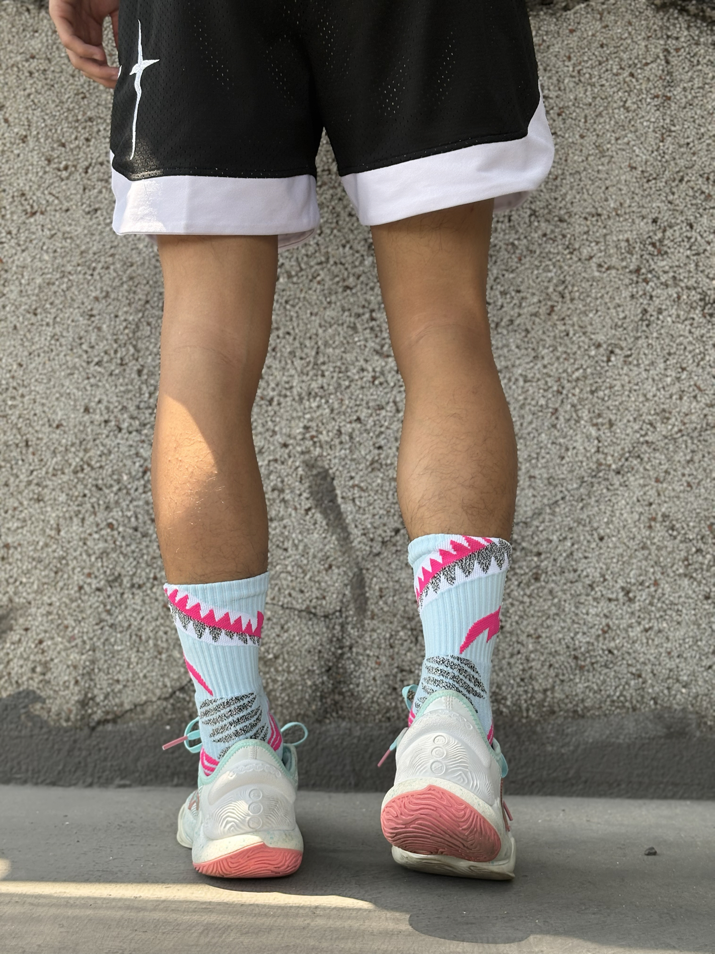 hello,这里是老铁,今天给大家分享这款 VEIDOORN 狂鲨篮球袜🧦 篮球袜的颜值非常高,设计的也很新奇 鲨鱼🦈的设计,给人一种霸气的感觉 袜子🧦的材质也很厚实 穿起来很舒服 而且袜口处的包裹也很不错 性价比很高