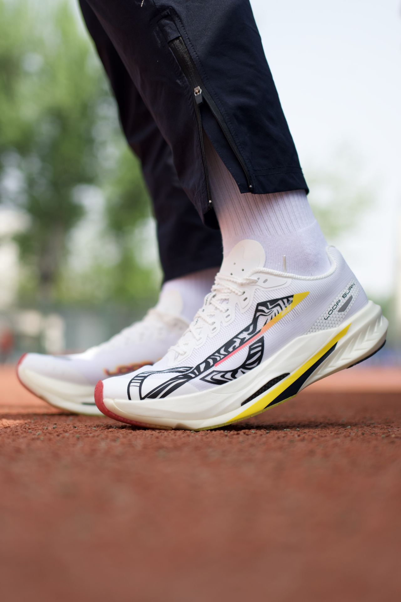 那状元5pro这鞋看外观可能觉得是中长跑专用,比如800-3000米,但其实上脚的全掌重心并不高啊! 他有点“前低后高”的感觉,很像踩在起跑器上[狗头_blue] 100-400米其实也能穿!不过大家要注意,这鞋到手需要花时间去踩开,踩开后会弹的更多一些[机智_blue]