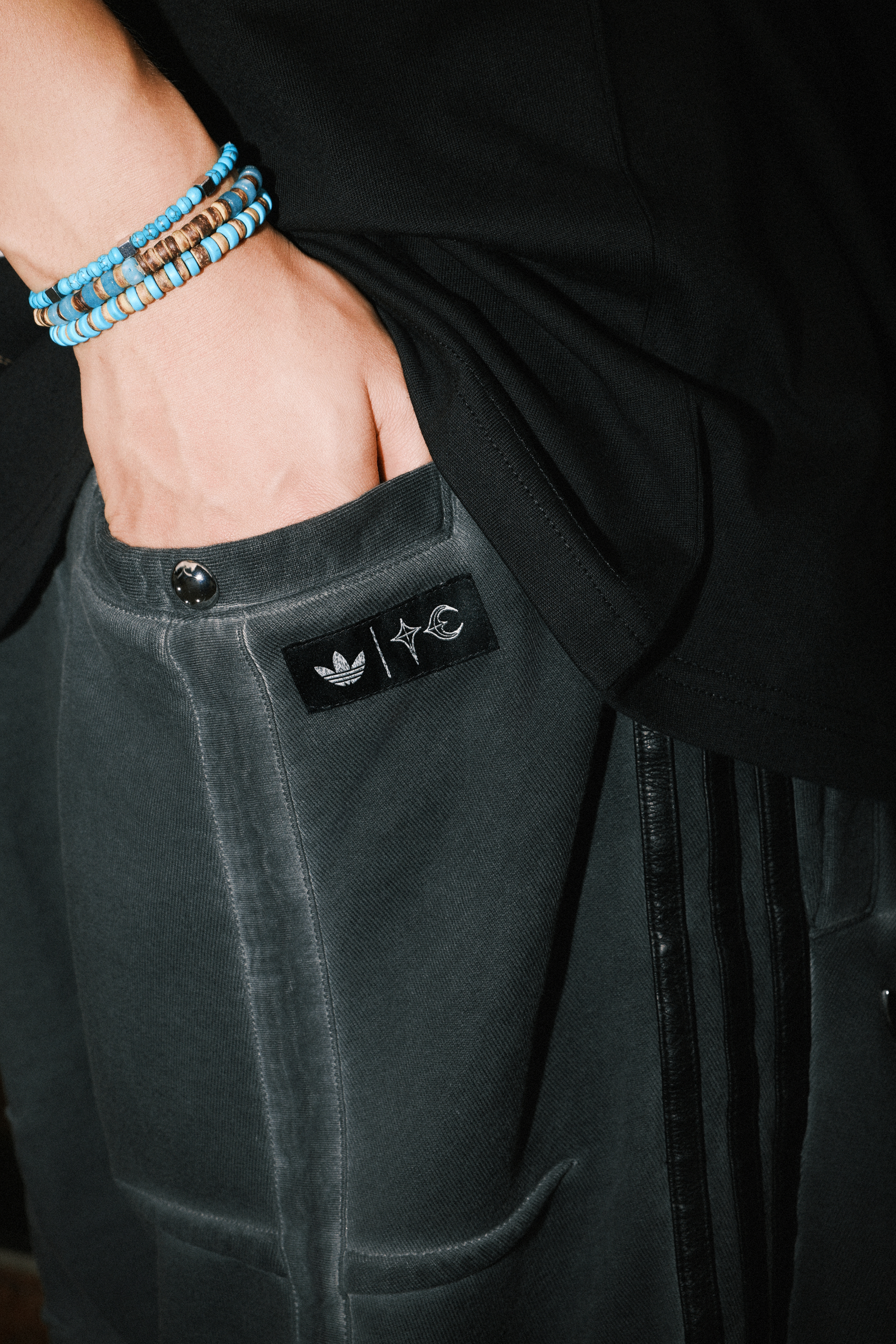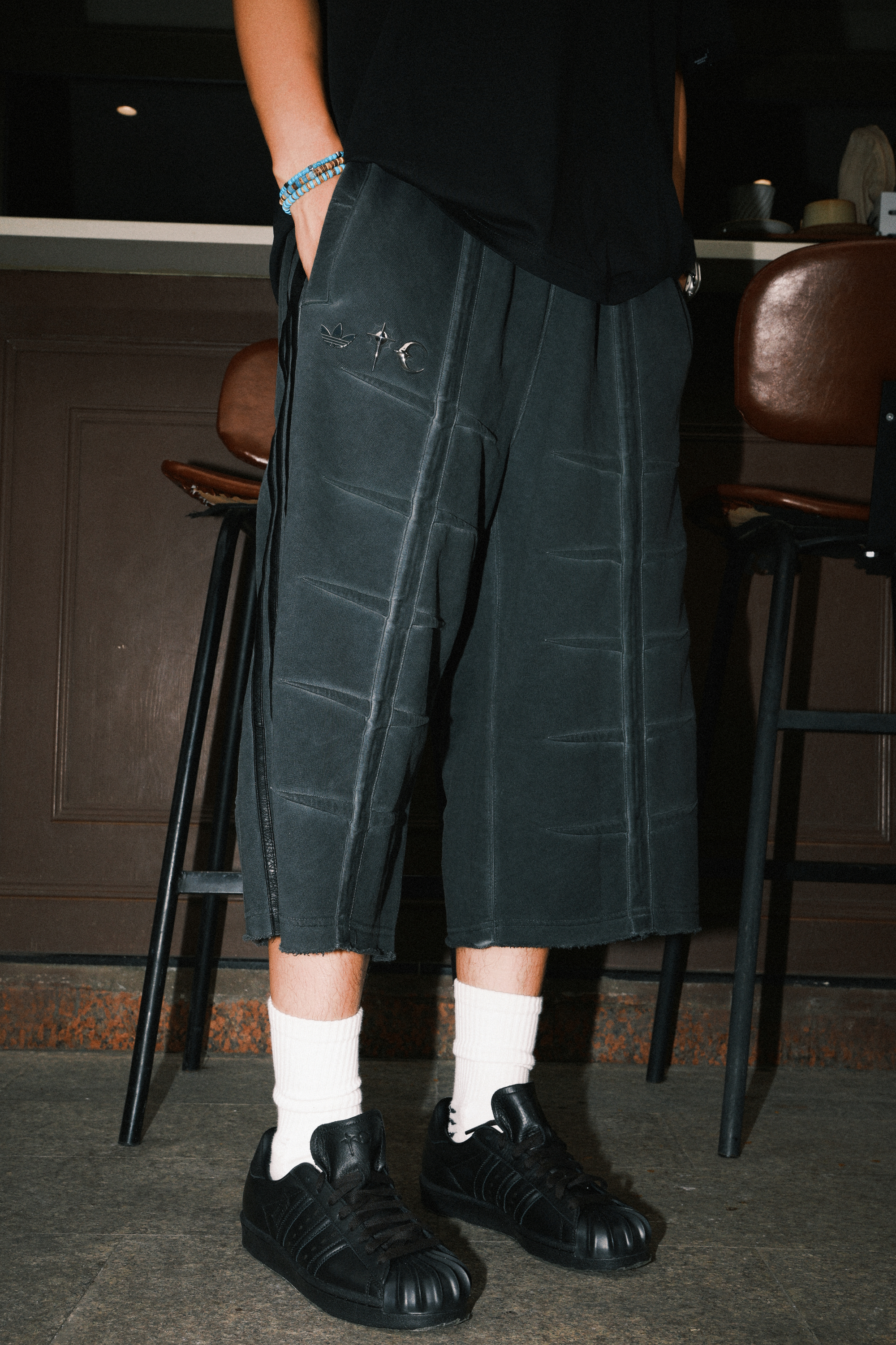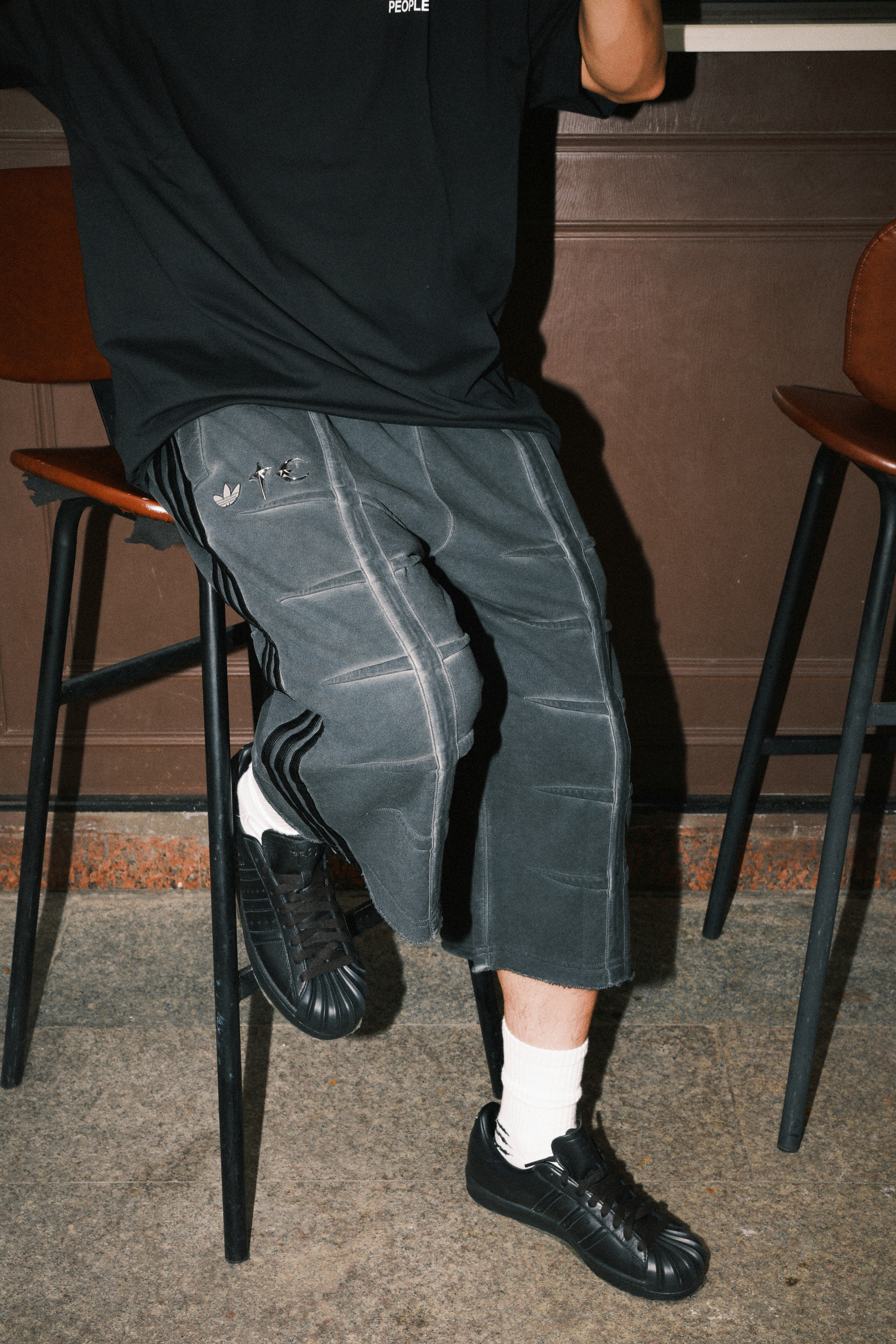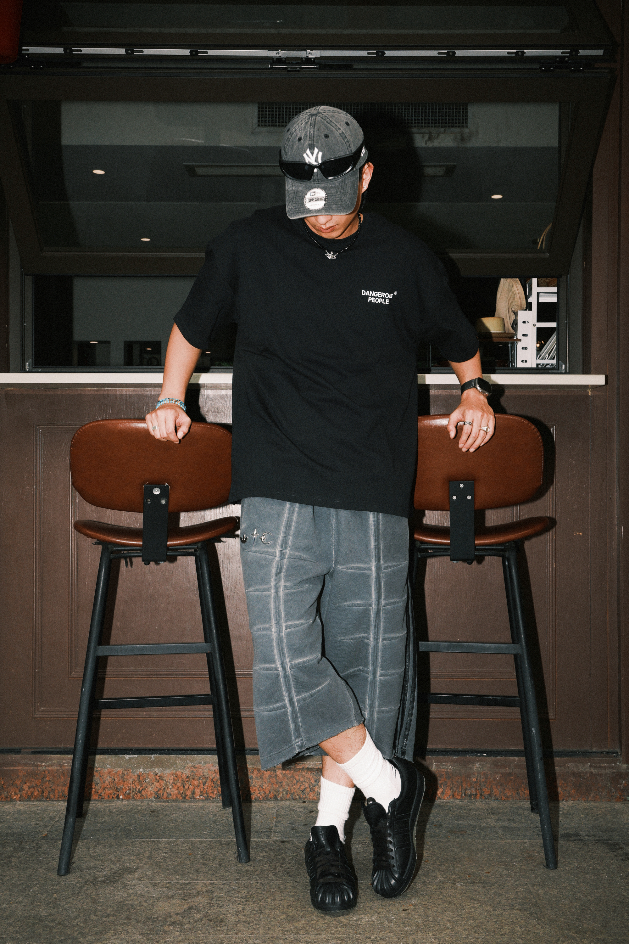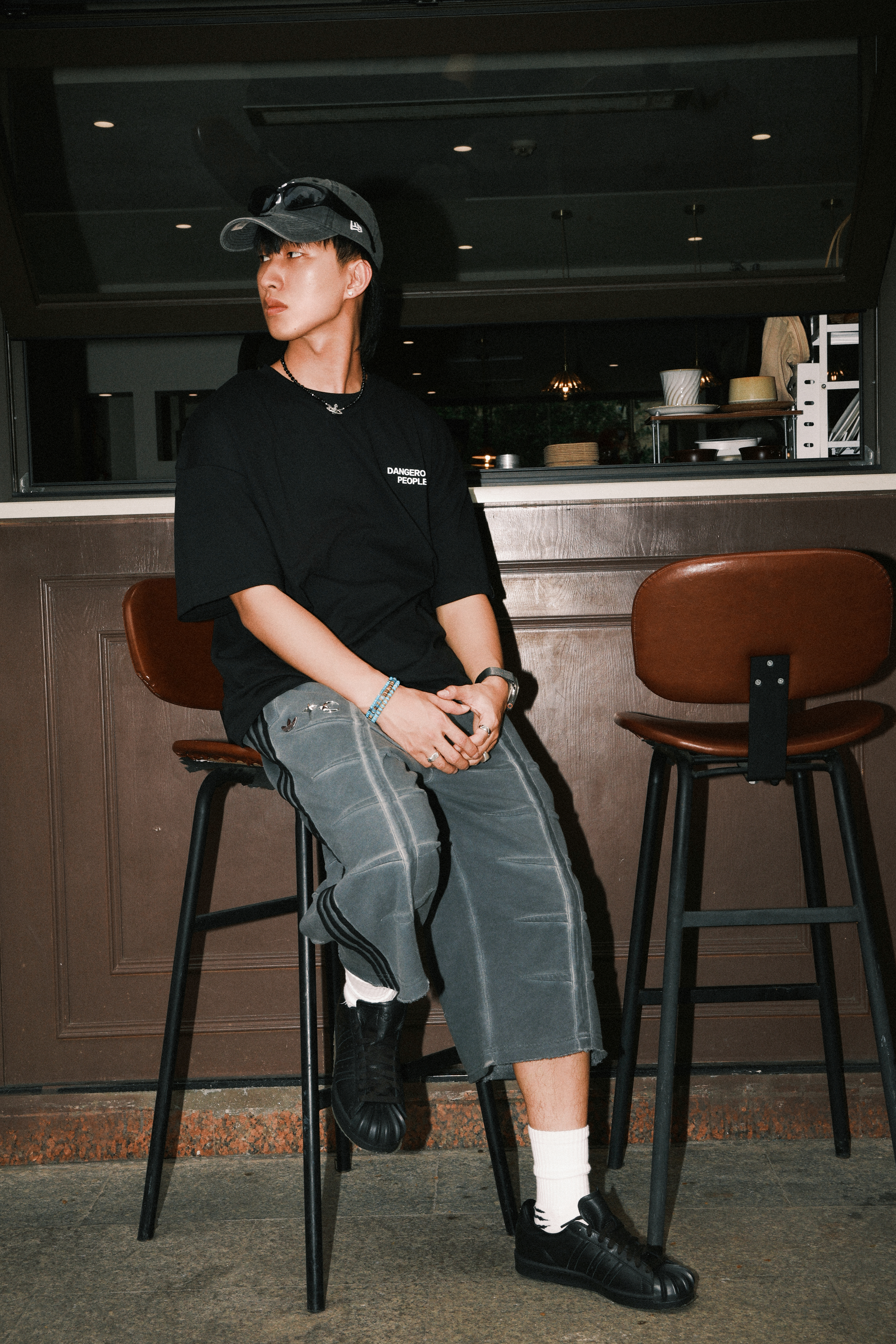 Yo wassup🤞🏻 这里是希望世界和平的Ga🕊️ 这套先看脚下,adidas originals x THUG CLUB SUPERSTAR很顶,黑色贝壳头一上脚就有街舞味。鞋码正常选,我穿44;高脚背、宽脚建议大一码。 下半身搭adidas originals x THUG CLUB条纹宽松七分裤,线条更利落。上身配DSP泼墨字母T,178/72kg穿L,整套很有校园社长感。