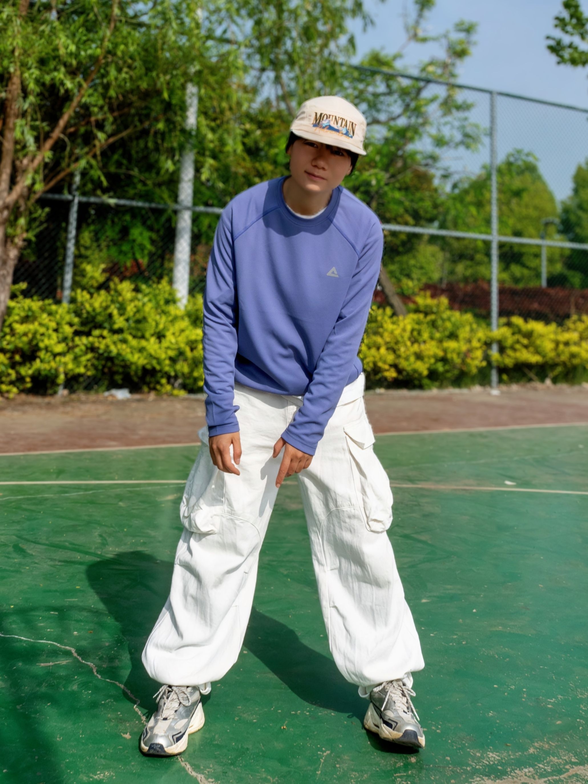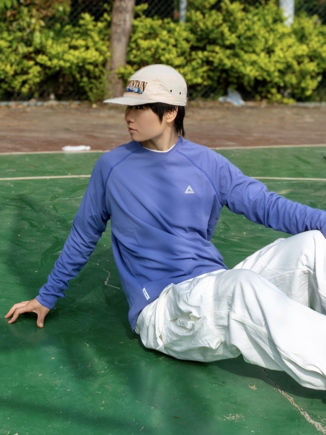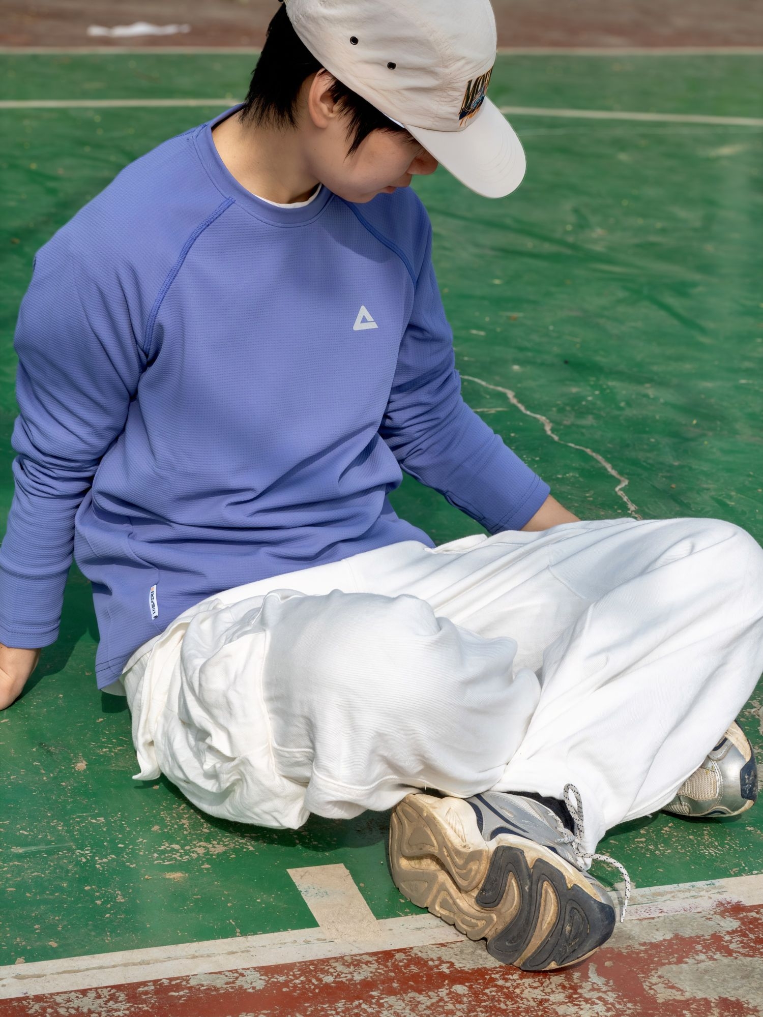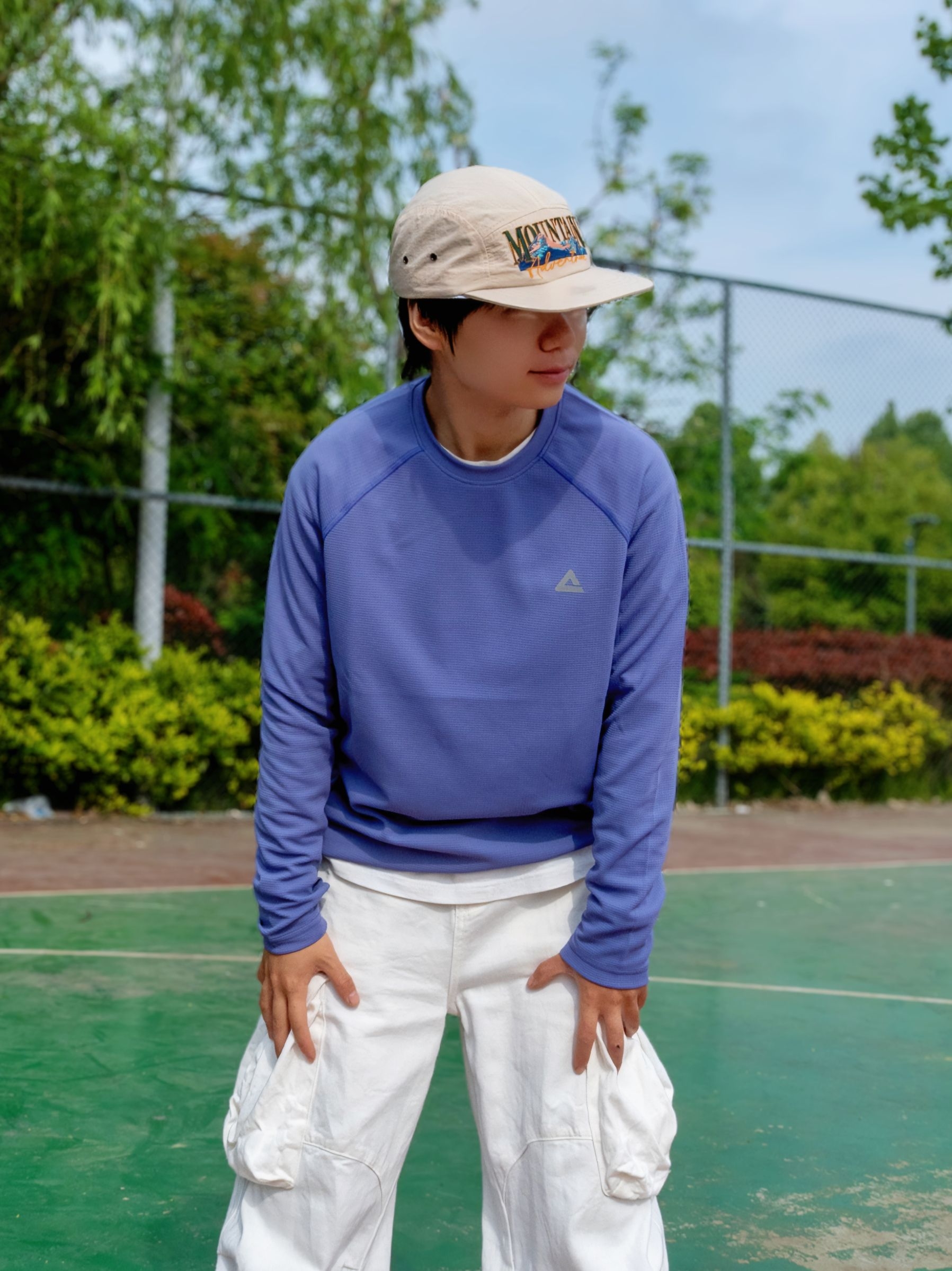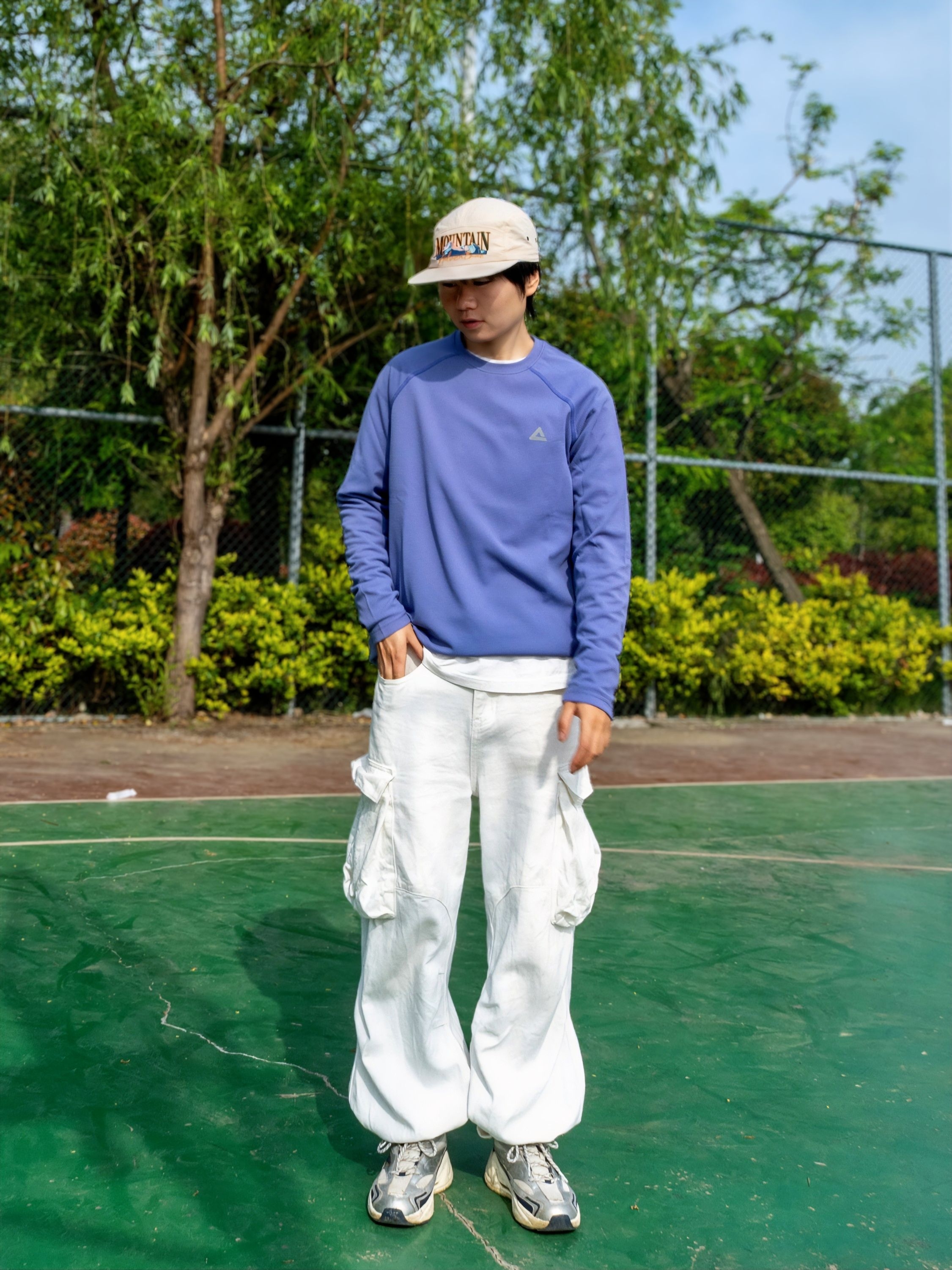 低饱和紫调太戳我了🫐显白又不挑皮 自带UPF防晒buff,打球不用怕晒黑🌚 ✨速干面料出汗也不粘身,清爽感拉🈵 搭白工装裤➕复古跑鞋👟少年感直接溢出屏幕