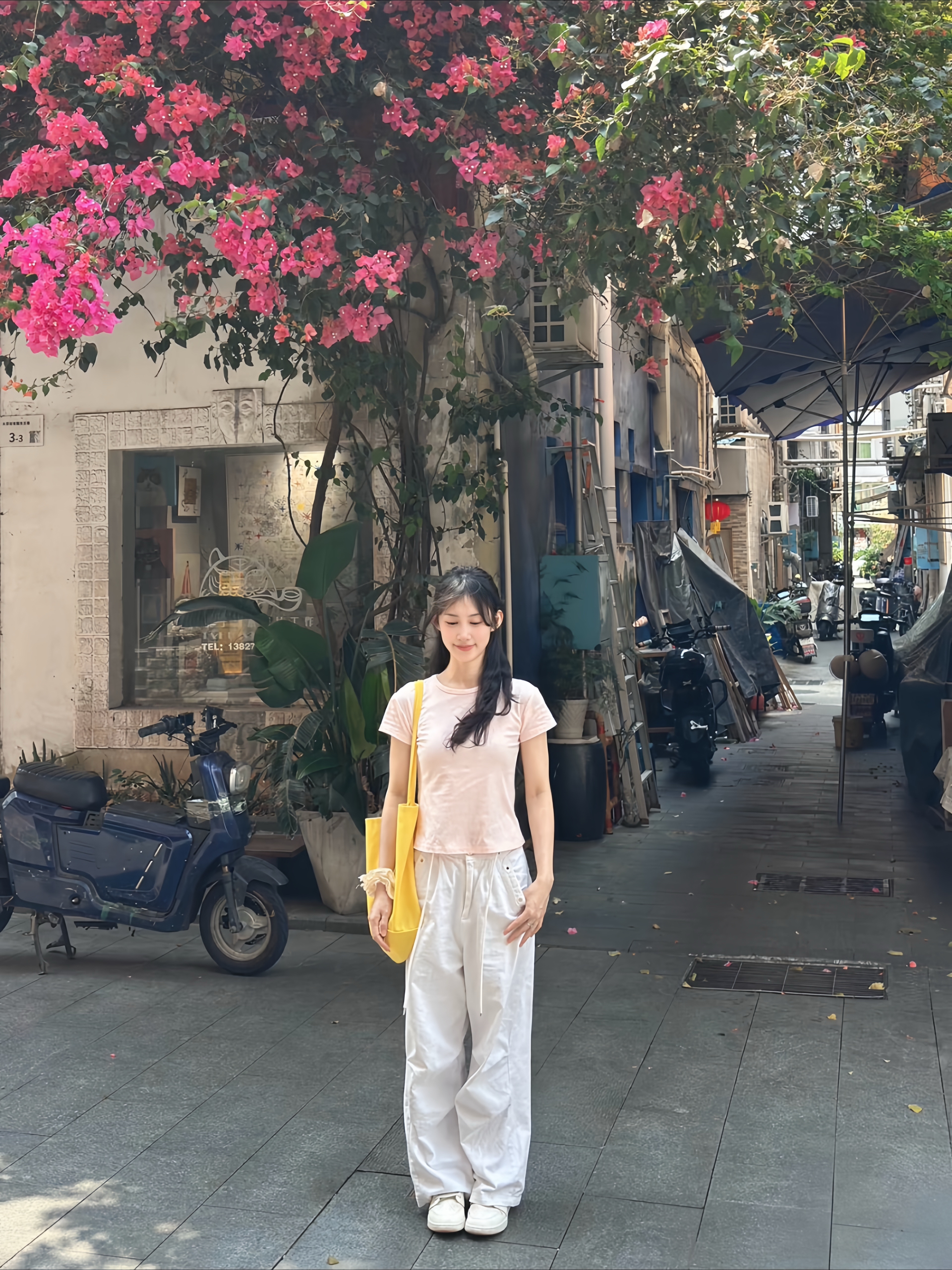 春天就爱这种低饱和的清爽穿搭! 基础款上衣+垂感白裤,不挑身材还显瘦, 日常出门舒服又好看,轻松打造松弛又高级的春日感~