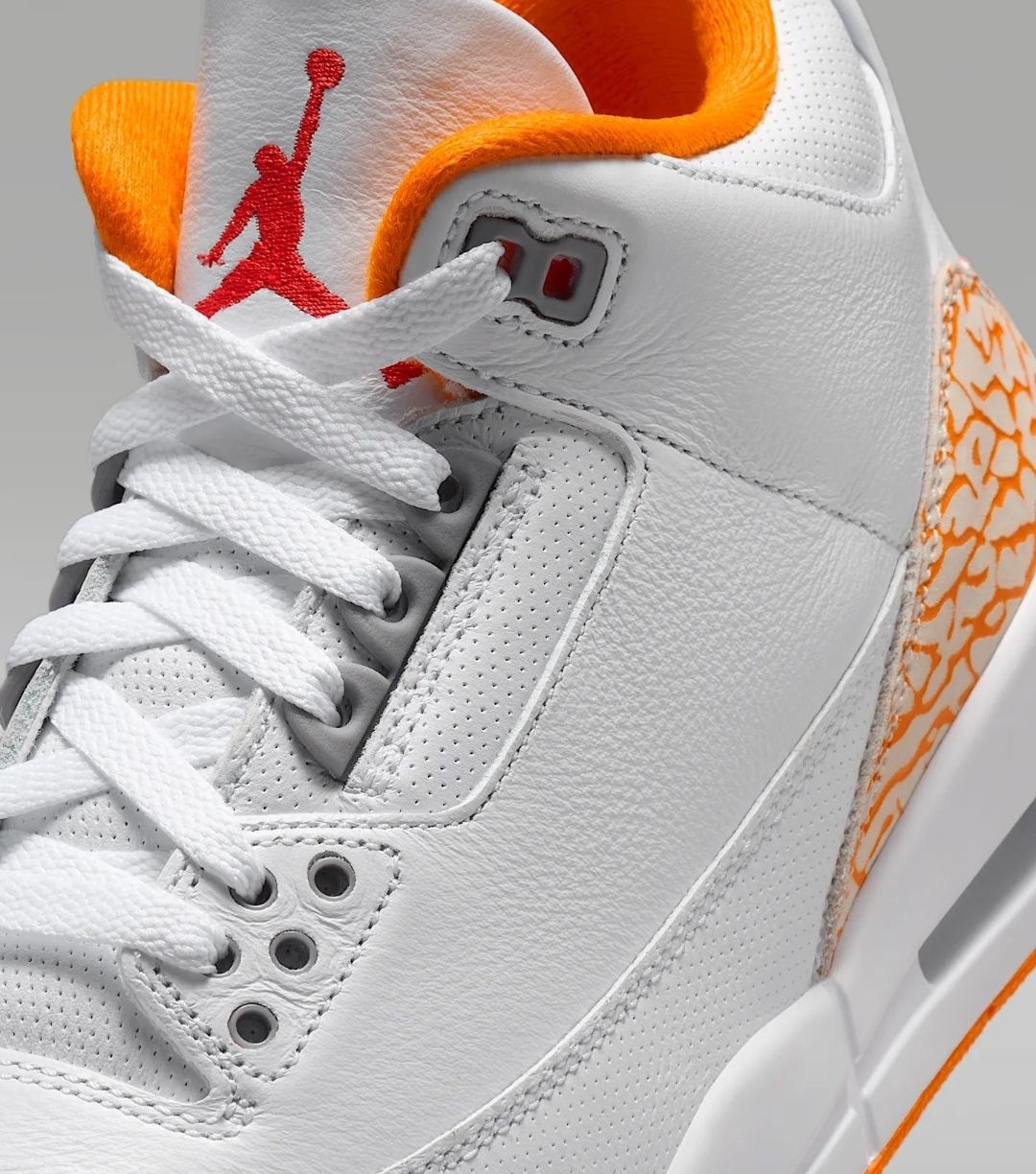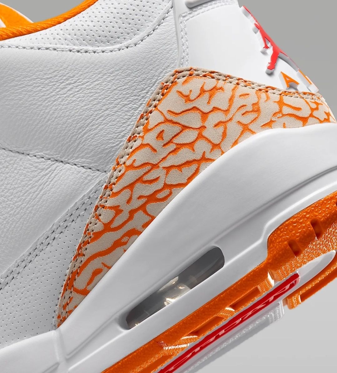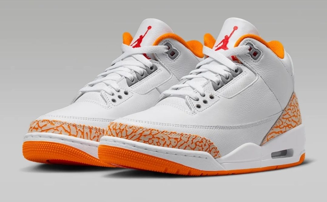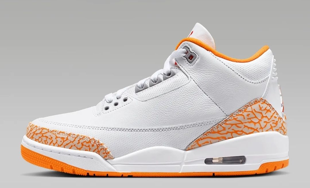Air Jordan 3作为球鞋界的经典常青树,每次出新配色都能掀起一波讨论热潮,而这双橙白配色的AJ3,直接凭清爽颜值戳中了夏日穿搭爱好者的心巴,堪称球鞋界的“夏日限定快乐水”🍊。 这双鞋的配色设计真的太懂氛围感了!鞋身主体选用细腻的白色荔枝纹皮革,干净又百搭,日常穿完全不挑穿搭,就算是小白鞋爱好者也能一眼爱上。最亮眼的当属鞋头和后跟的经典爆裂纹,这次直接换上活力满满的柑橘橙色调,瞬间打破纯...