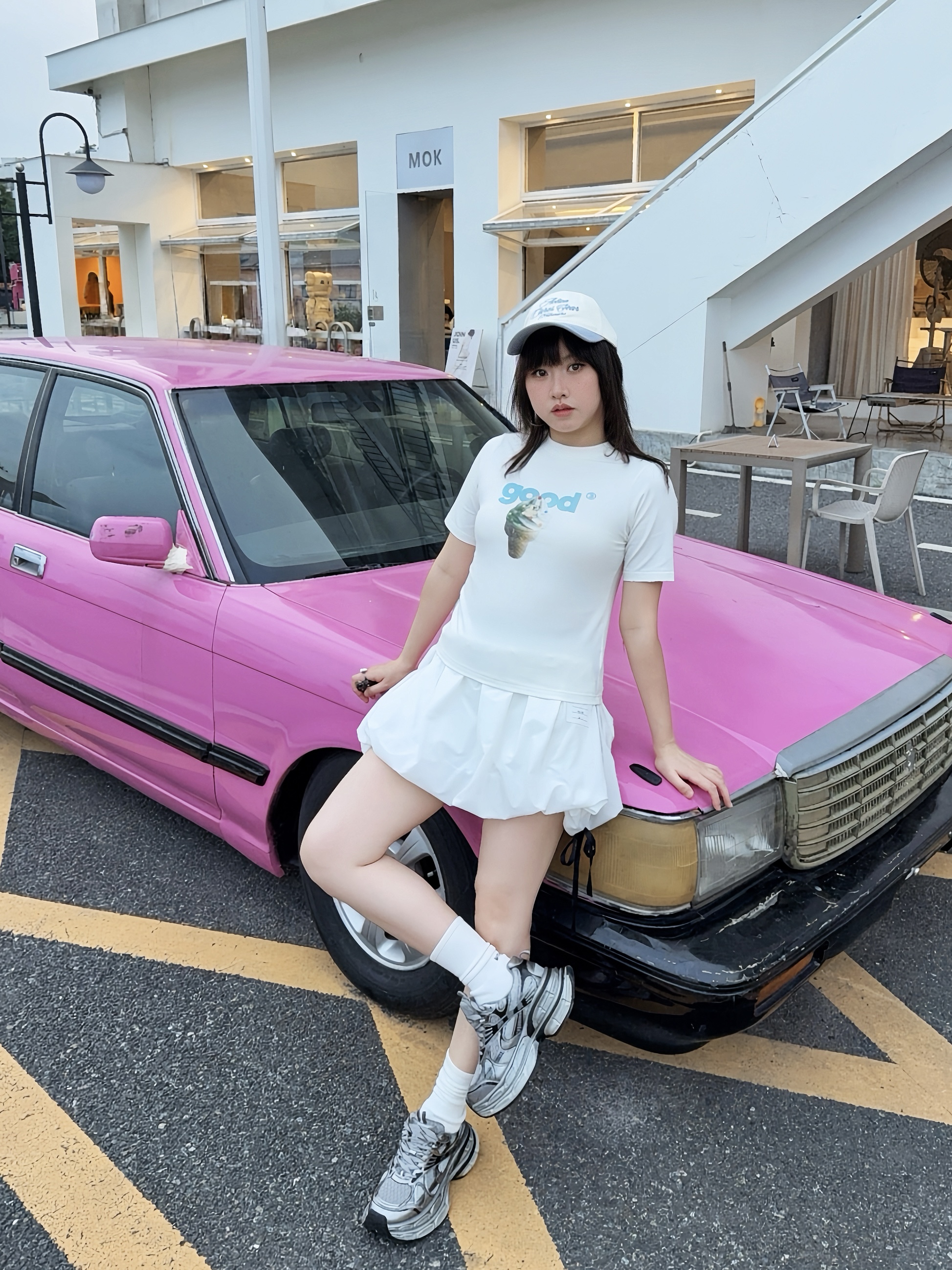 春天趁着假期出游啦🫧 今天一身白色系look:🍦正肩短袖可可爱爱,搭配同色系半裙,很有少女感~ 👟搭配厚底运动鞋更显比例,戴上棒球帽🧢就可以出街啦