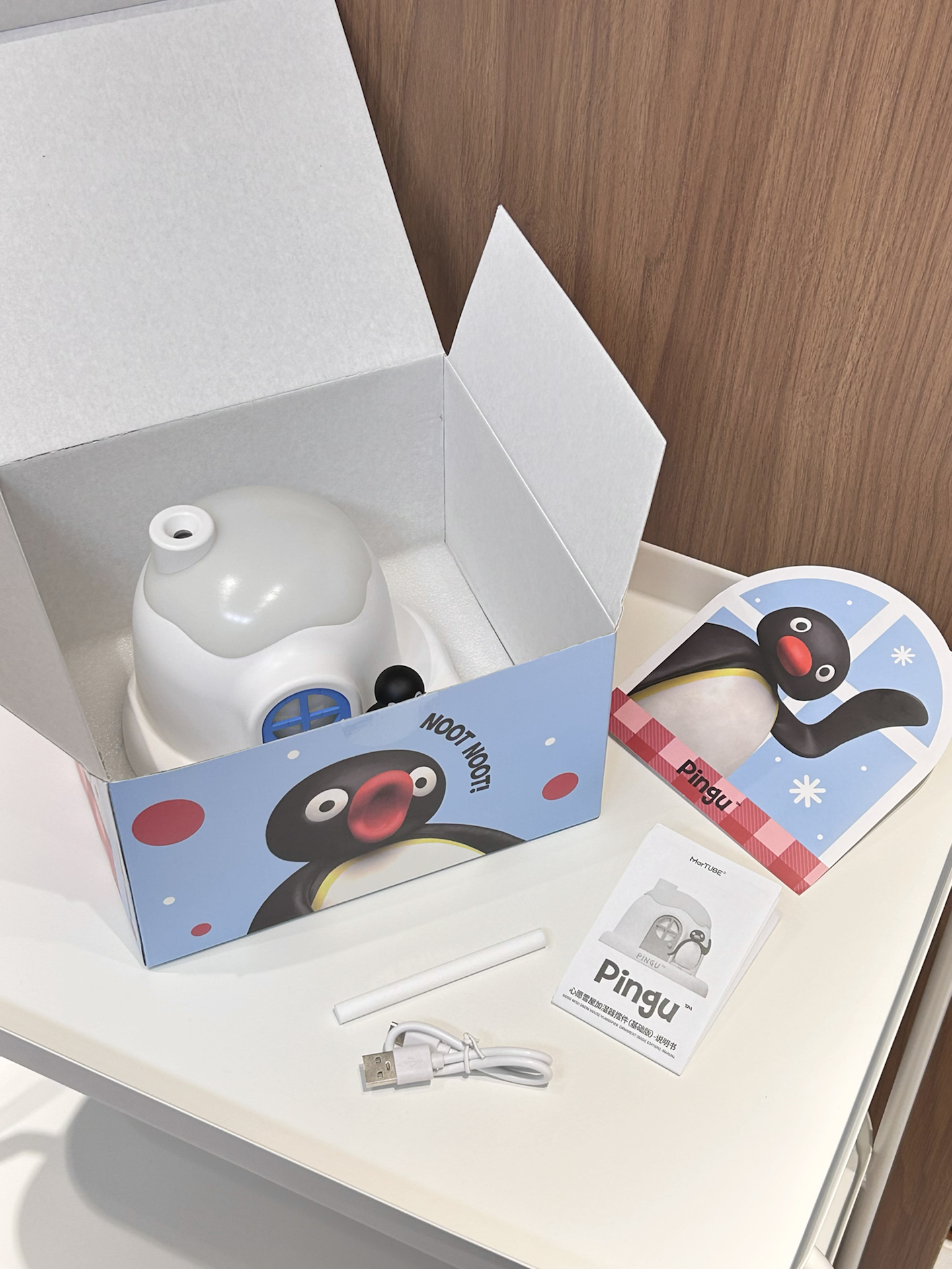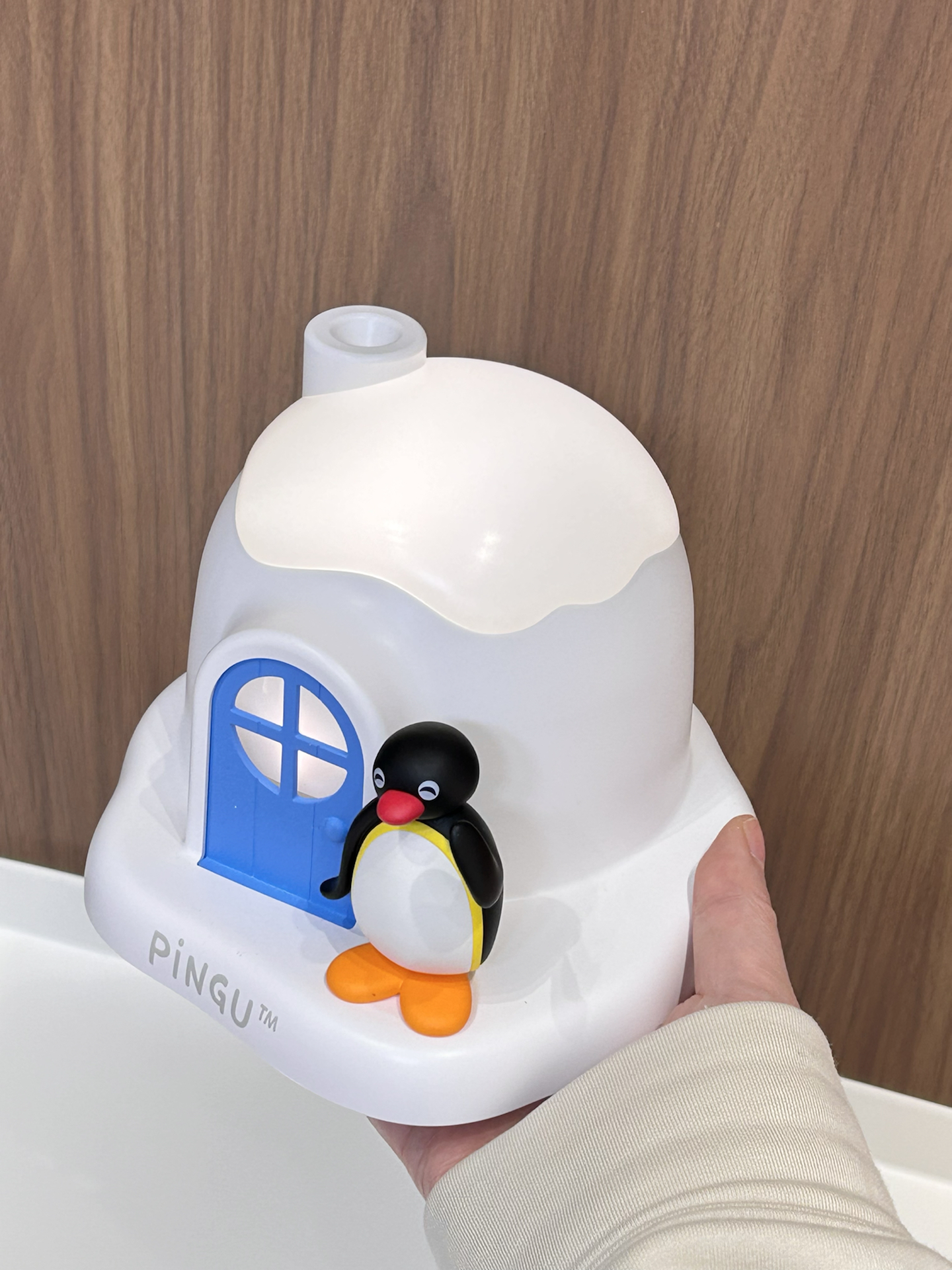 是我挖到的的这个加湿器 Pingu 联名的我觉得很可爱呀 小雪屋的造型 门口站着企鹅 光是看着就有点凉爽的感觉啦 还有氛围灯搭配 蛮温馨的 我开空调时候用它 感觉干燥缓解了些 还搭配了礼盒 送女孩子也还不错的选择