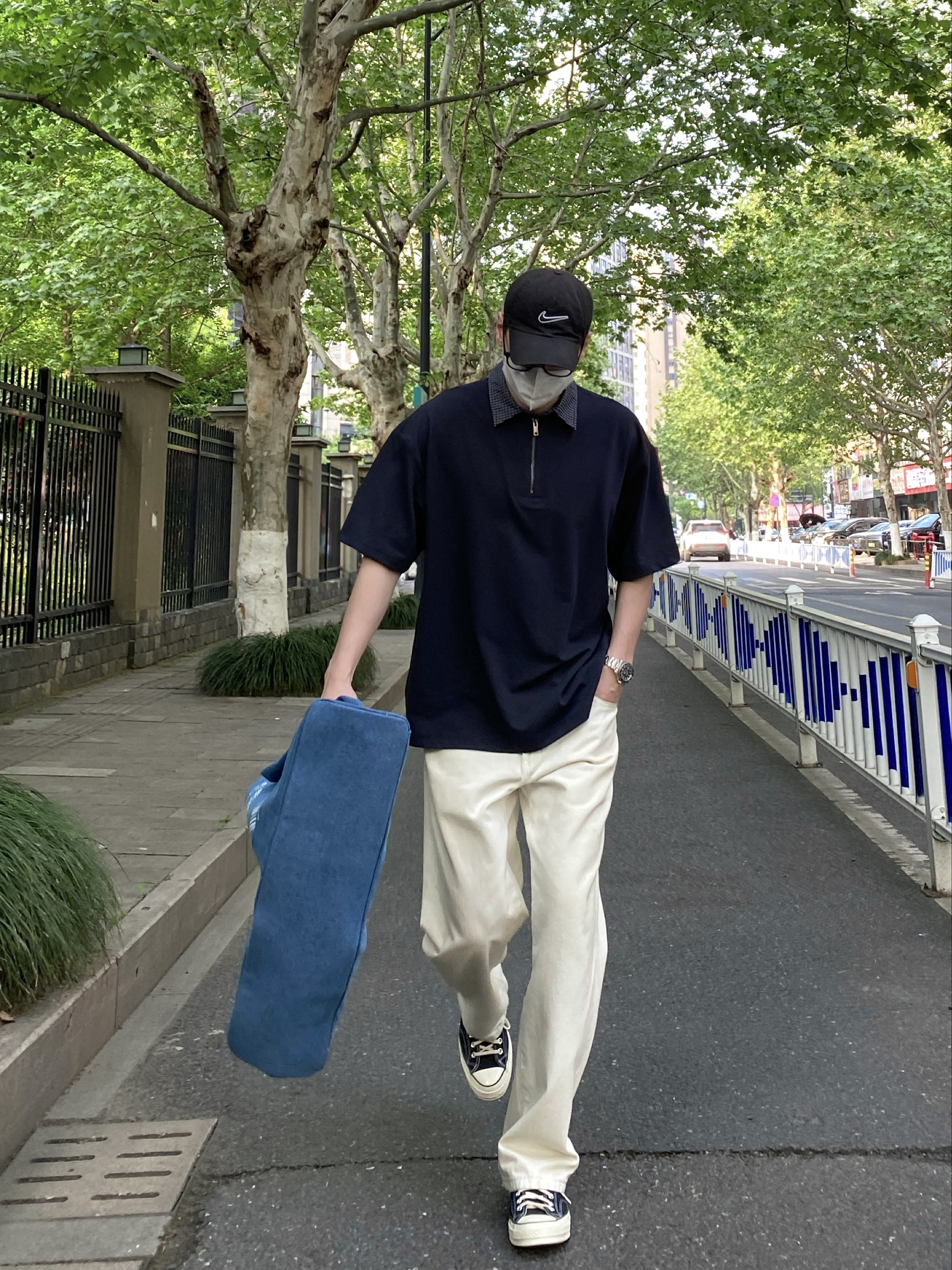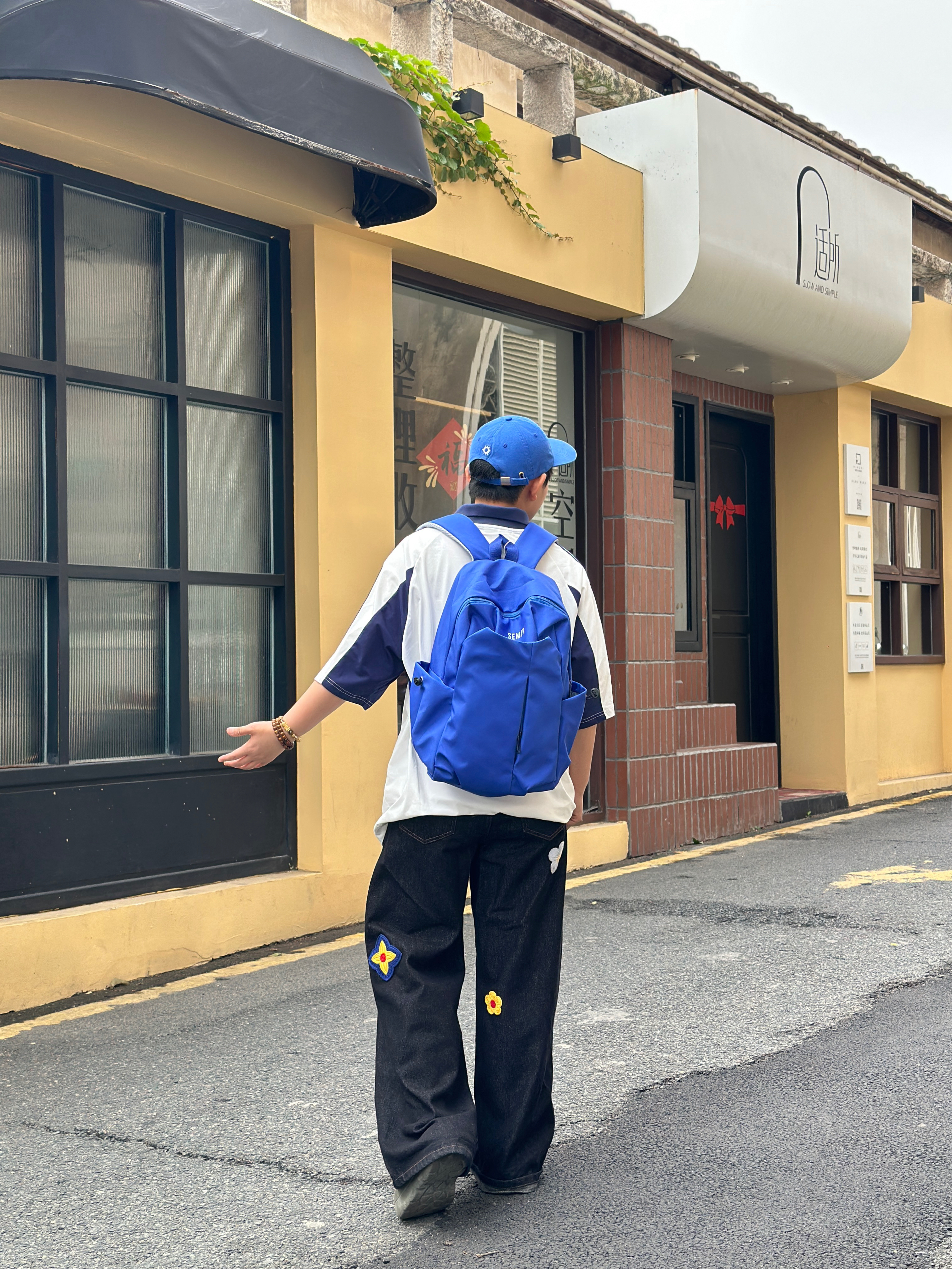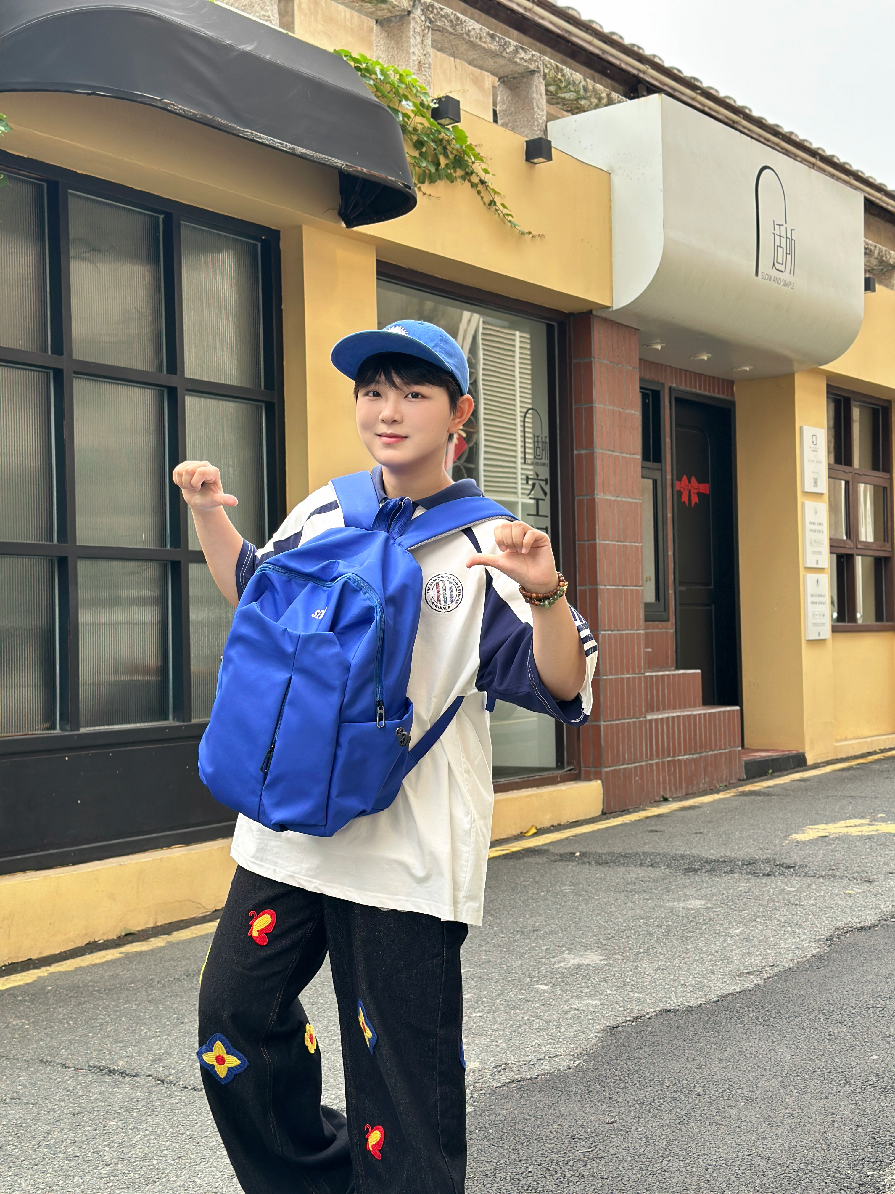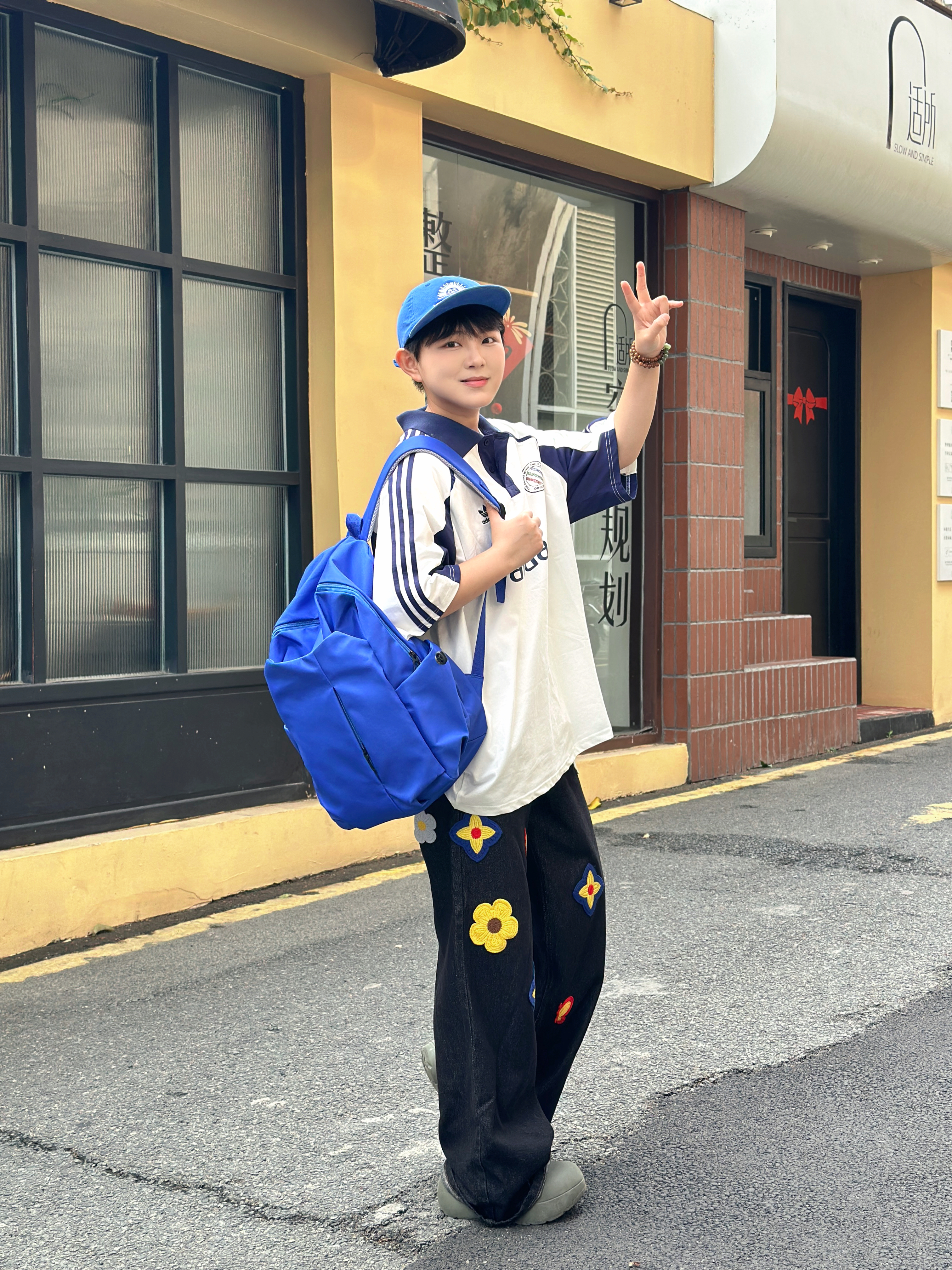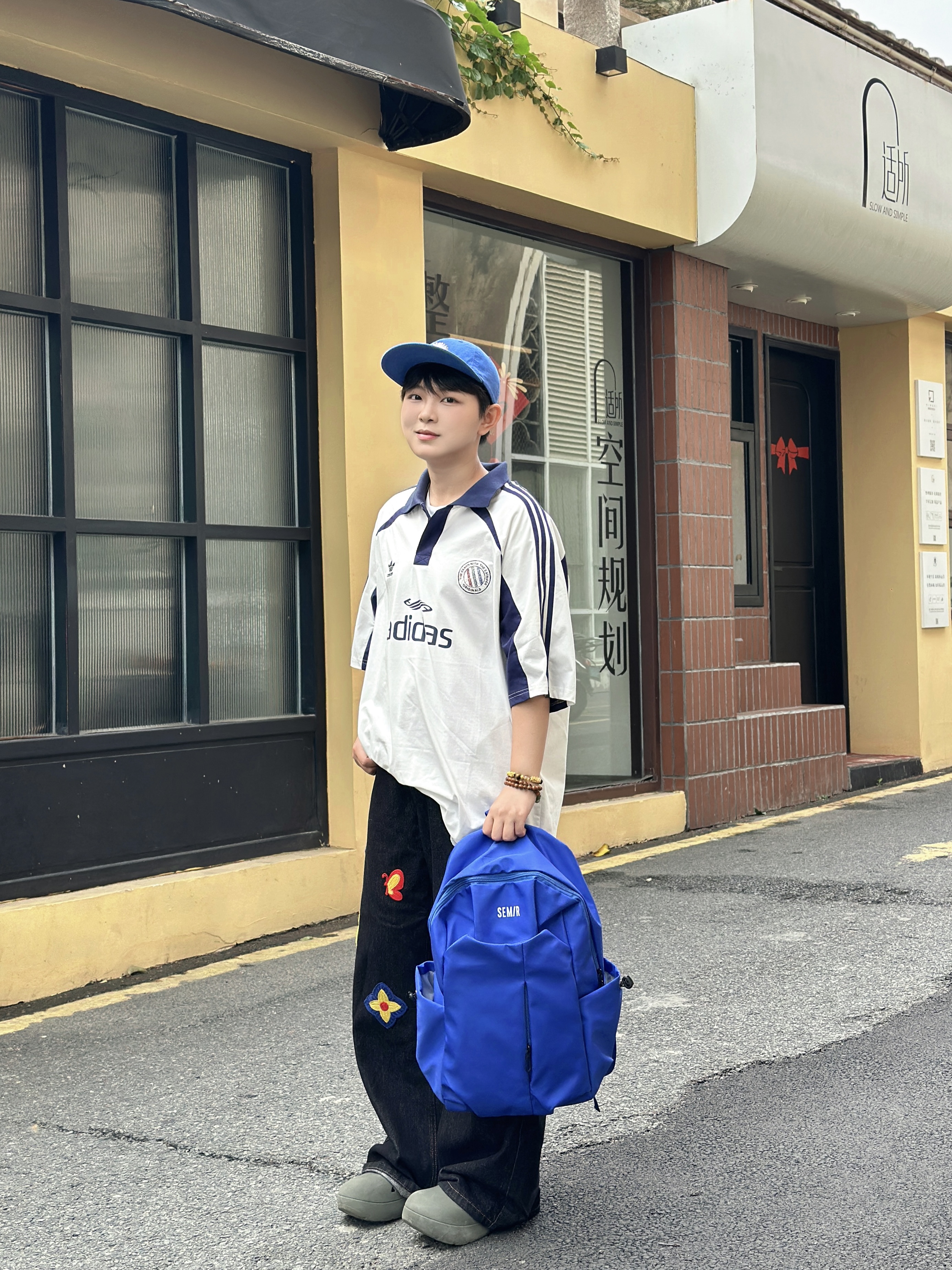 不用被风格定义,舒服自在就是最好的状态。 白蓝拼接球衣T,自带复古运动氛围 深蓝刺绣阔腿裤,随性又藏肉 同色系棒球帽+双肩包,把少年感焊在身上💙 色彩呼应的细节,让整体造型更有呼吸感 没有刻意搭配,却处处透着巧思 不被场景束缚,不被风格框限🌿 Offduty无界美学,就是忠于自己的穿搭态度 轻松、鲜活、自成一派✨