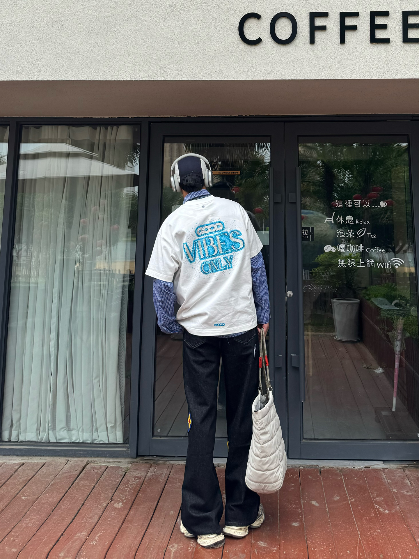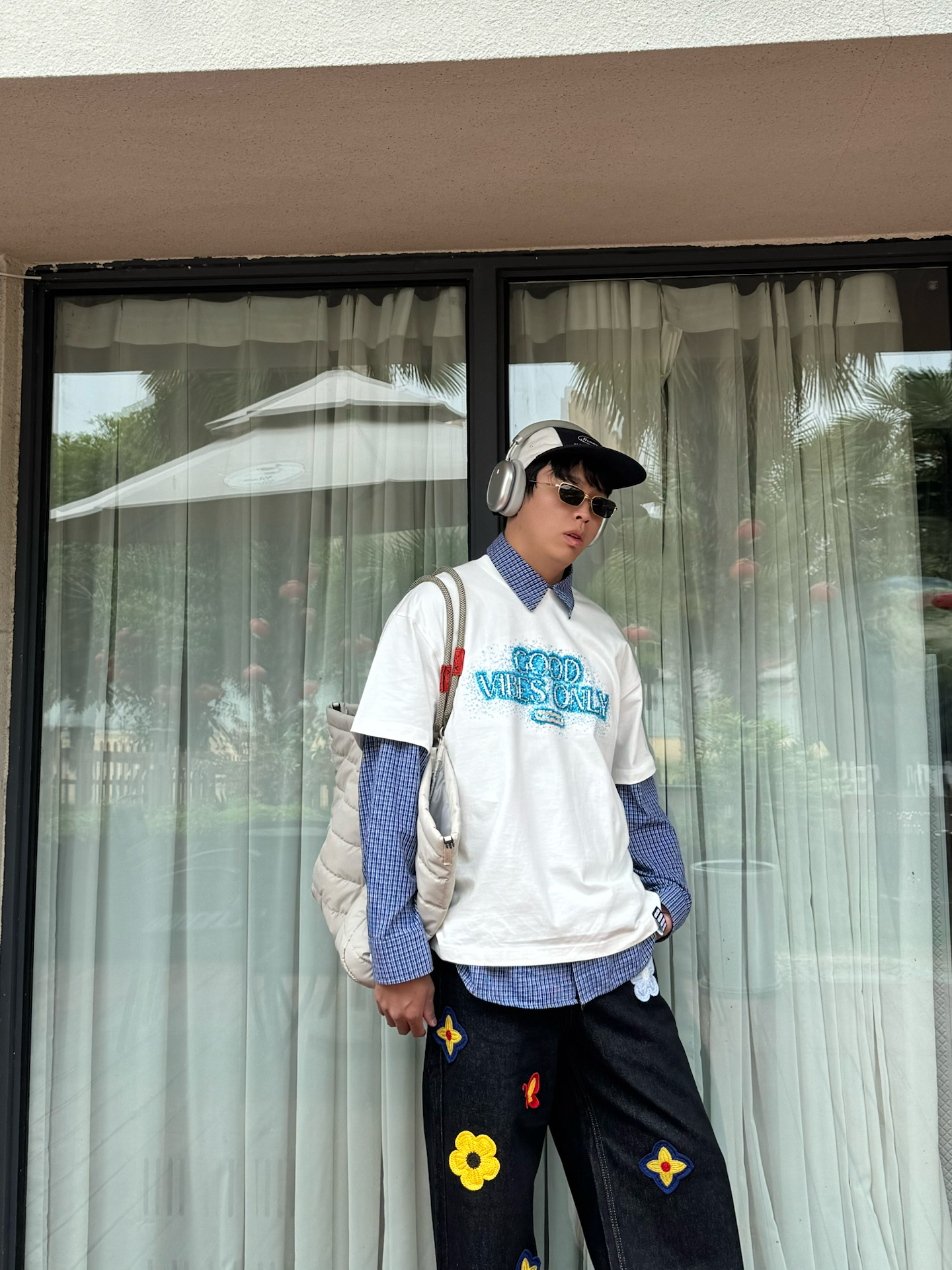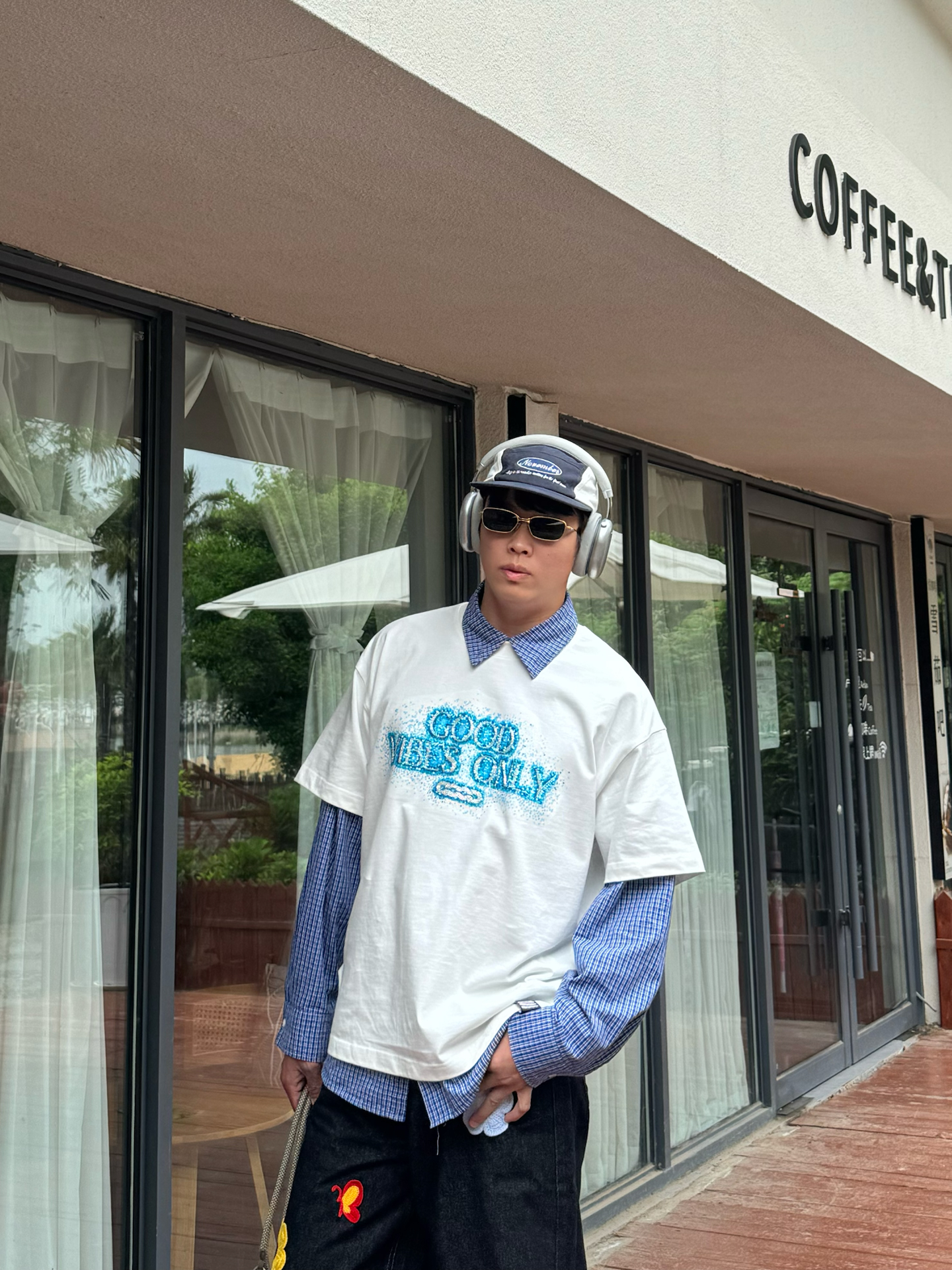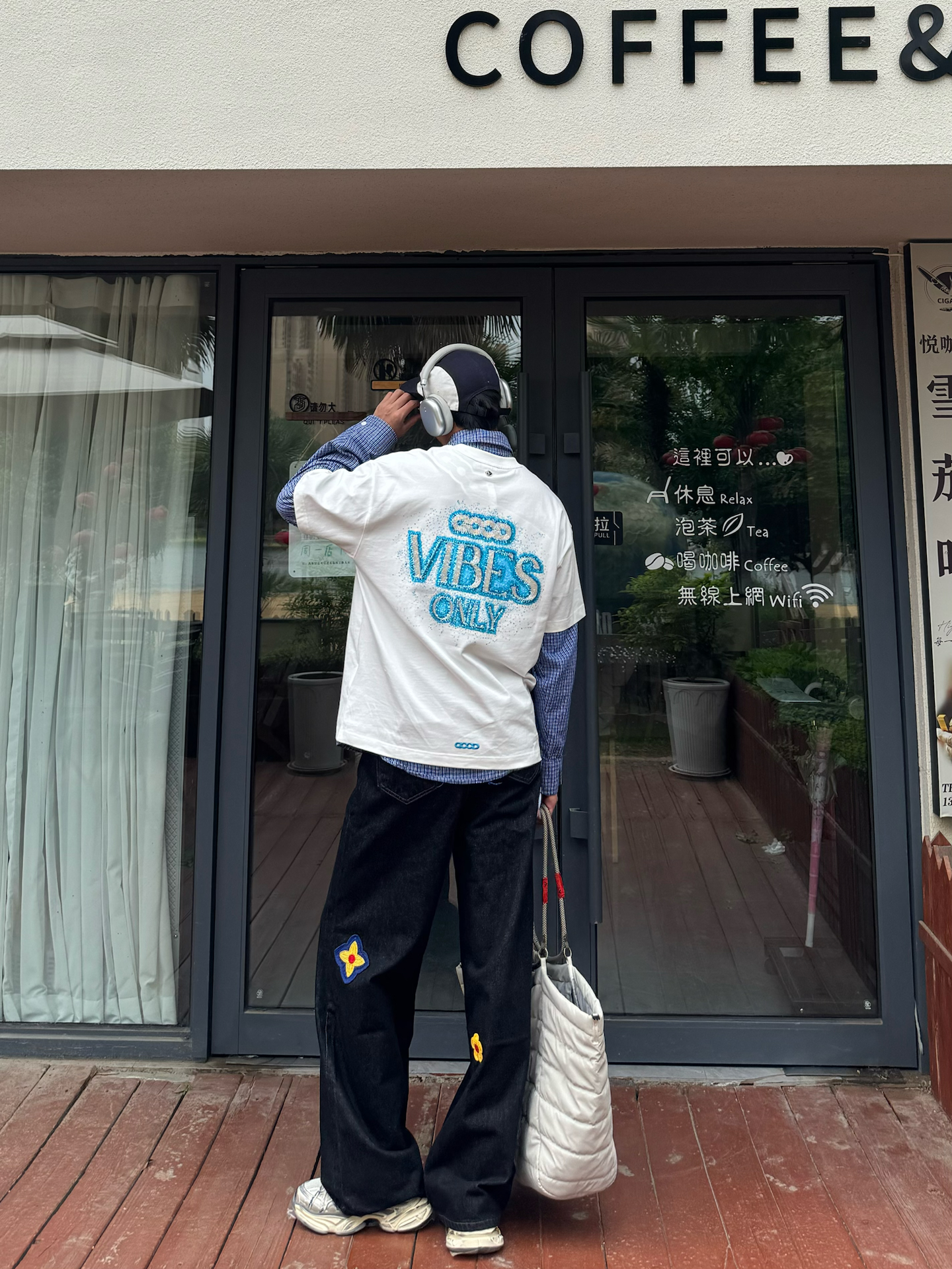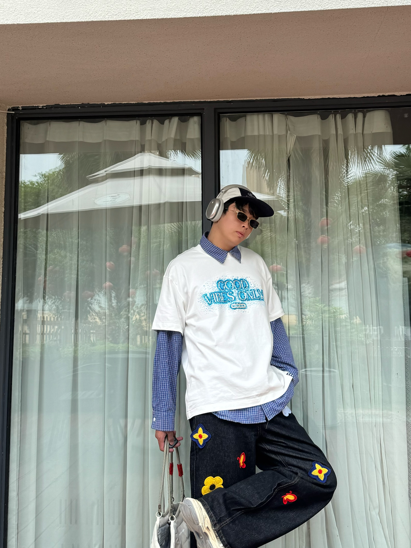 今日穿搭来自183/160 👔上身搭配一件白色T恤 👖下身搭配一条黑色印花牛仔裤 👟脚上搭配一双老爹鞋 🔗 夏天就爱这么搭简单又清爽 这件白T恤面料软乎乎的 贴身穿也不闷汗 版型宽松不贴身搭衬衫叠穿刚好有层次感不会显得臃肿 印花和整体风格也很搭看着干净舒服 出门不用费脑搭配 一套下来少年感直接拉满 短袖