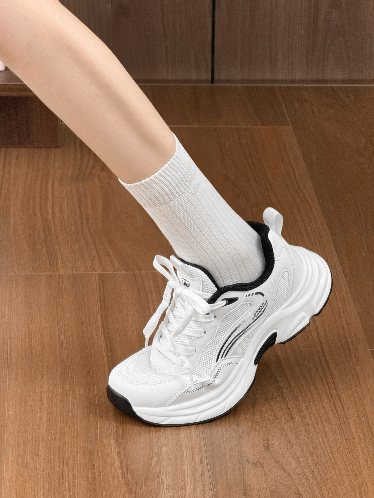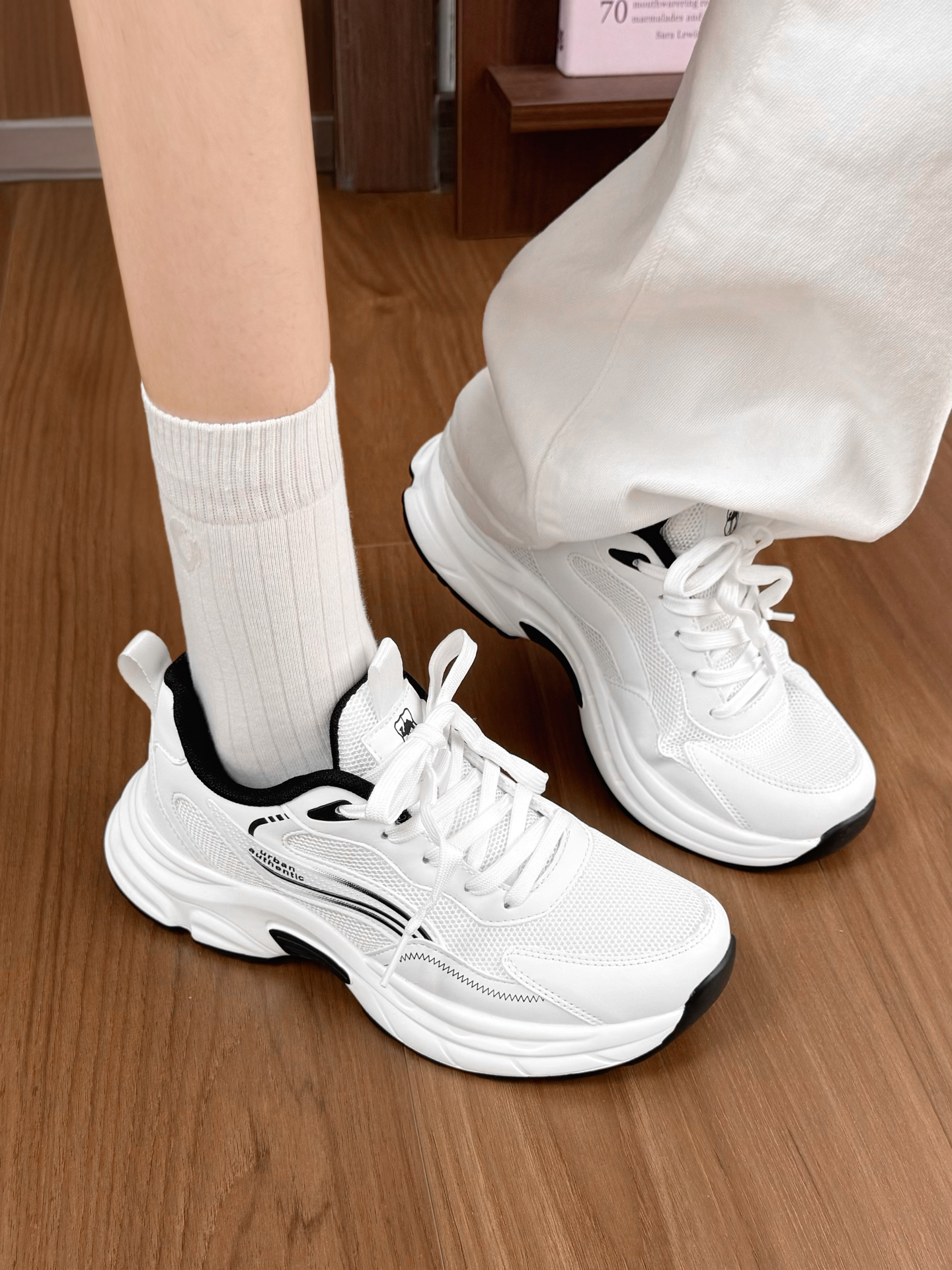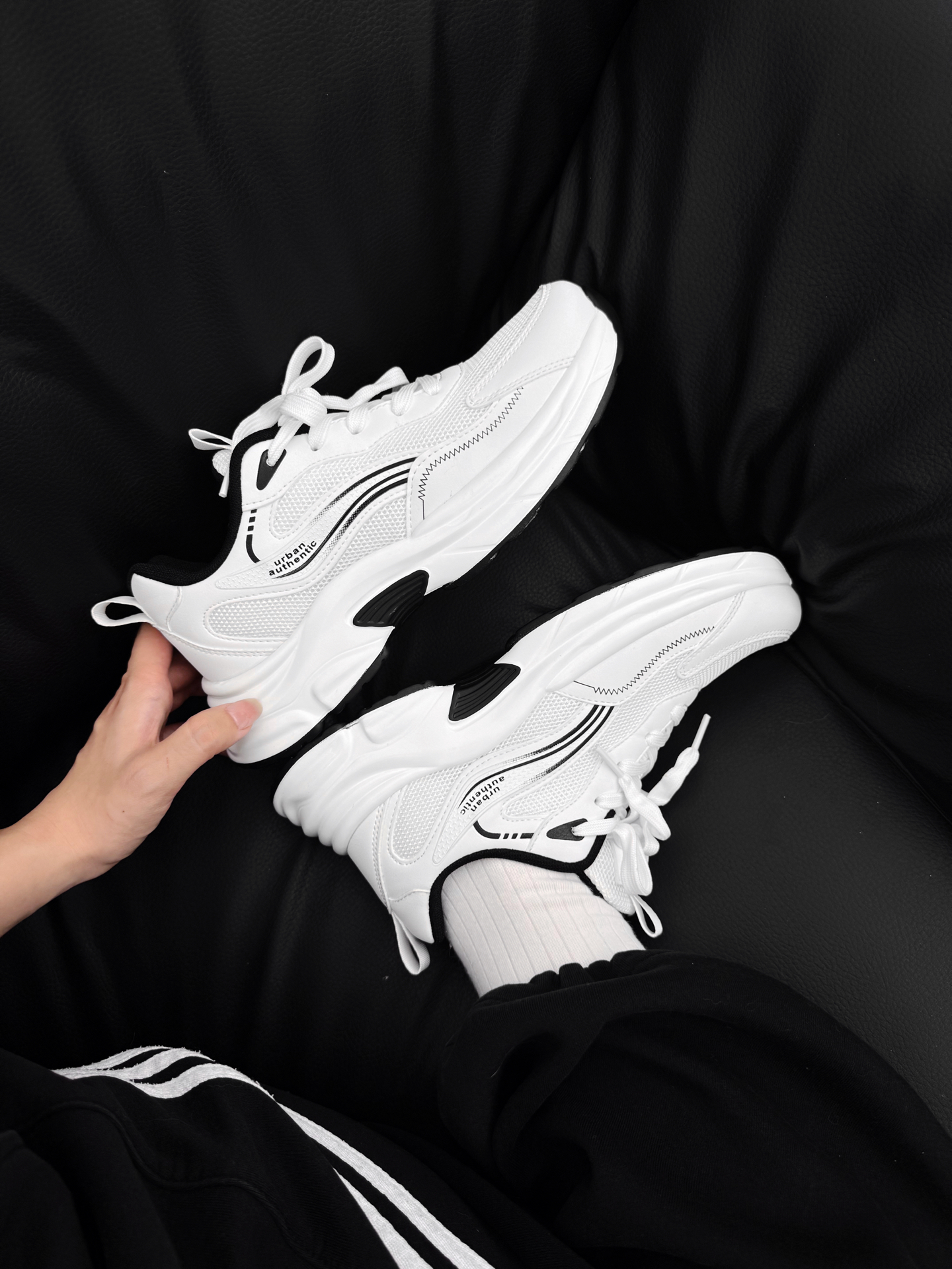 通勤慢跑鞋好好穿呐我跟你们讲!! 这个黑白配色经典百搭我就不多说了 鞋型就属于那种很舒服耐看的 上脚踩着也很有松弛感 鞋内空间足够包裹感刚刚好 弯折轻松也透气 很适合春夏跑步呐!