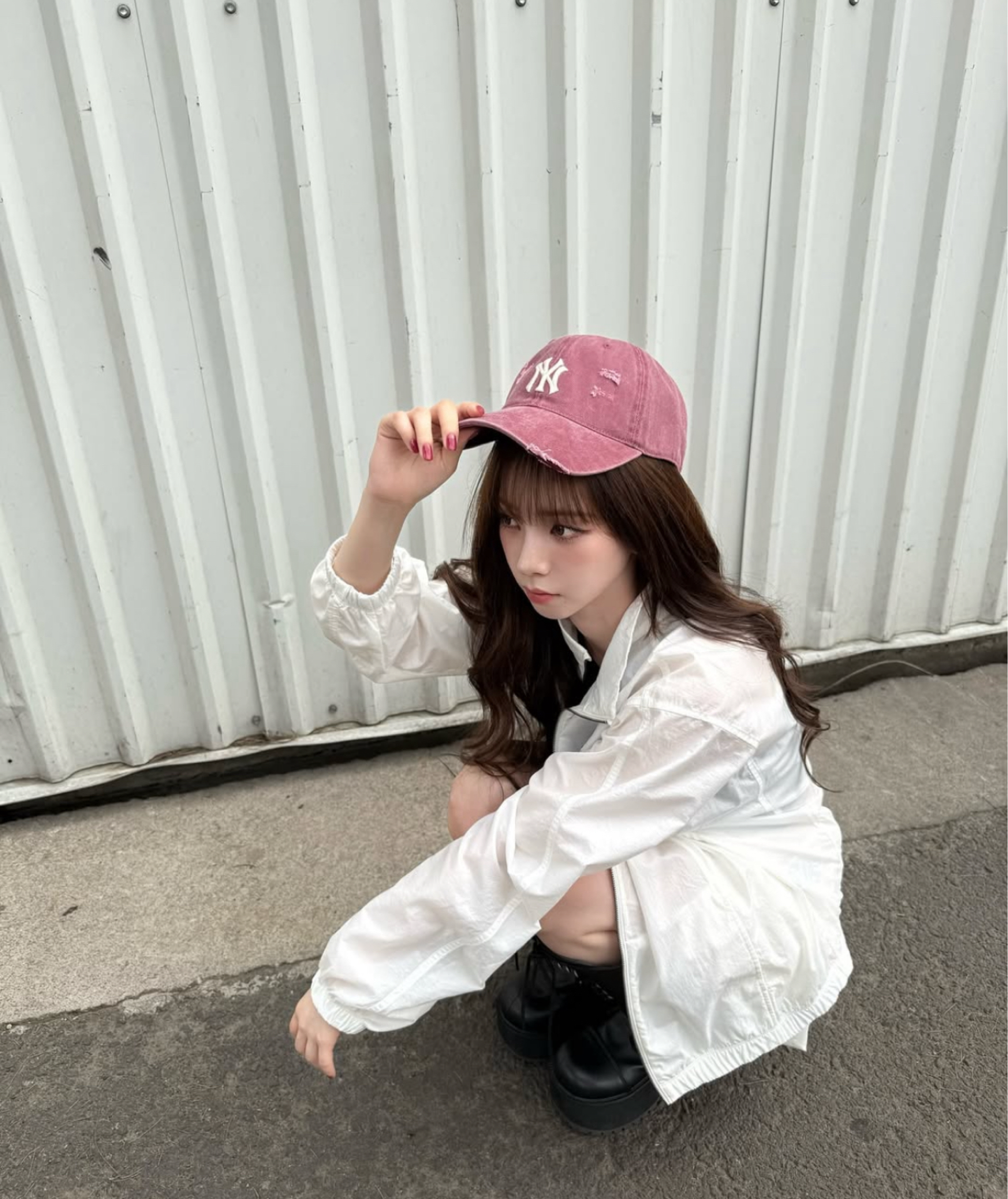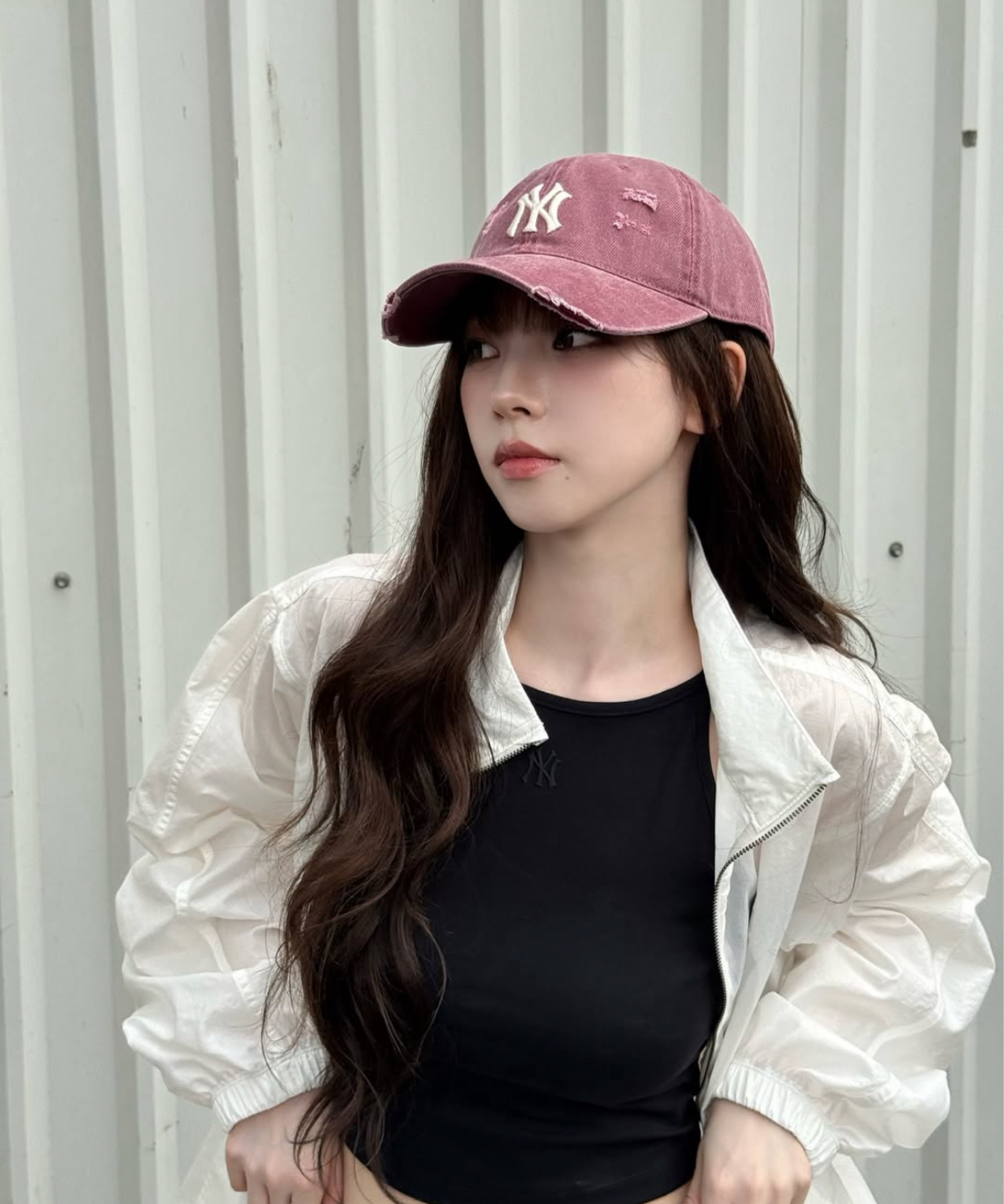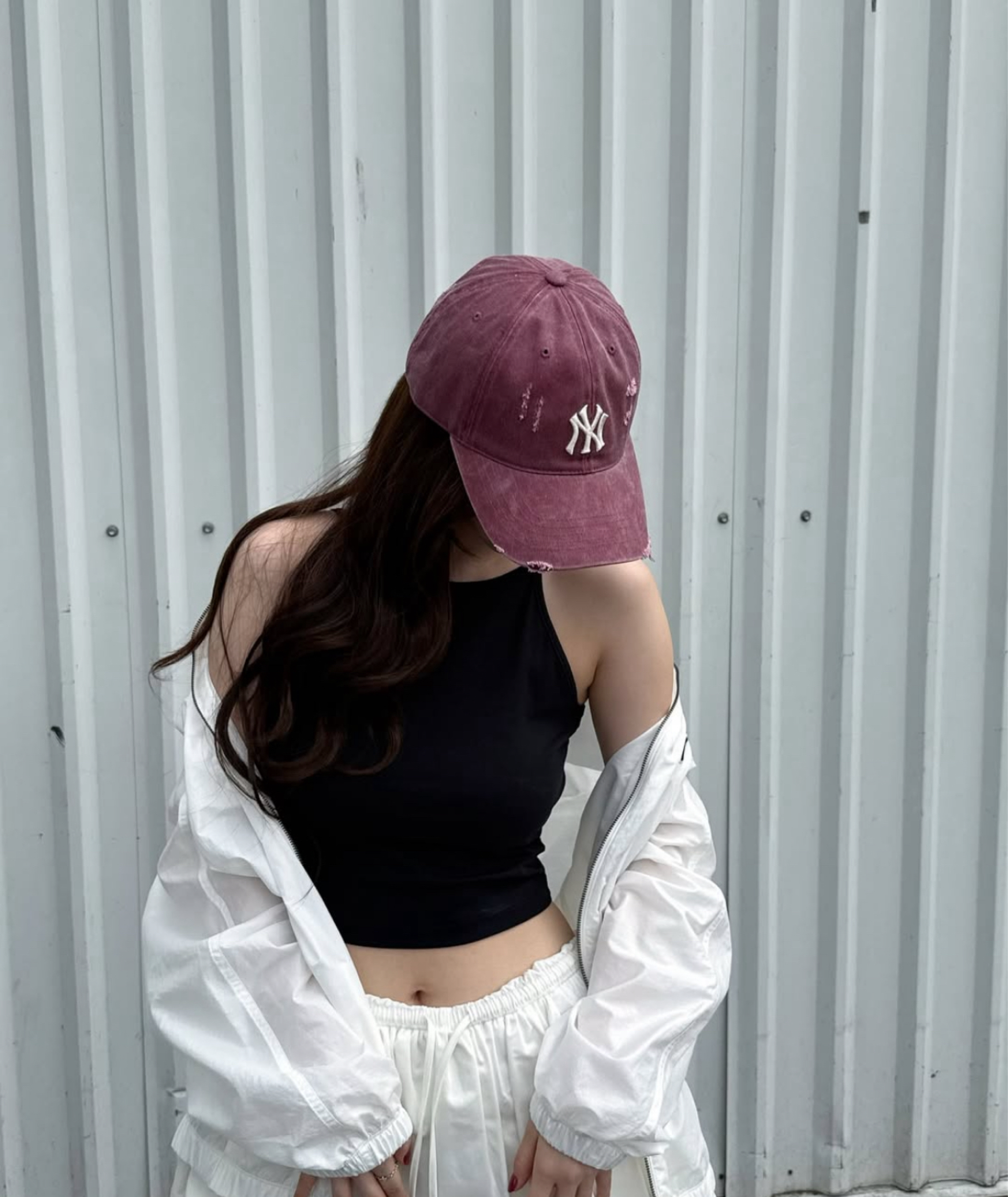 📝水洗做旧的豆沙粉NY棒球帽,自带松弛复古的质感。 软顶的版型很柔和,弯檐线条自然,搭配基础款上衣很出效果。 📝做旧磨边的细节让整体多了点随性的感觉,日常搭配不同风格的衣服都很协调。 📝光线不同时,帽子的颜色会呈现出不一样的柔和质感,和浅色系、深色系搭配都有不同的氛围。