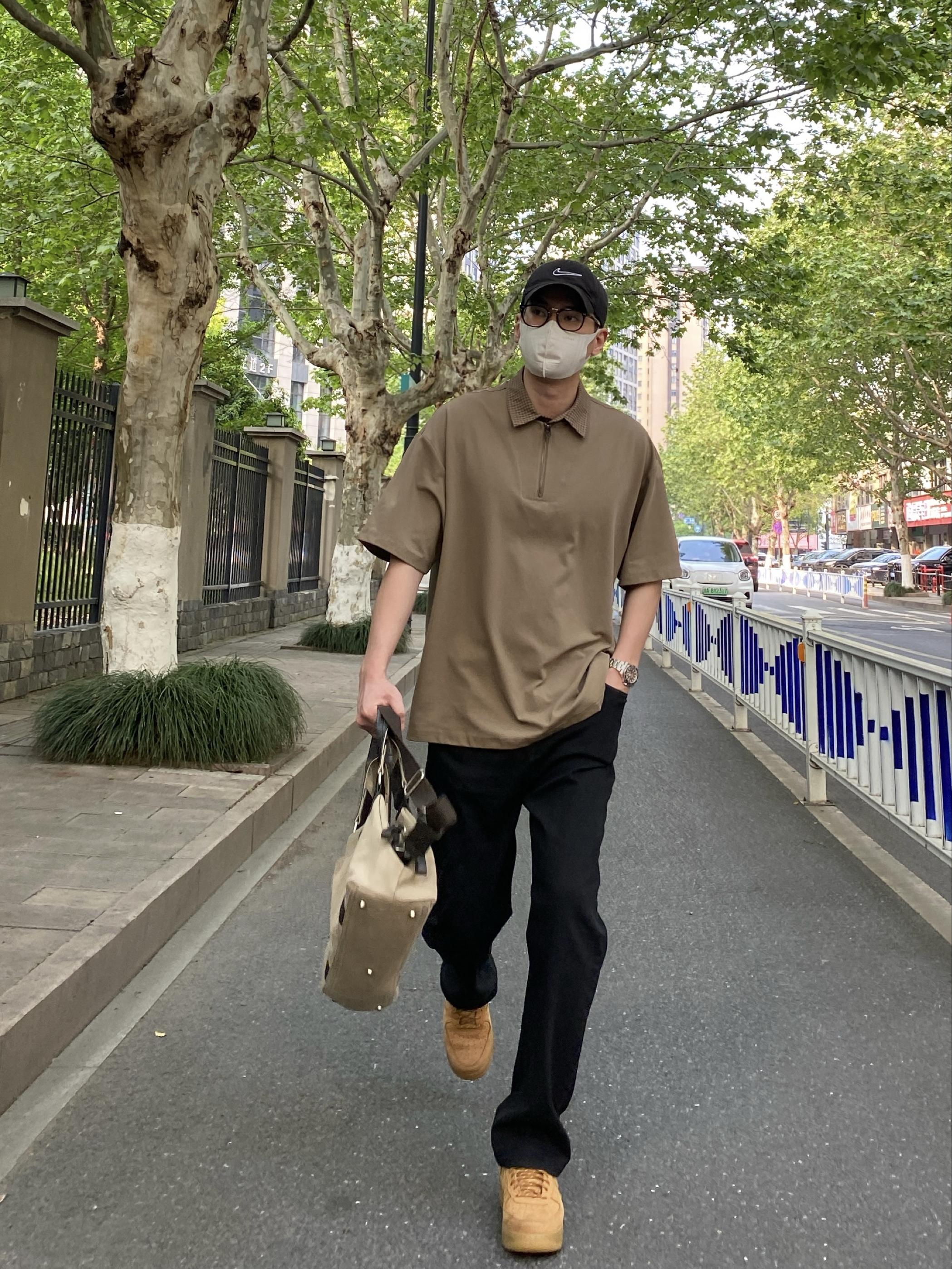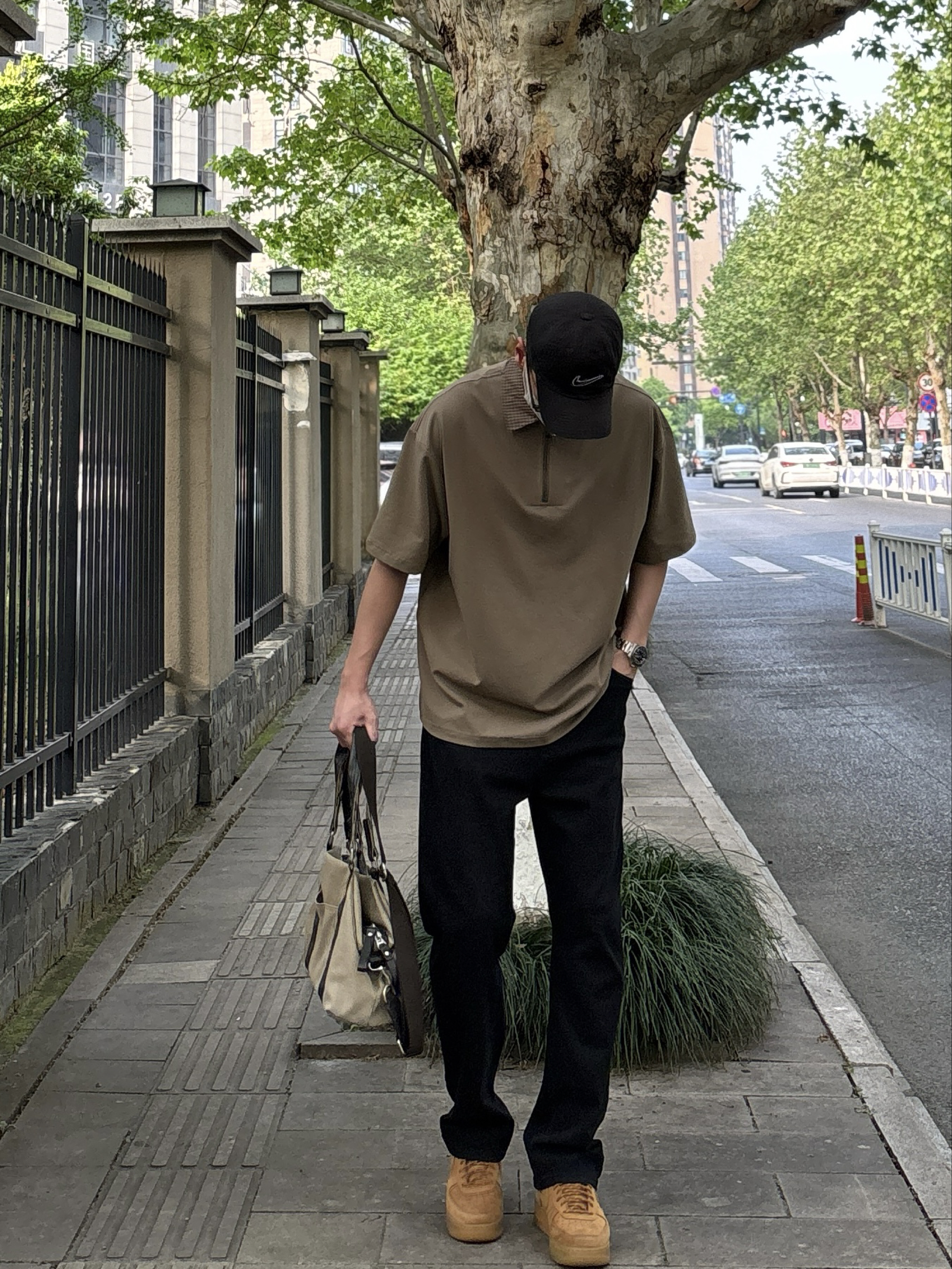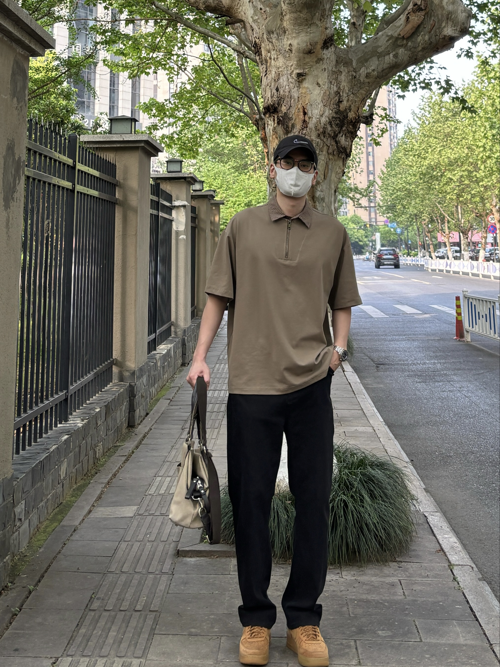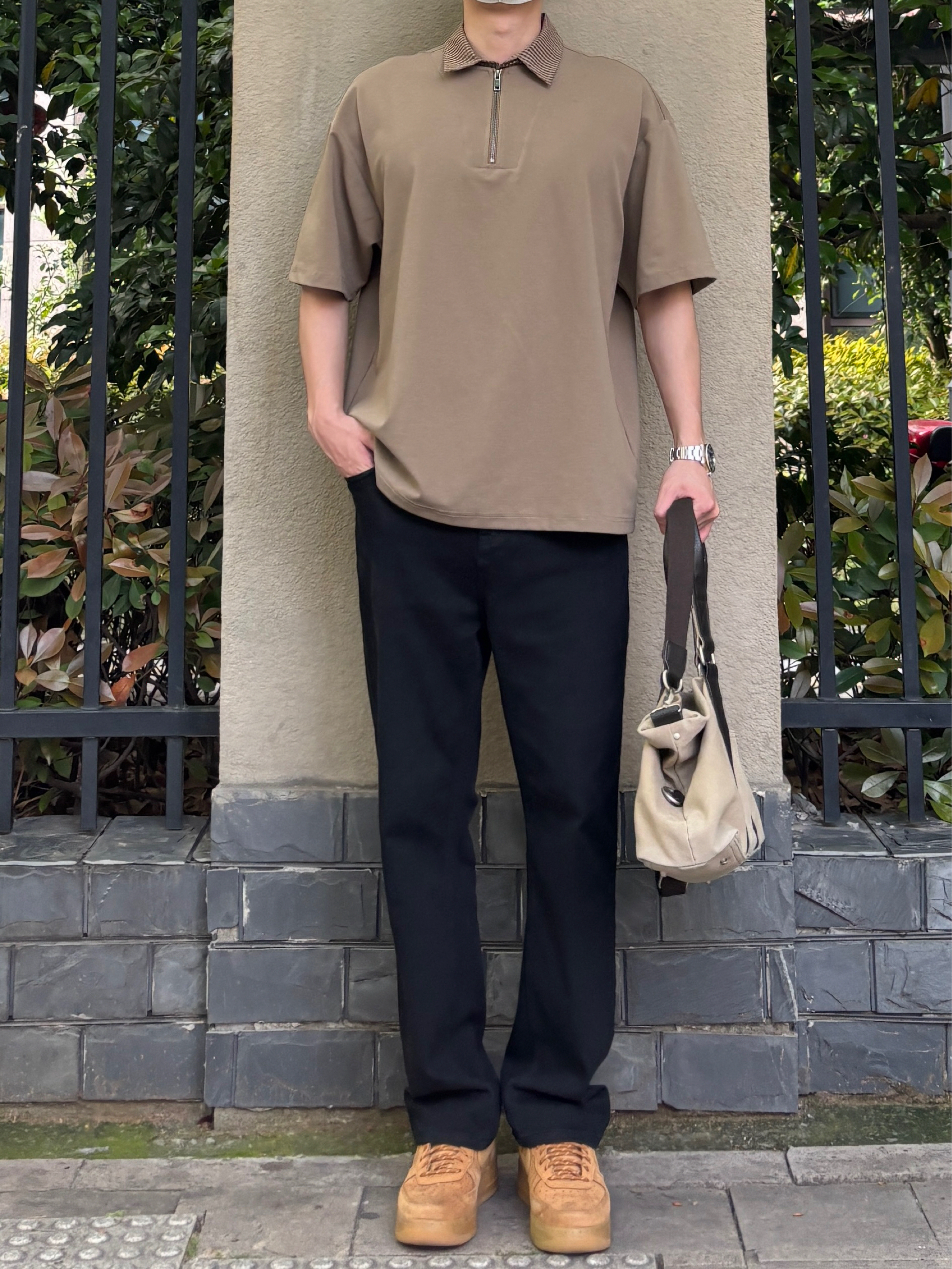 卡其和黑色的组合真的简约又耐看✌️ 上衣卡其色翻领短袖Polo,色调柔和干净,半拉链的小设计让基础款多了几分细节👍 裤子搭配利落有型的黑色直筒牛仔裤,经典黑色显瘦又百搭,水洗面料自带复古质感 脚踩一双小麦色皮质低帮板鞋 最后手提同色系卡其色帆布包,大容量实用又轻便 整套以卡其与黑色为主调,低调干净,休闲通勤出街这样穿都很NICE🙋♂️ - 今日搭配 衣服裤子:NICE LILI 鞋子:AF1小麦