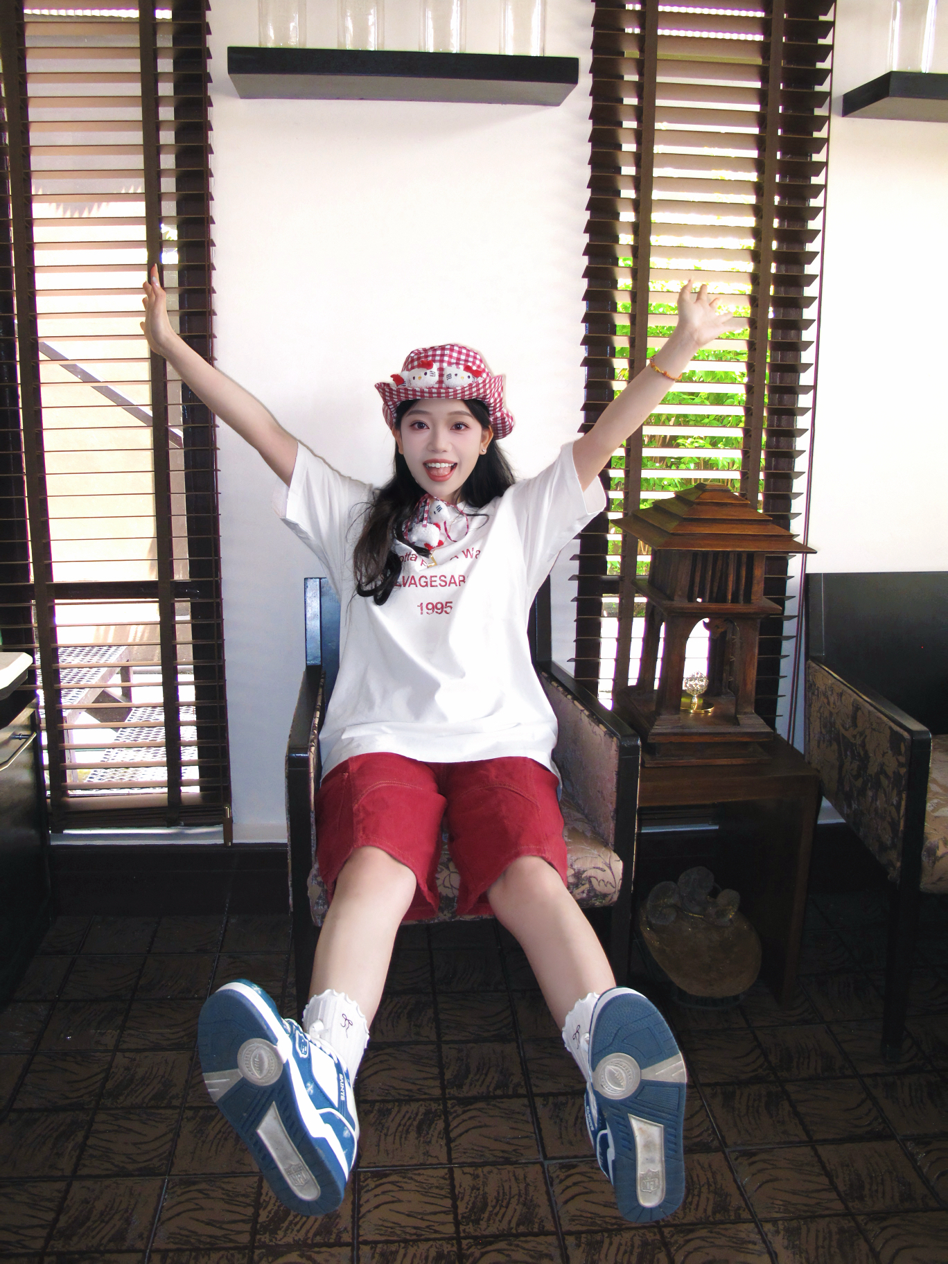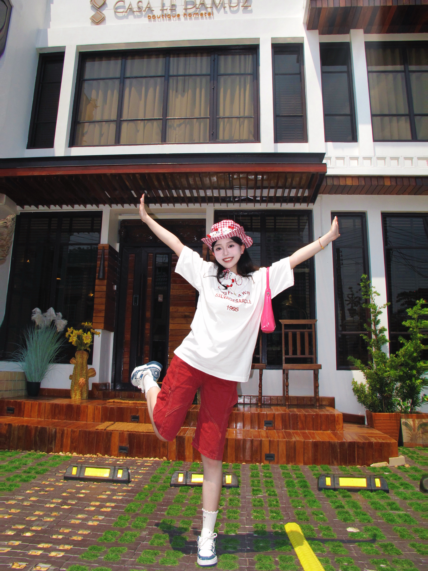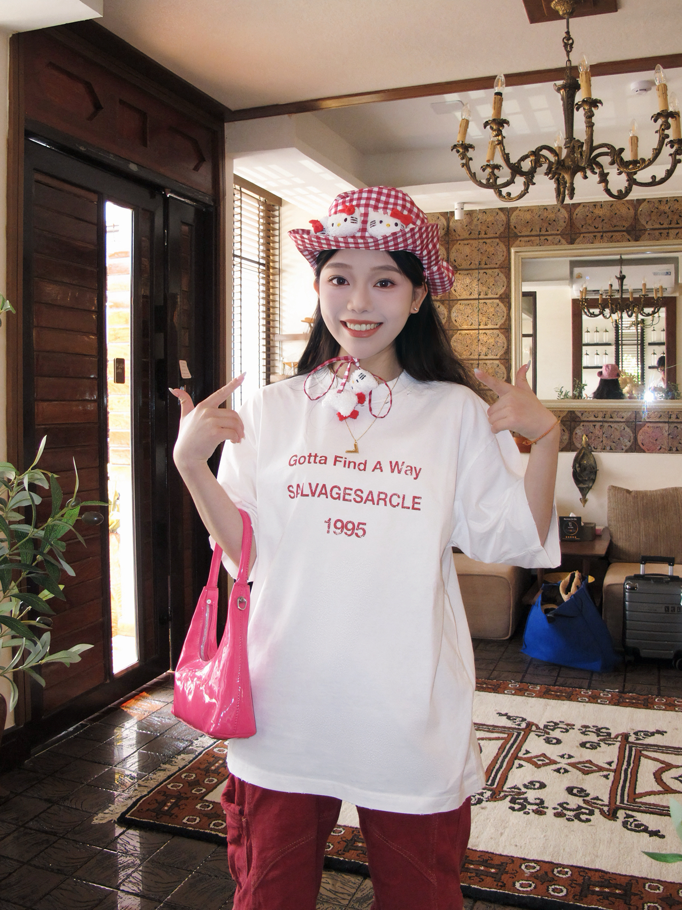 哈哈我也算是蹭上这句热梗了 再35度的曼谷我觉得也不是很热 也就和广东差不多吧 只觉得阳光照在身上很“温暖” 彩色OOTD很适合曼谷的夏天 像我就穿的白➕红色字母印花的美式T恤 透气性很好,纯棉材质,一点都不热 我很喜欢T恤领口的微做旧破洞设计,很特别 搭配同色系牛仔裤,再来一顶hellokitty渔夫帽 很有活力的一身很适合在泰国 📷很出“圈”