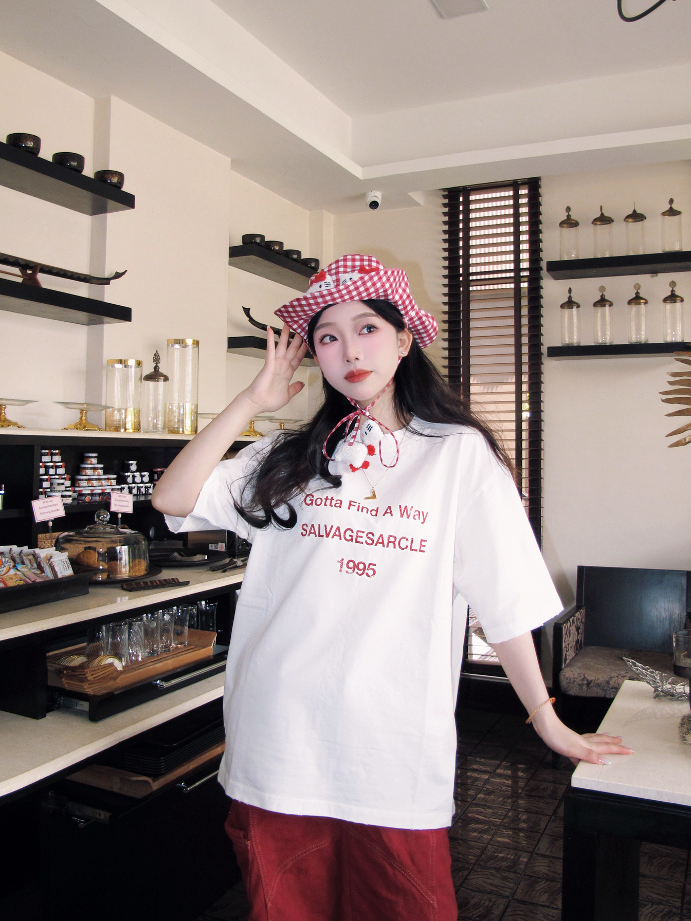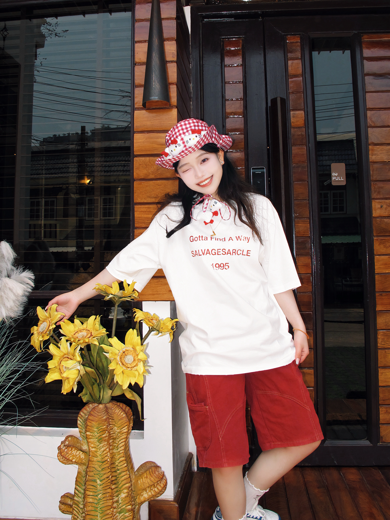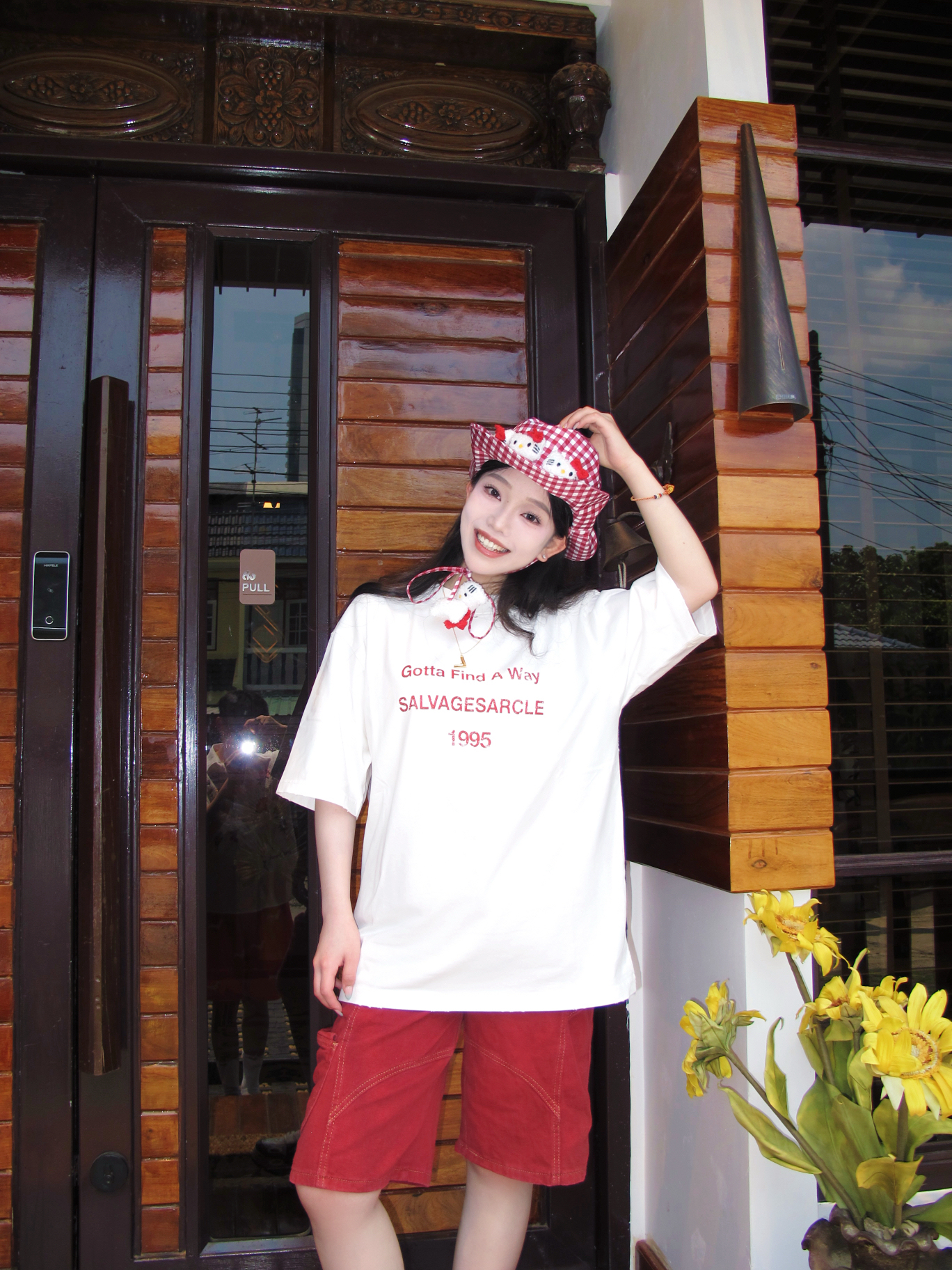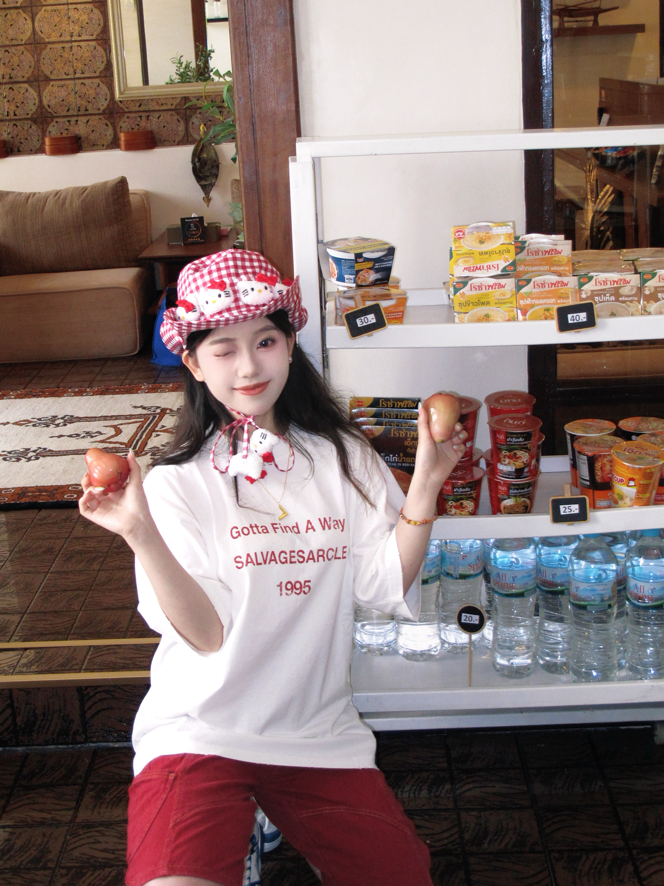 哈哈我也算是蹭上这句热梗了 再35度的曼谷我觉得也不是很热 也就和广东差不多吧 只觉得阳光照在身上很“温暖” 彩色OOTD很适合曼谷的夏天 像我就穿的白➕红色字母印花的美式T恤 透气性很好,纯棉材质,一点都不热 我很喜欢T恤领口的微做旧破洞设计,很特别 搭配同色系牛仔裤,再来一顶hellokitty渔夫帽 很有活力的一身很适合在泰国 📷很出“圈”