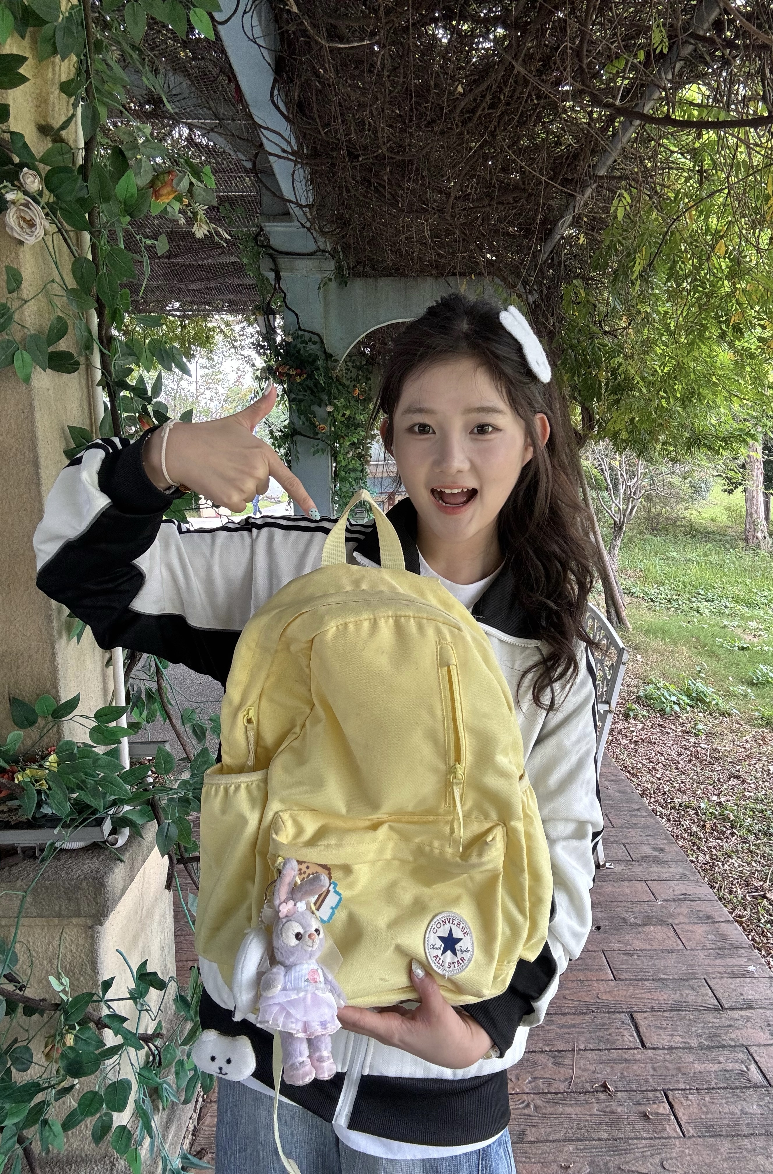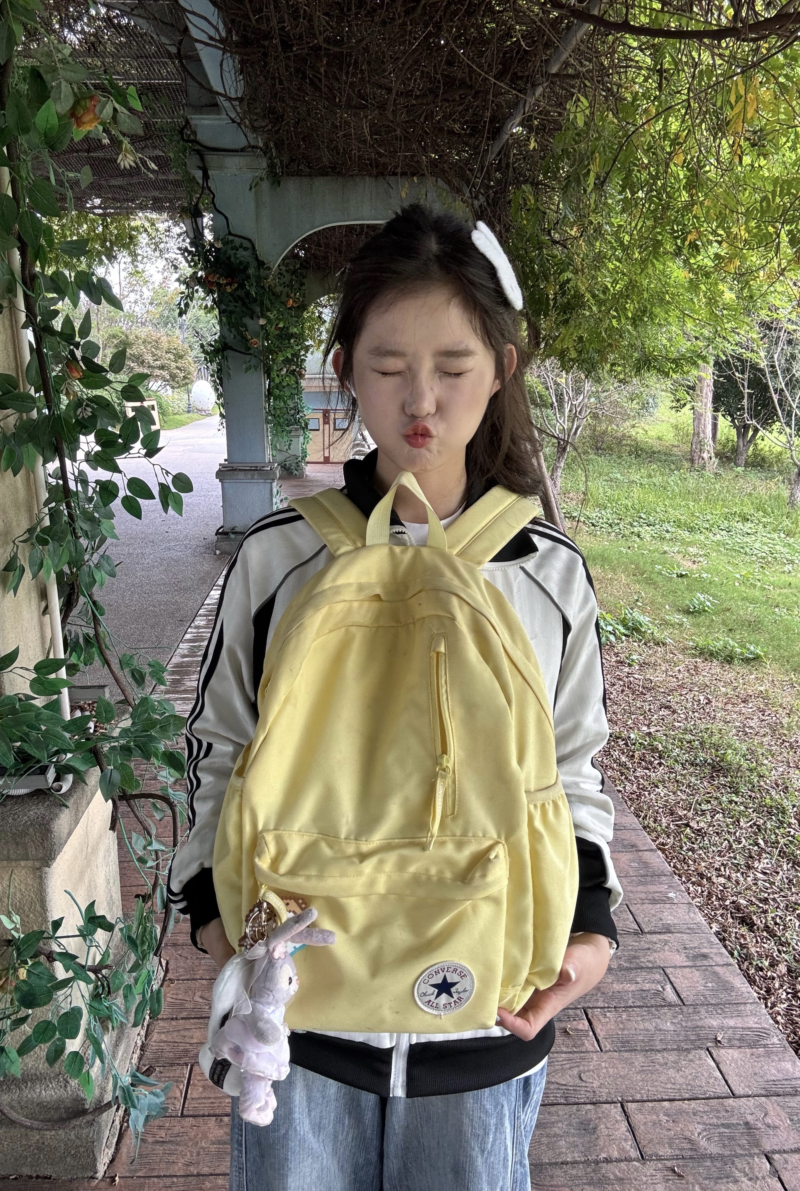 一眼心动的明黄色超显白😍! 帆布材质耐造还轻便,日常装课本、平板完全没问题呦😊 而且侧边袋还能塞水杯,细节超贴心呀🥰 日常不管搭卫衣还是牛仔外套🧥 随便搭一套都青春感爆棚🤩 学生党和通勤族闭眼冲不踩雷!🥳