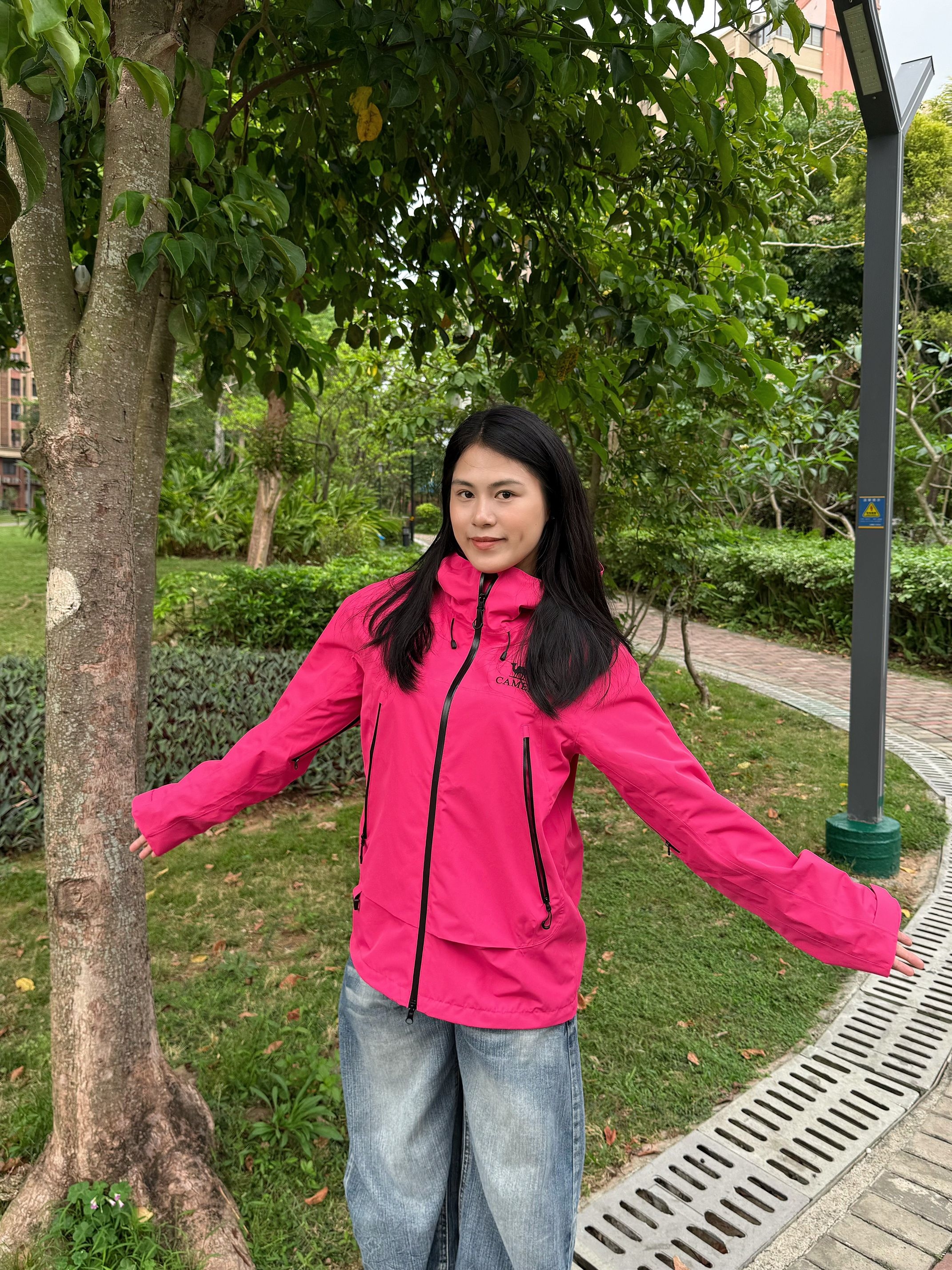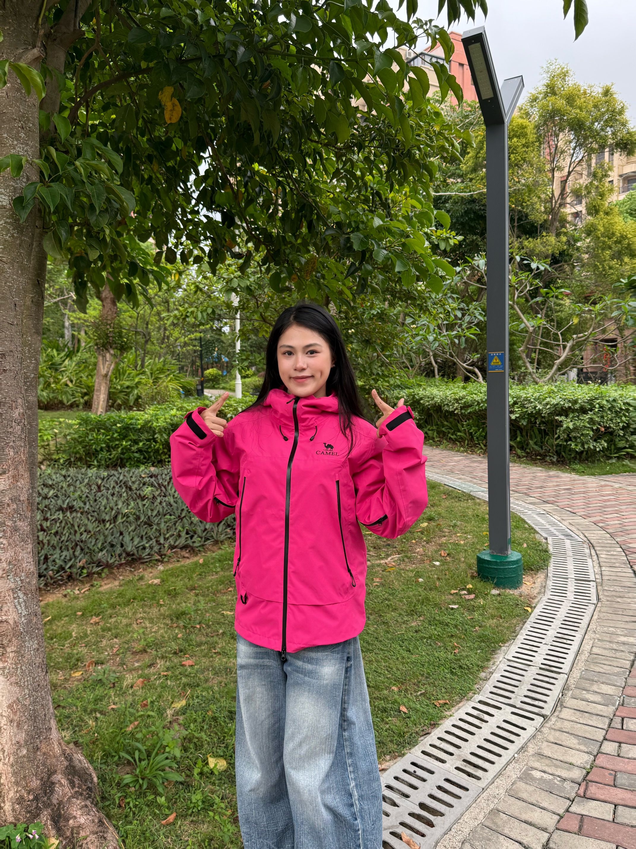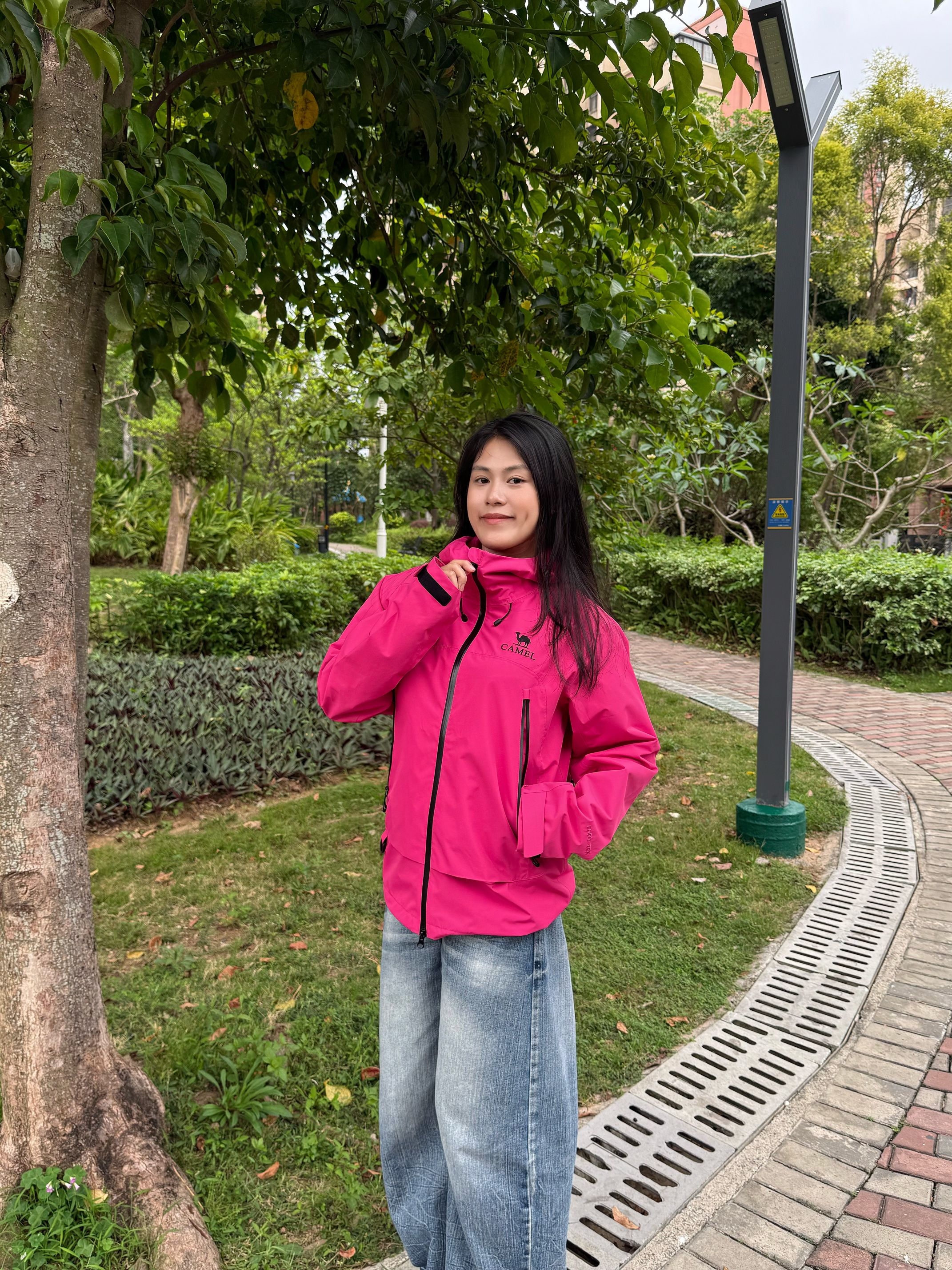 这件冲锋衣真的好好看🤩 粉色系好亮眼 平常穿去爬爬山真的挺不戳的~ 防水的面料~ 穿起来一点都不显壮💕